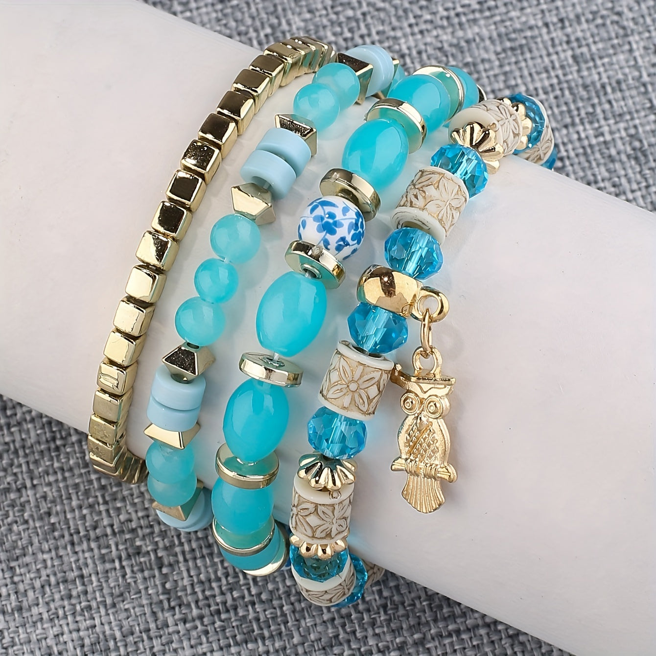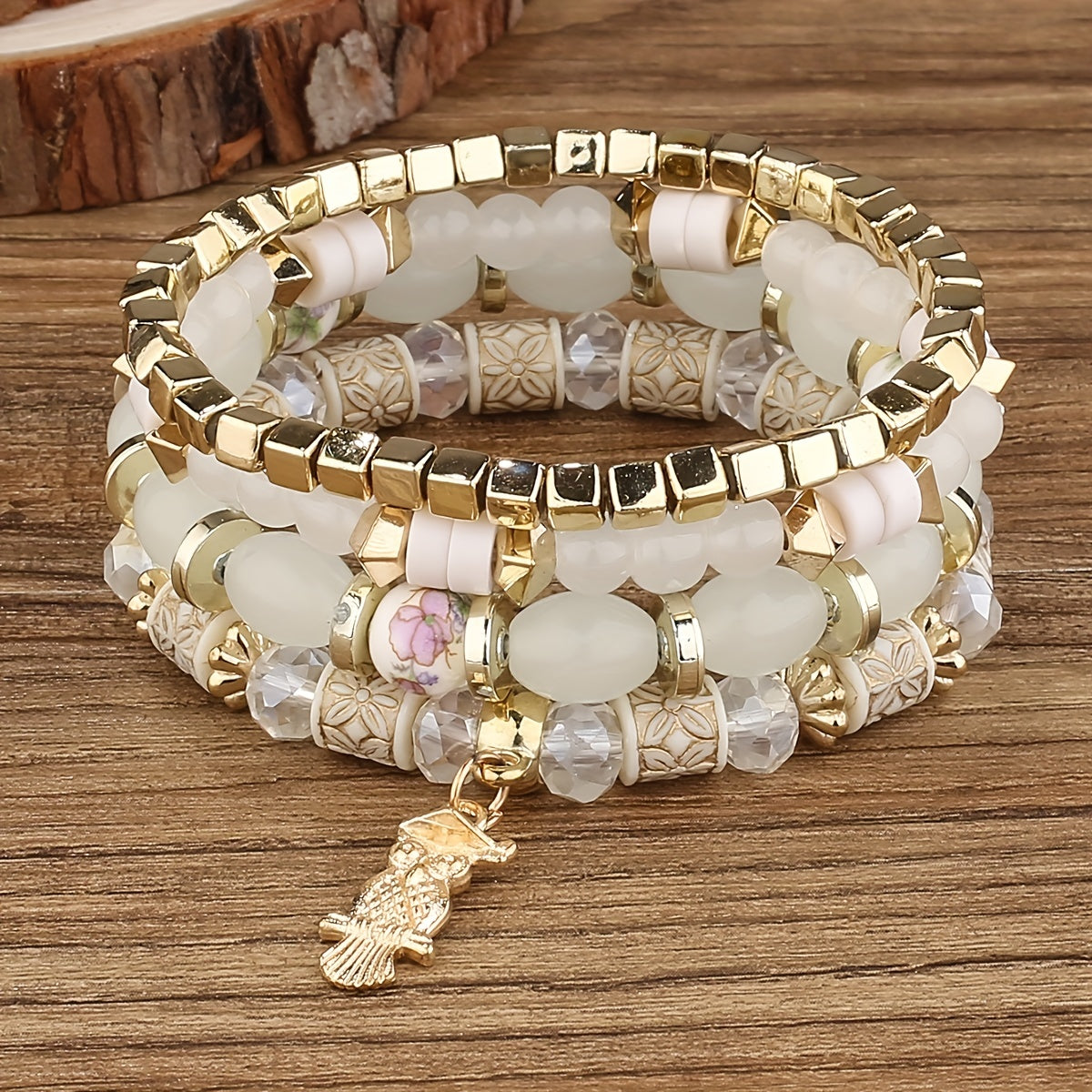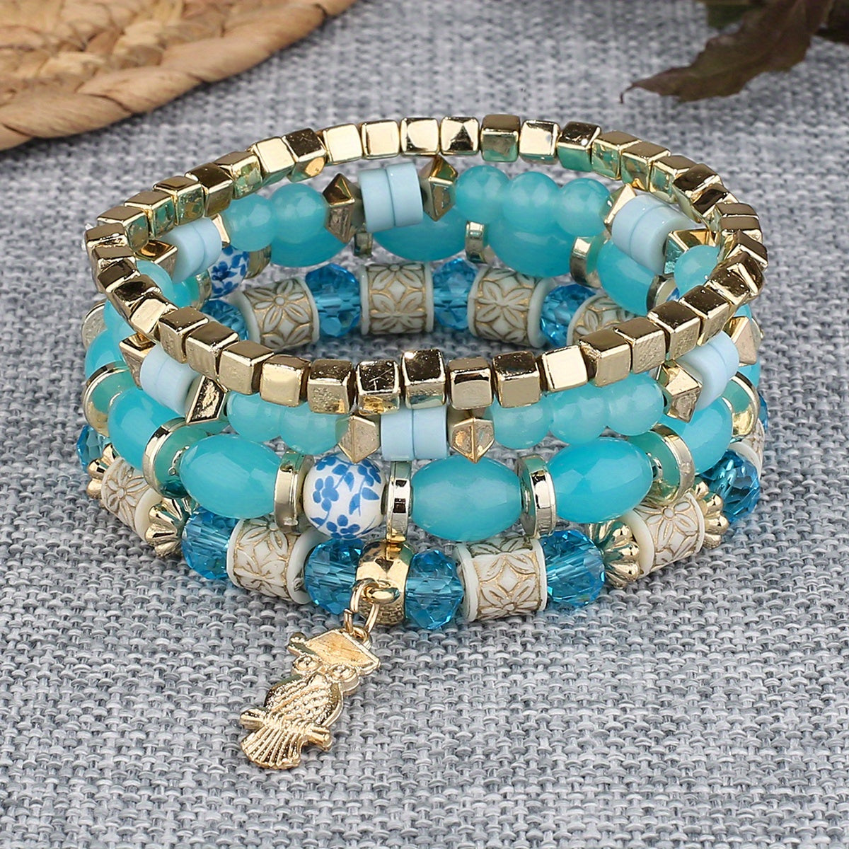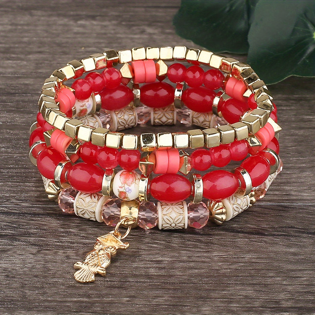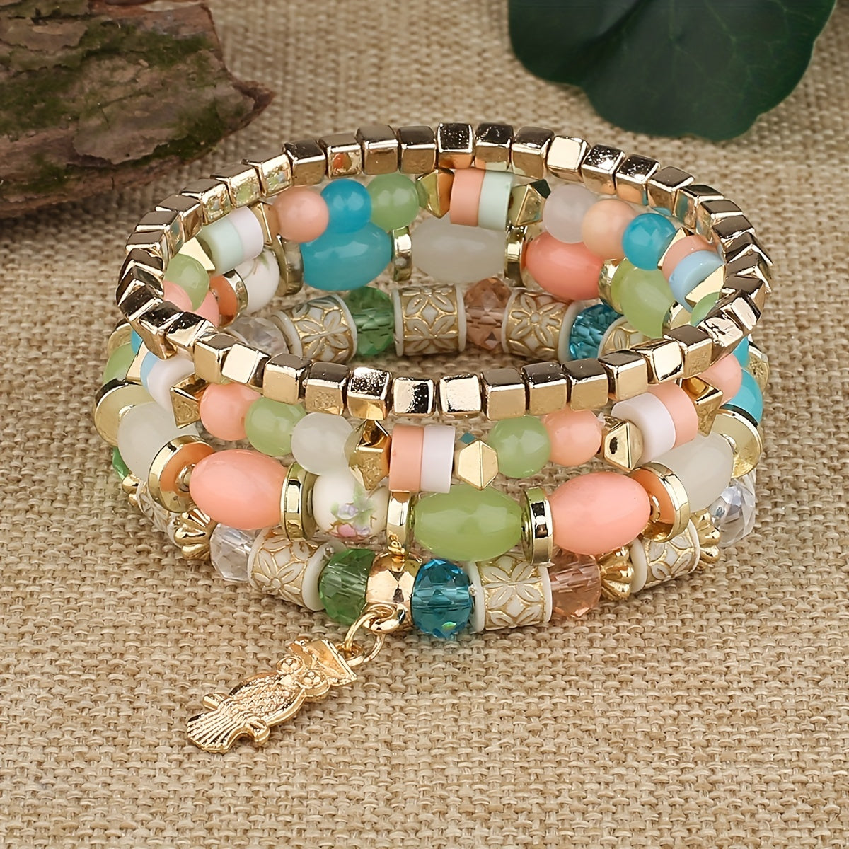 Bohemian Beaded Bracelet Owl Pendant Hand Ring Couple Bangle