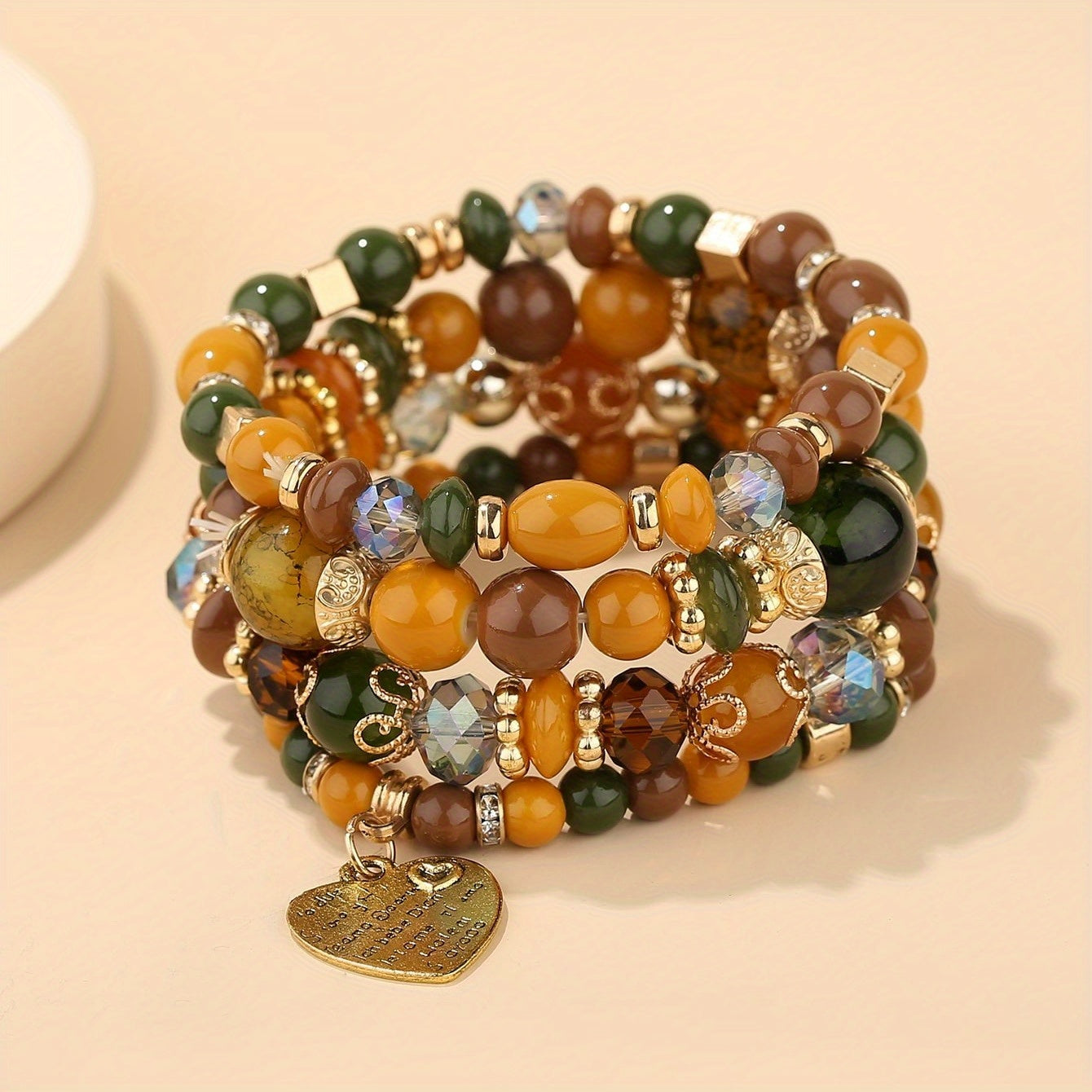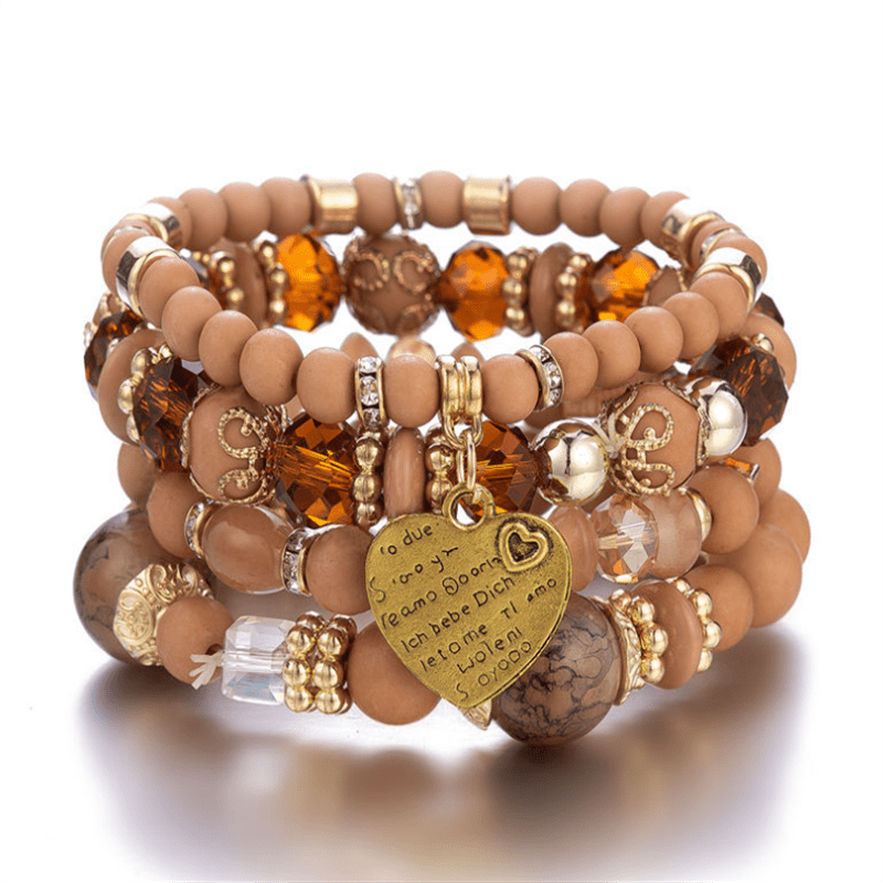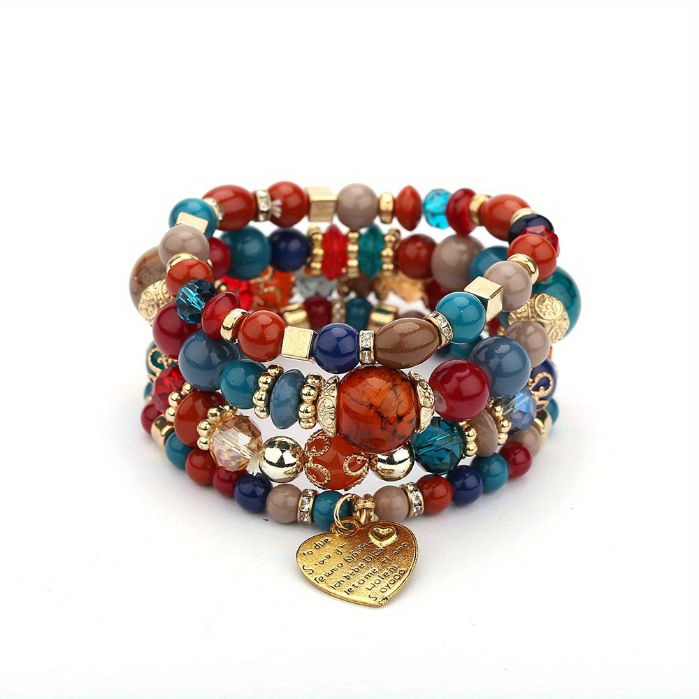 Bohemian Multilayer Bead Bracelet with Peach Heart Pendant