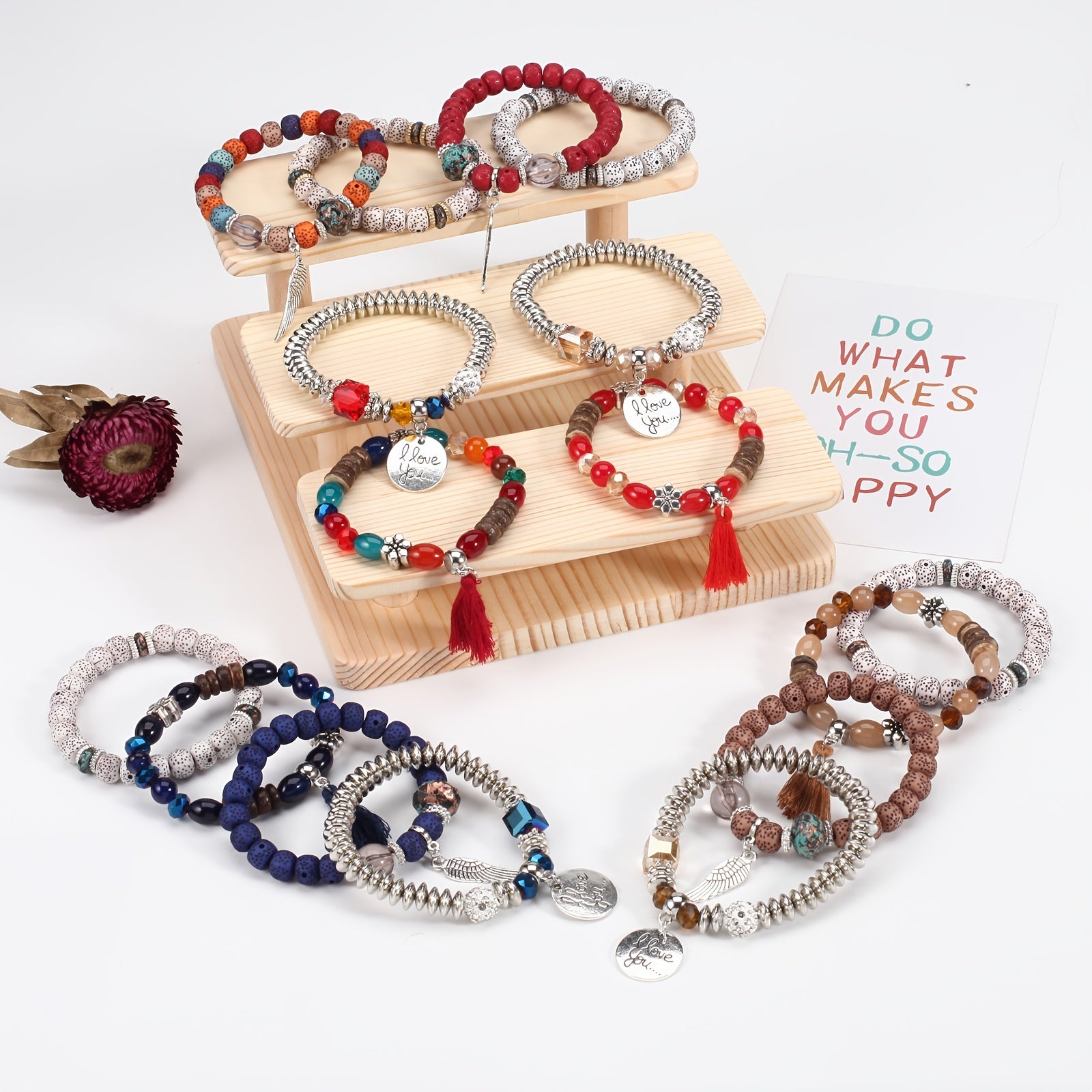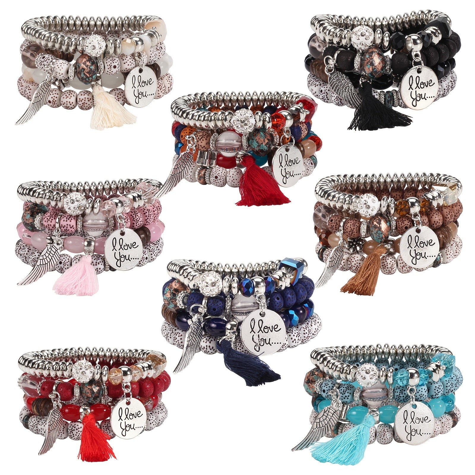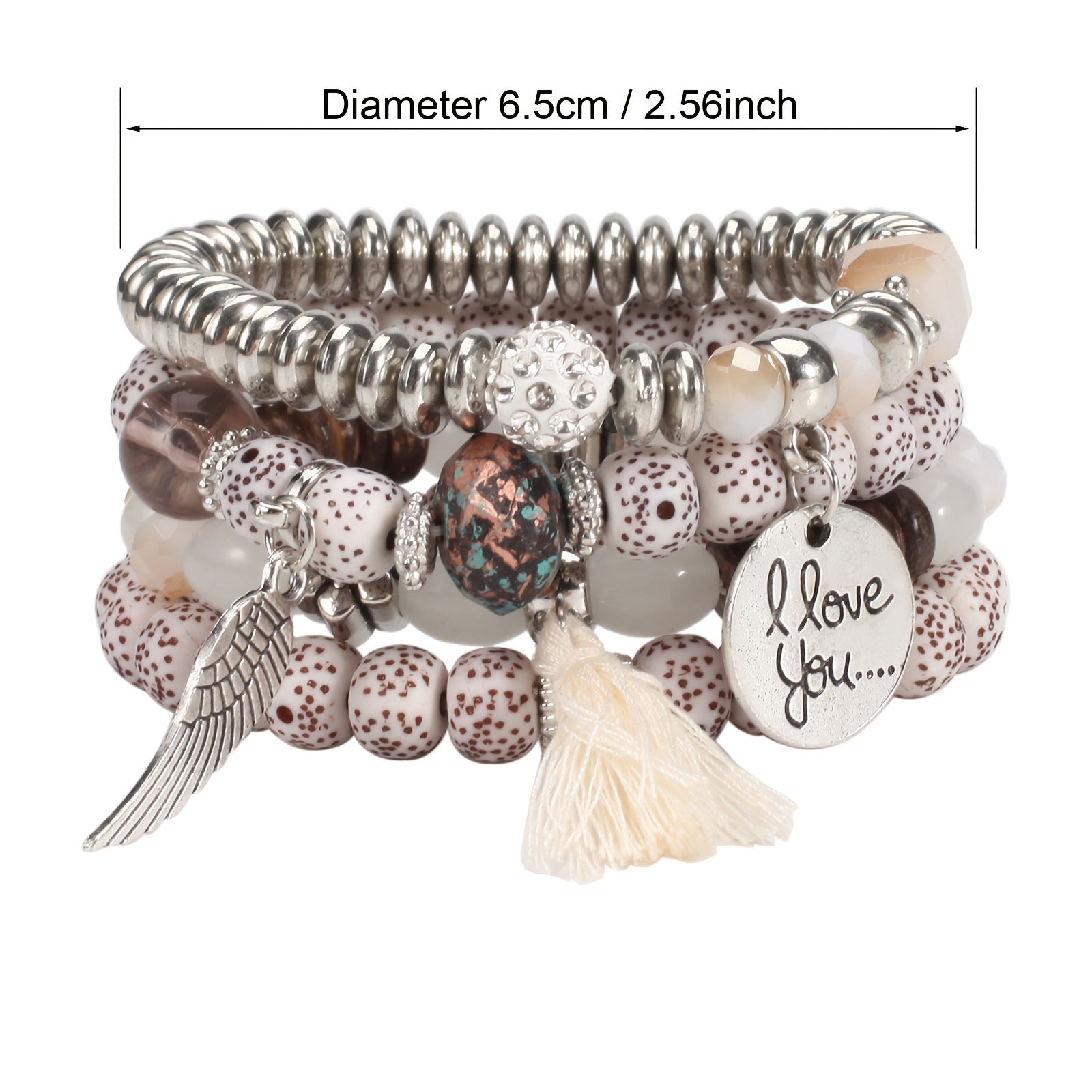 Boho Beaded Charm Bracelets Multilayer Colorful Stretch Stackable