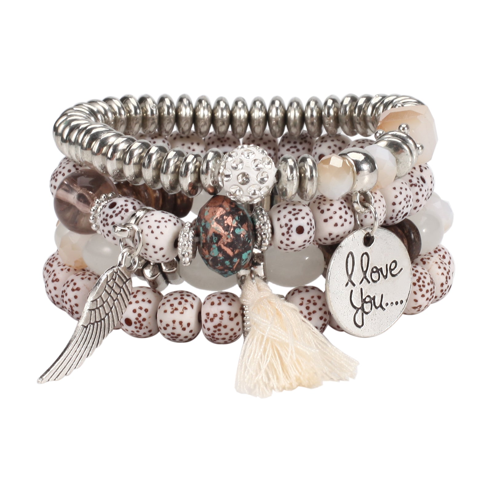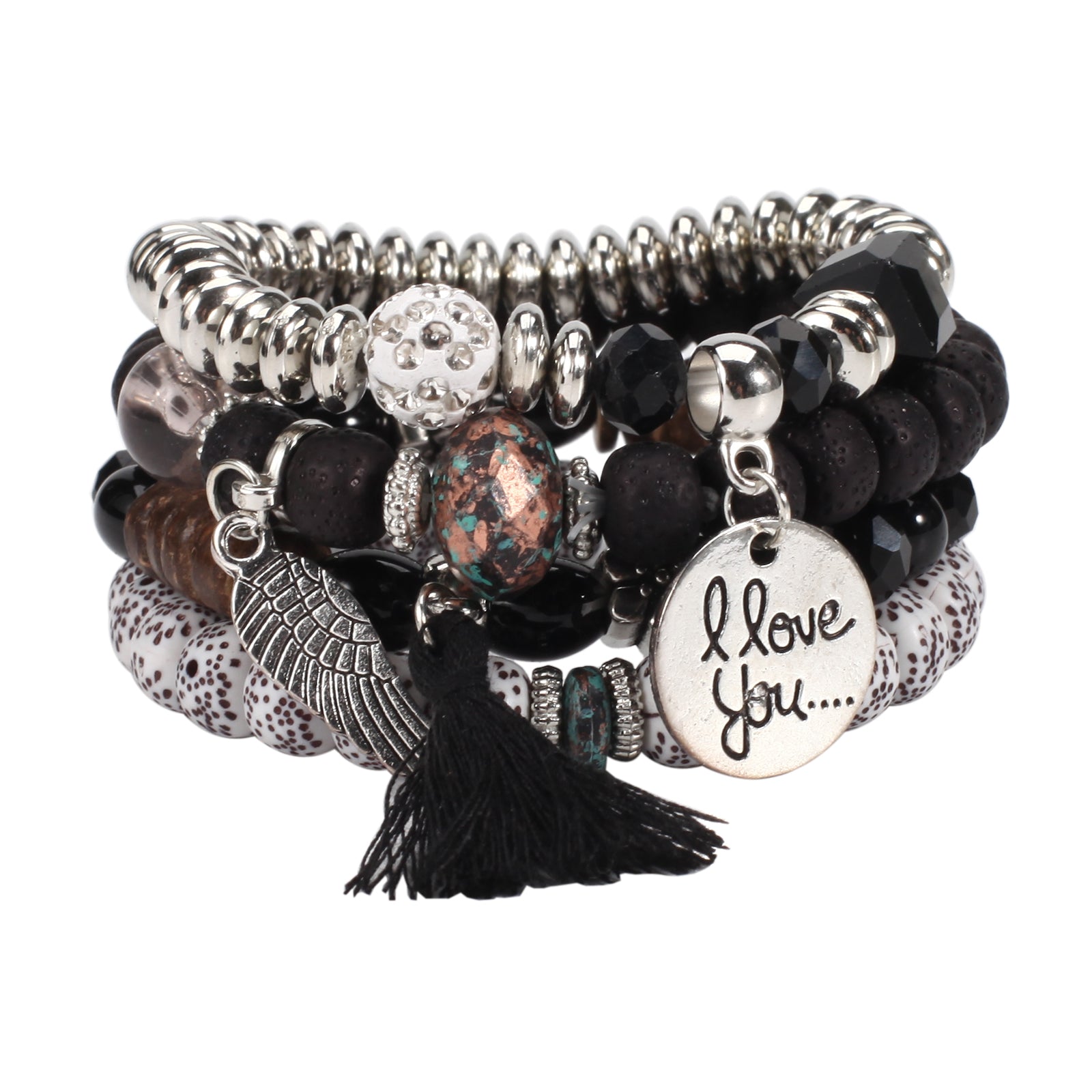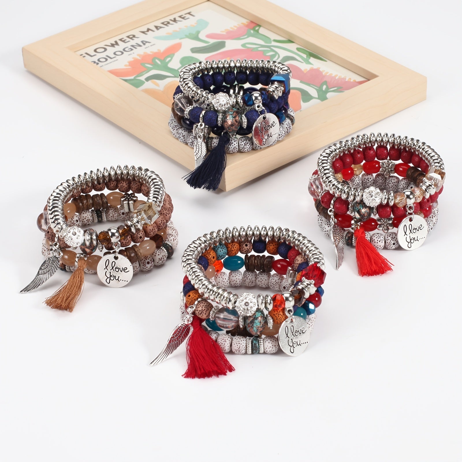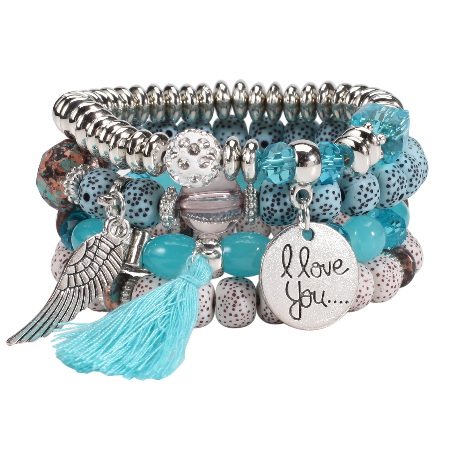 Boho Beaded Charm Bracelets Multilayer Colorful Stretch Stackable