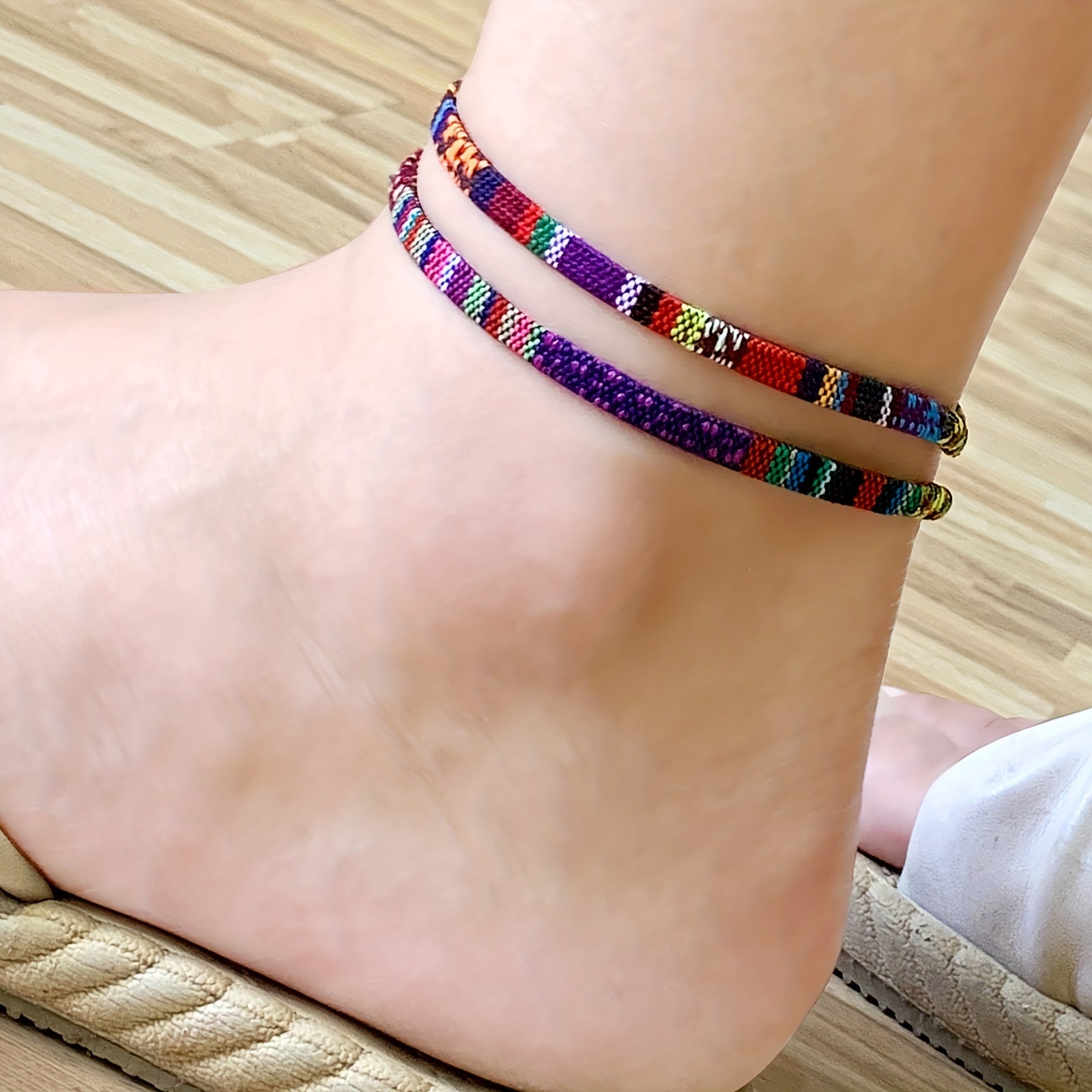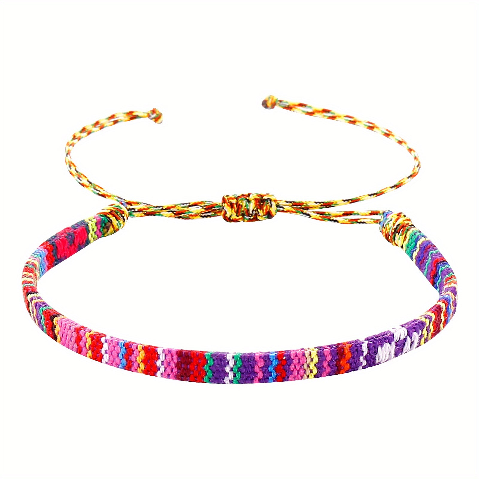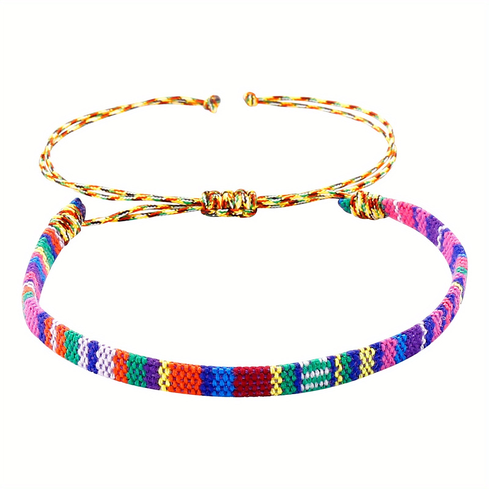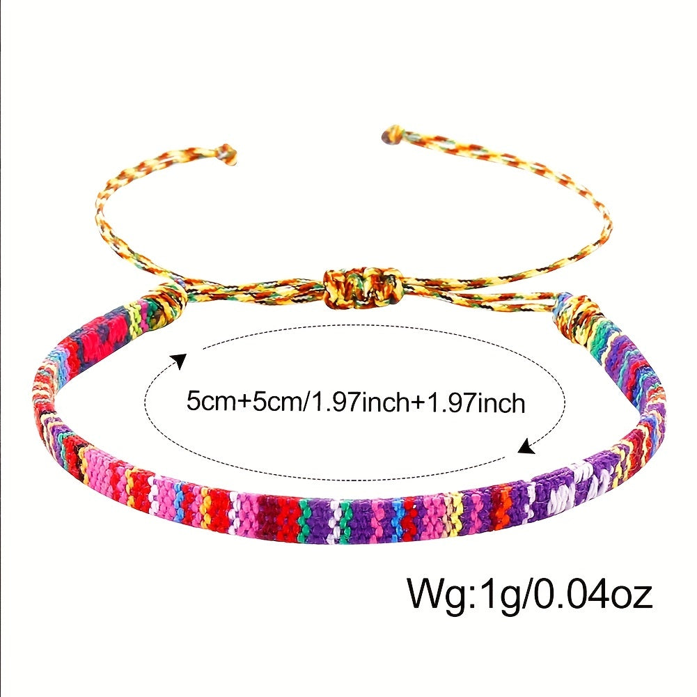 Add a touch of bohemian flair to your look with these vibrant braided bracelets. Handcrafted in ethnic style, these colorful rope anklets are perfect for adding a pop of color to your outfit.
