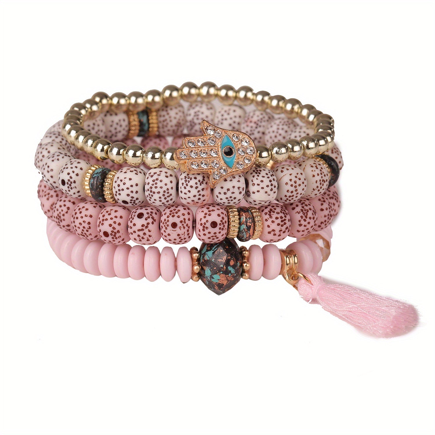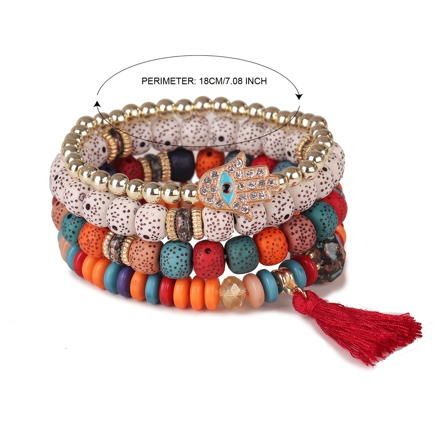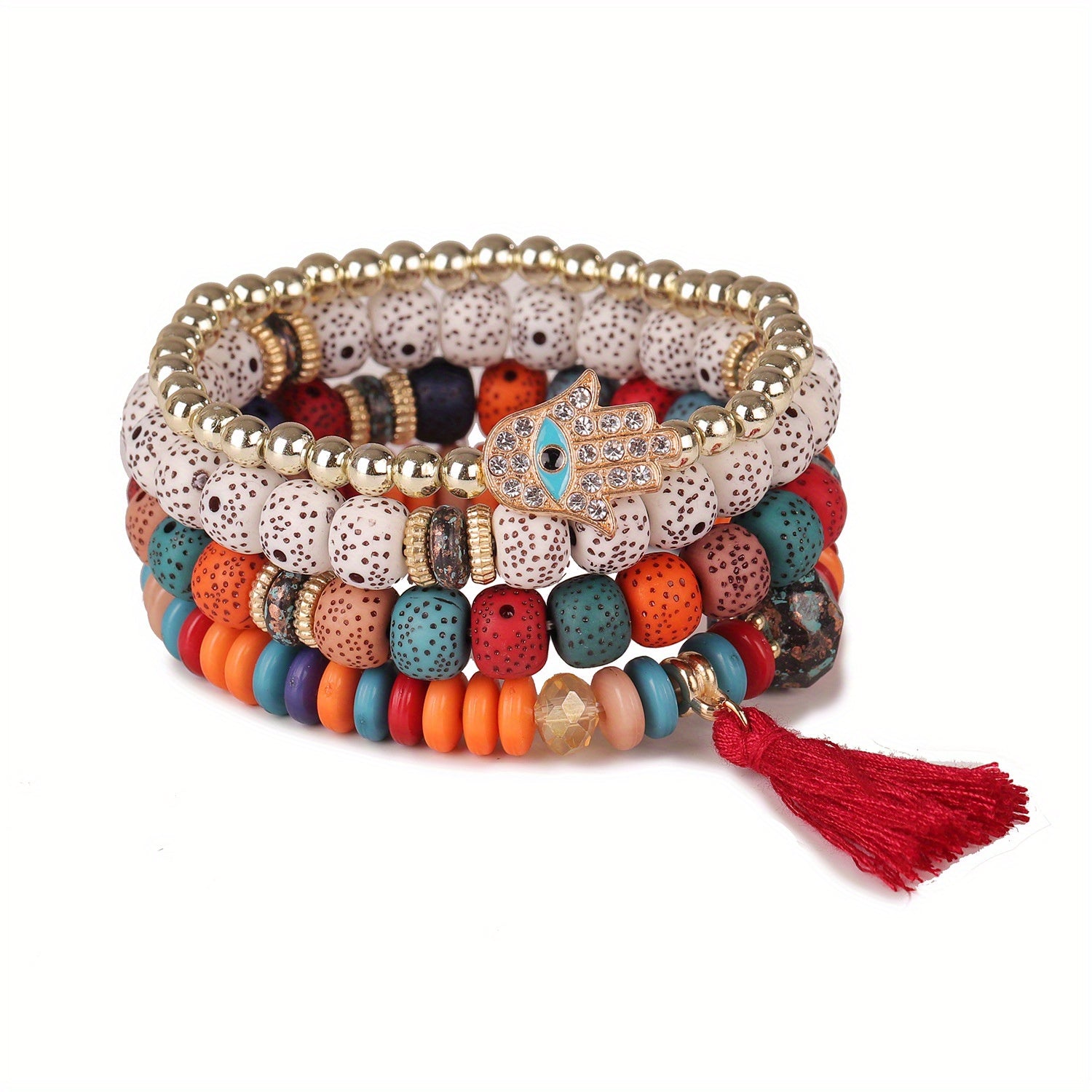 Elevate your style with this stackable boho bracelet set featuring a long tassel pendant. Perfect for parties and everyday wear.