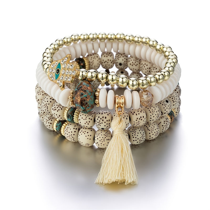 Boho Tassel Pendant Beaded Bracelet Set