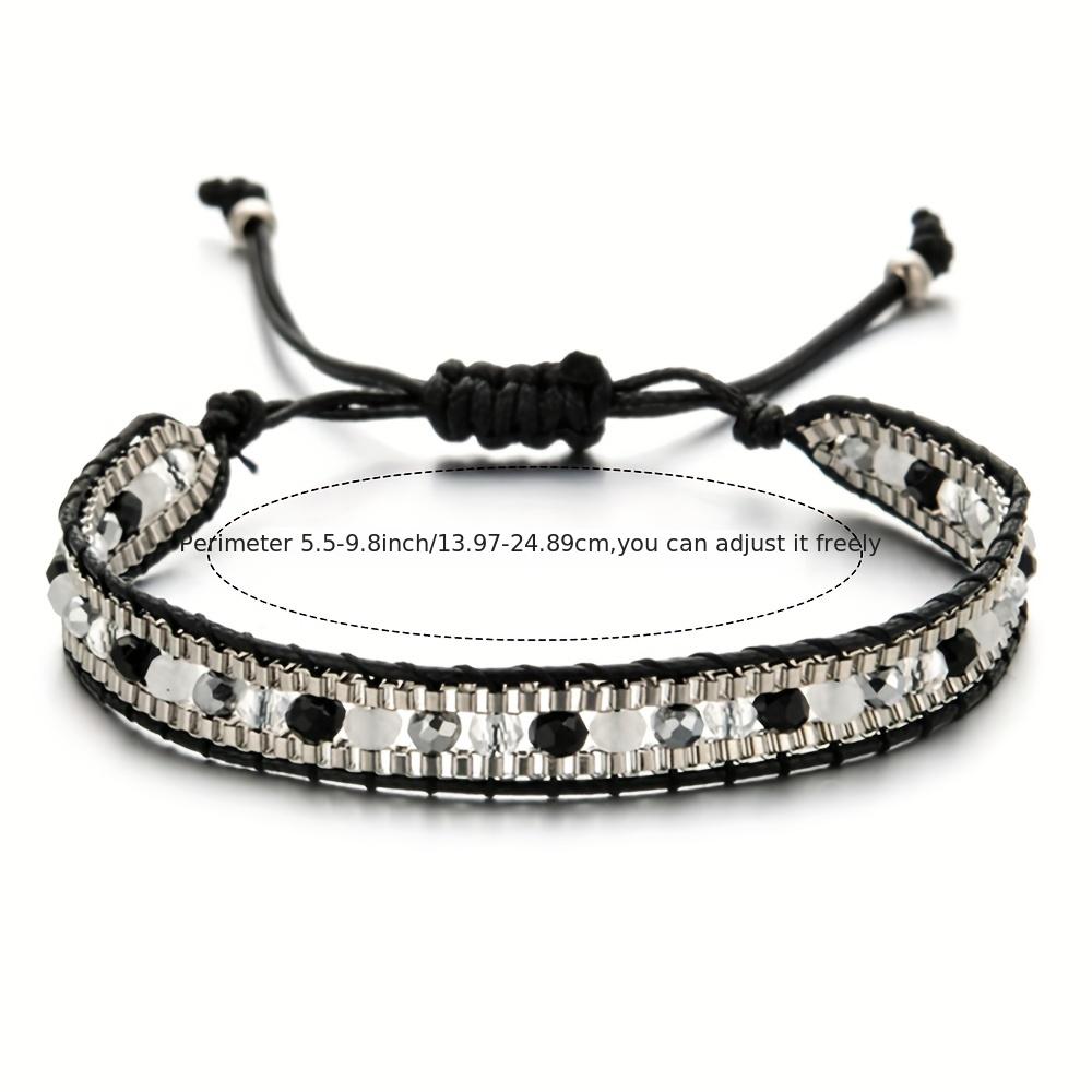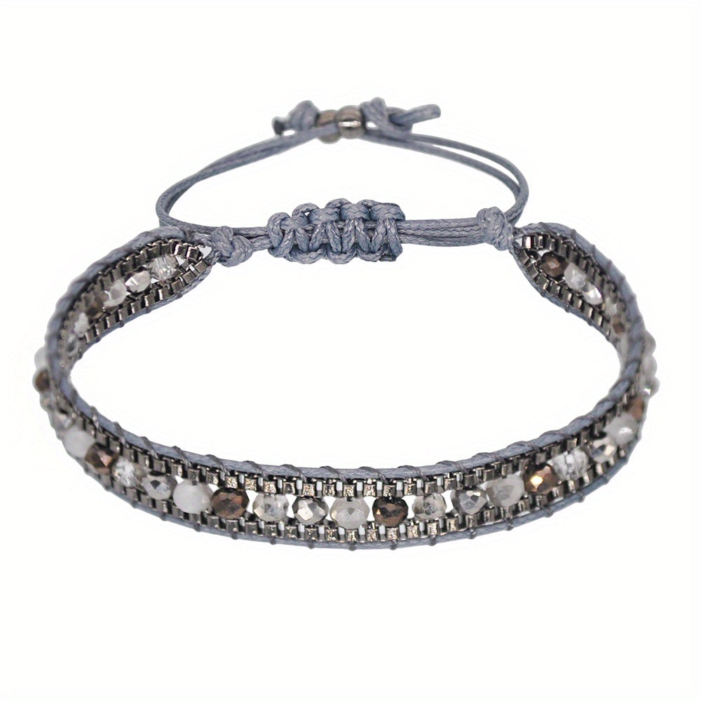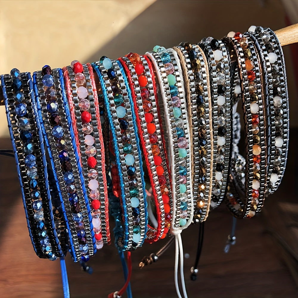 This bohemian wrap bracelet is made of glass seed beads, hand-woven and knotted to create a colorful and vibrant accessory for your wrist.