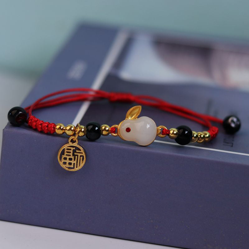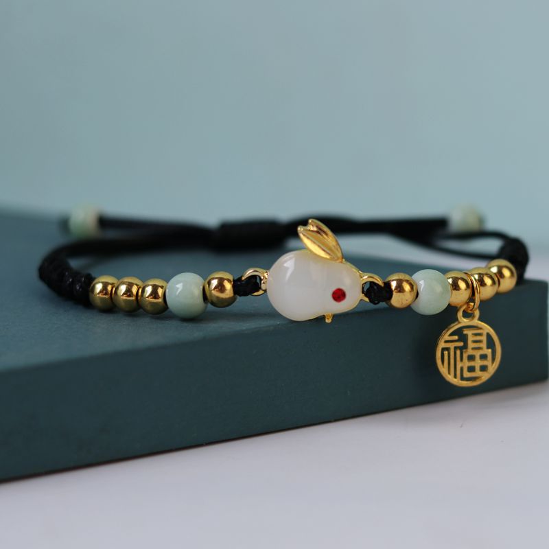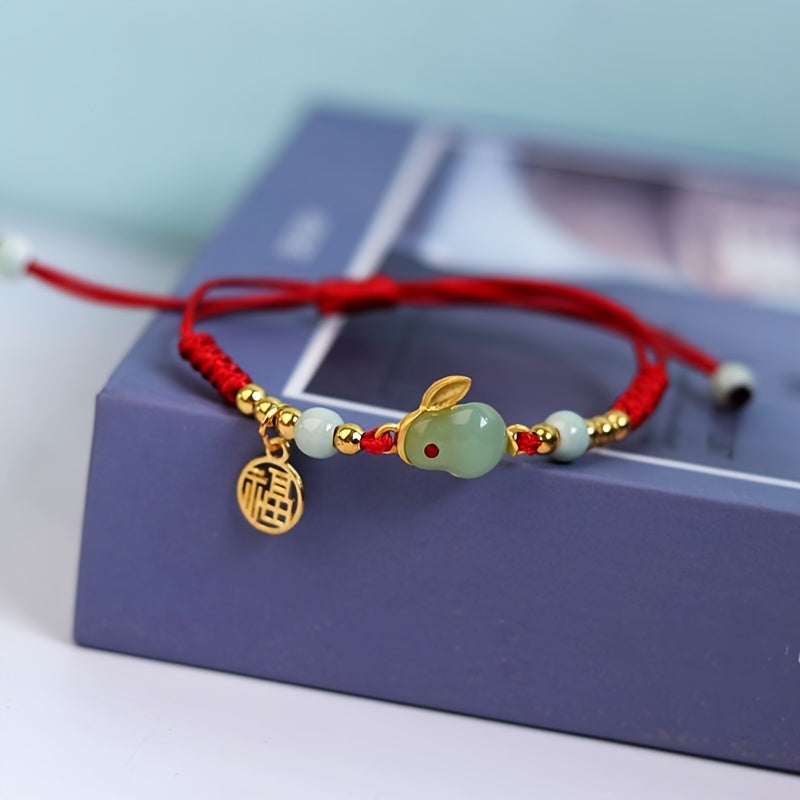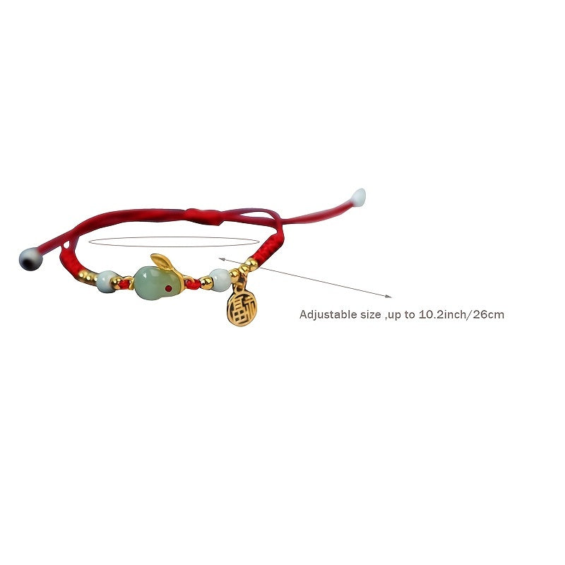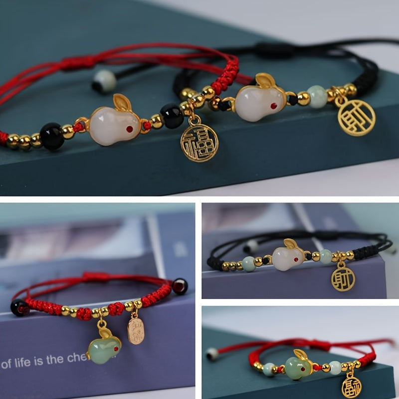 Add a touch of luck and style to your outfit with this braided bracelet featuring a lucky rabbit design inspired by Chinese New Year. The adjustable size makes it suitable for anyone to wear as a hand jewelry decoration.
