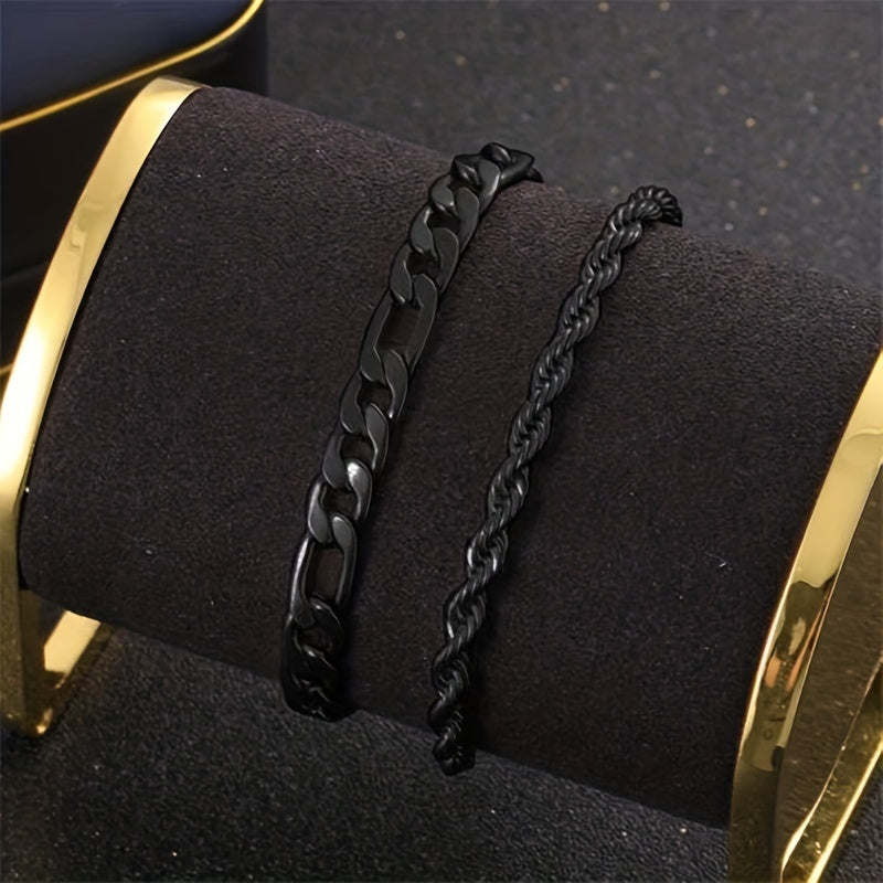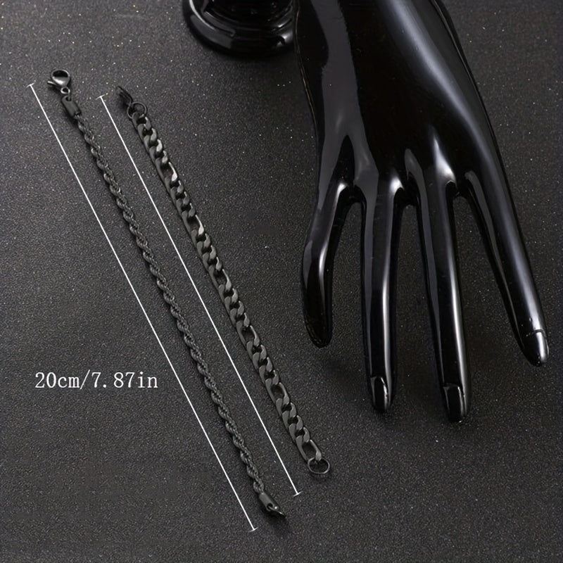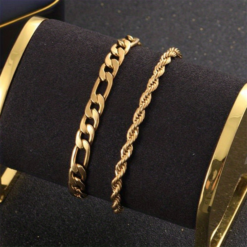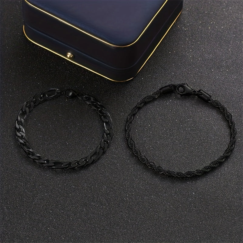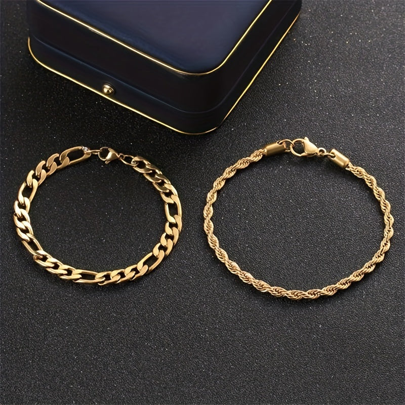 This 2-piece chain bracelet features a braided shape design, made of high-quality stainless steel. Suitable for both men and women.