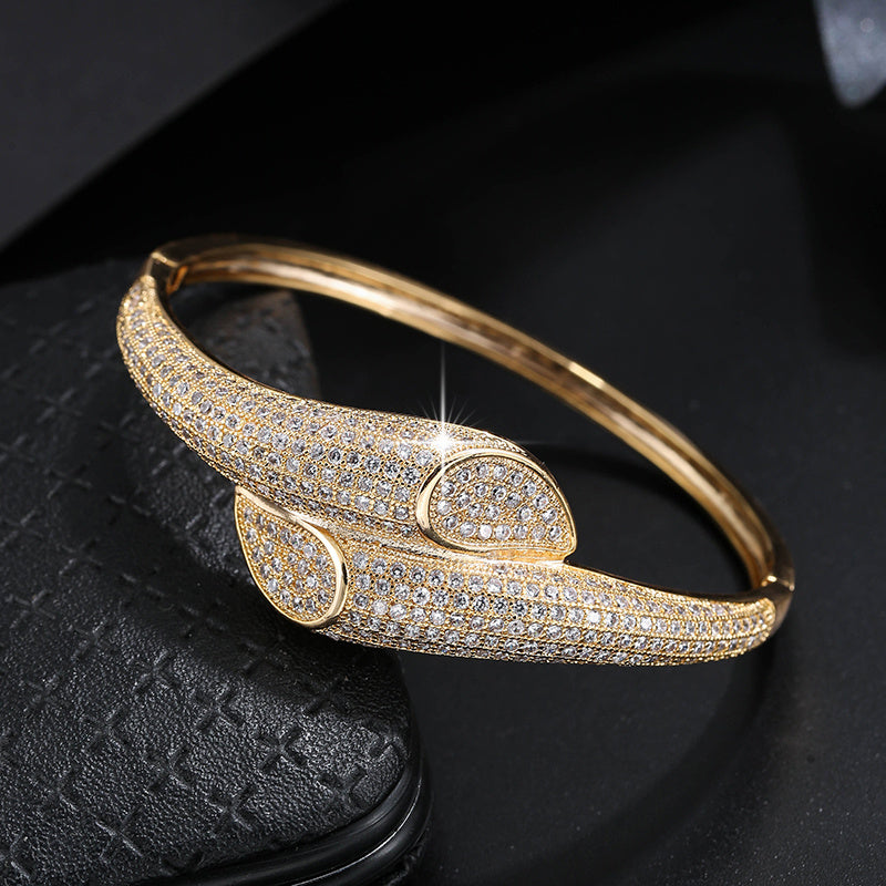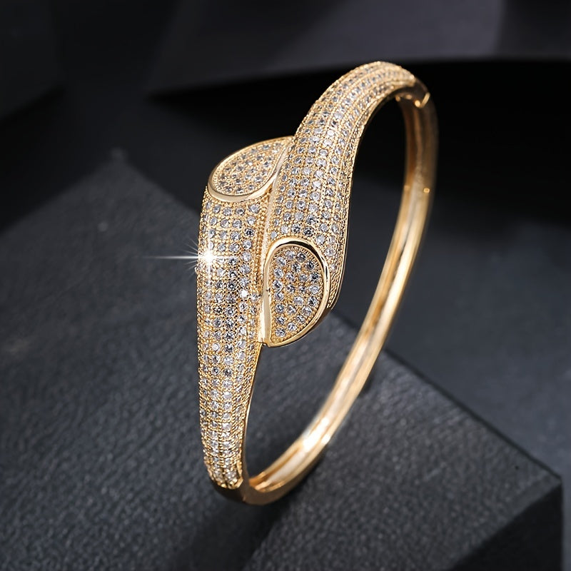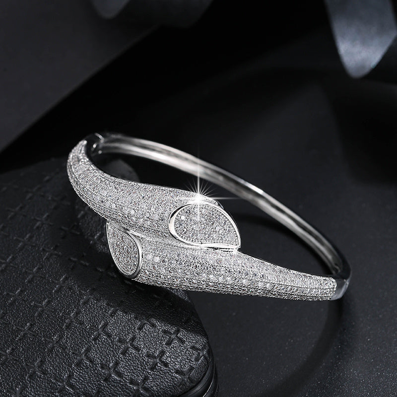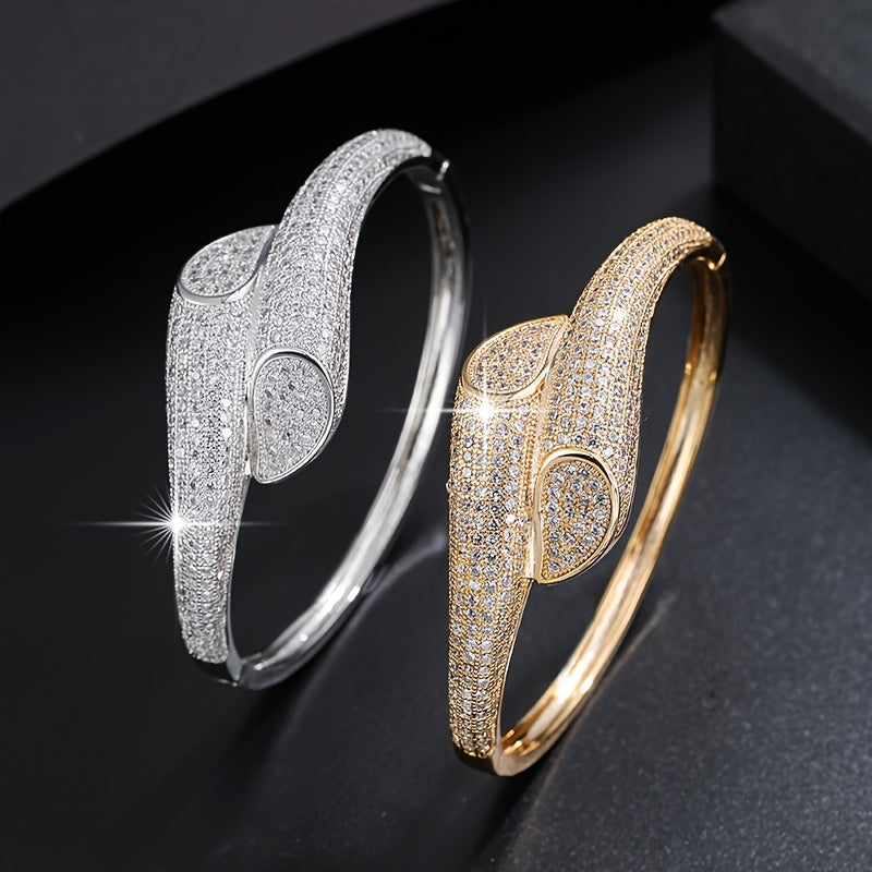 Elegant bangle bracelet adorned with sparkly zircons, perfect for adding a touch of sophistication to any outfit. This energy bracelet makes a great gift for women and girls.