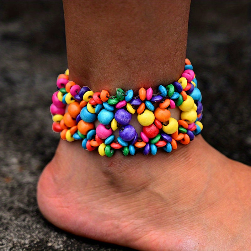 Add a touch of boho charm to your summer beach clothing with this wooden coconut shell beads anklet. Perfect for travel and beach accessories.