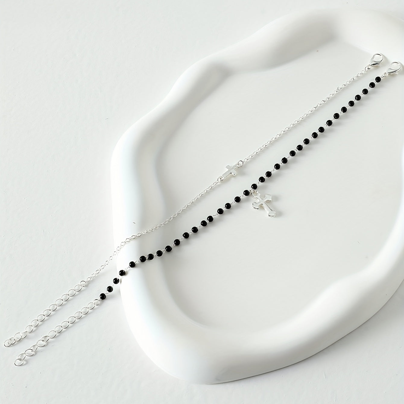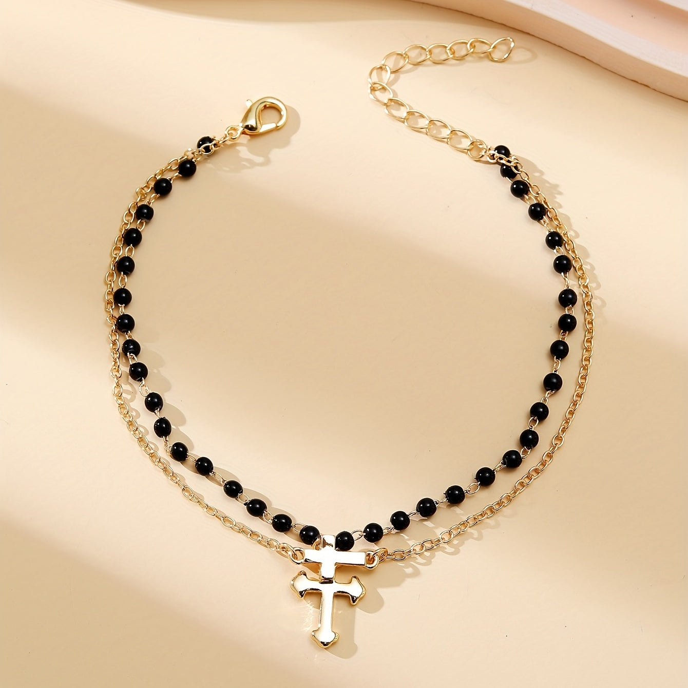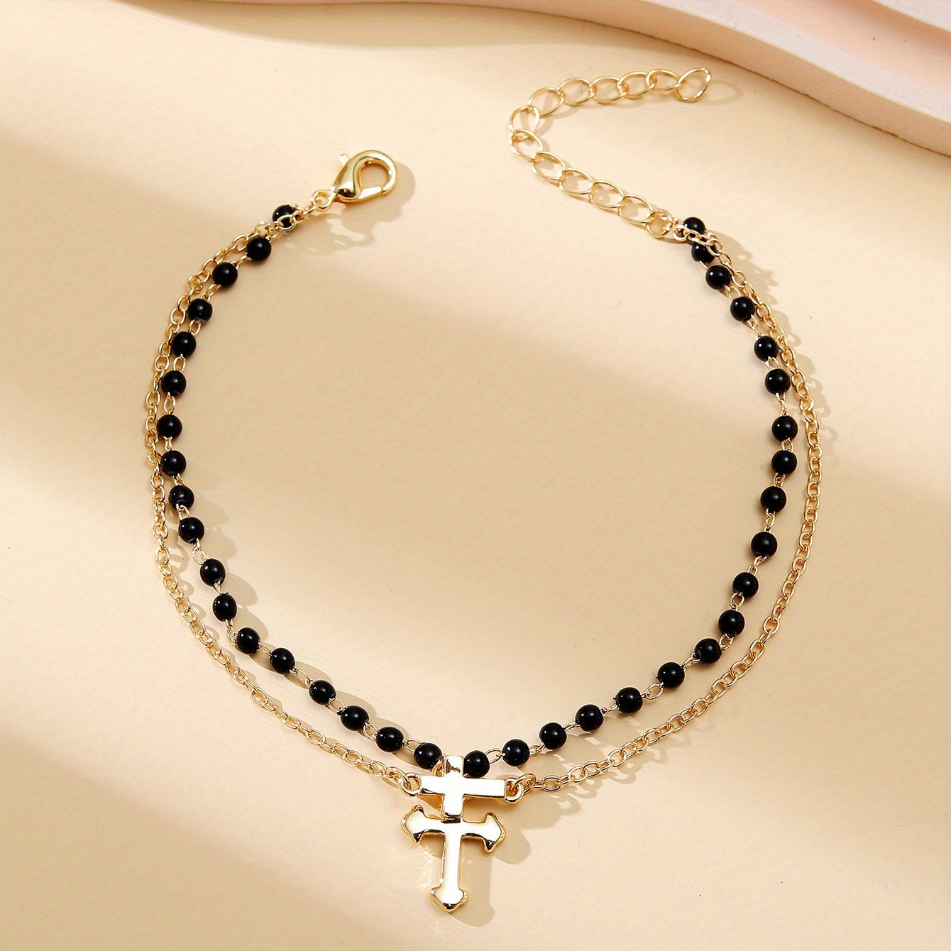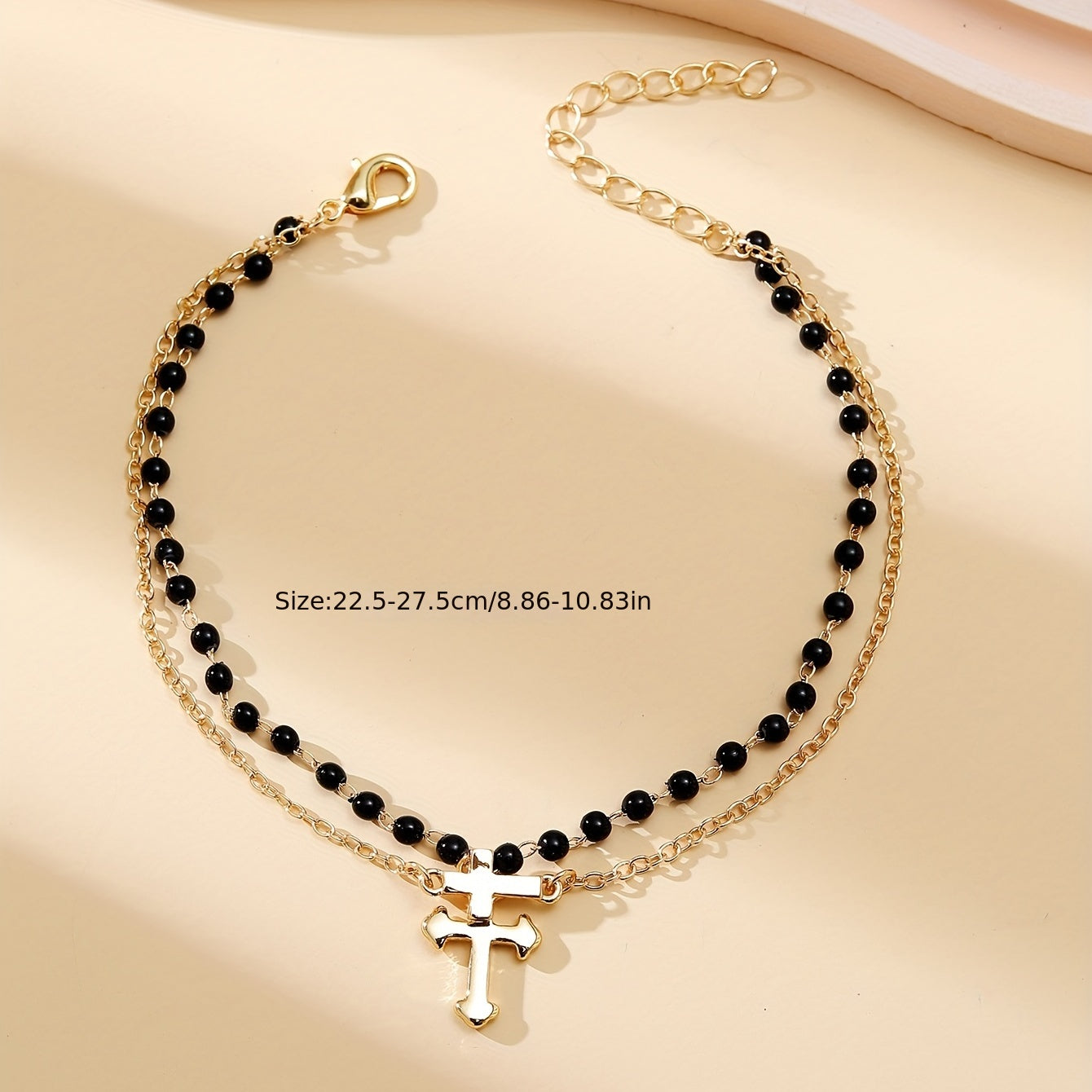 This stylish anklet features a cross shape pendant with double layers, adding a touch of elegance to your ankle. Perfect for daily wear or special occasions.