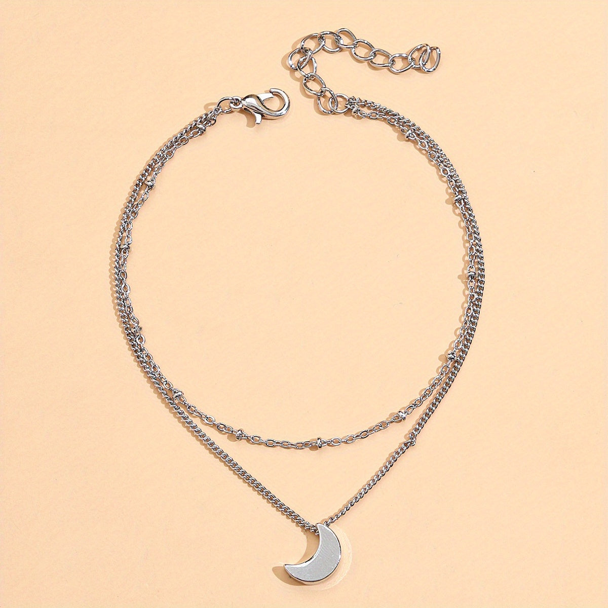 Add a touch of elegance to your ankles with this double-layer anklet featuring moon shape charms. It's adjustable to fit most sizes and perfect for adding a dainty touch to your foot jewelry collection.