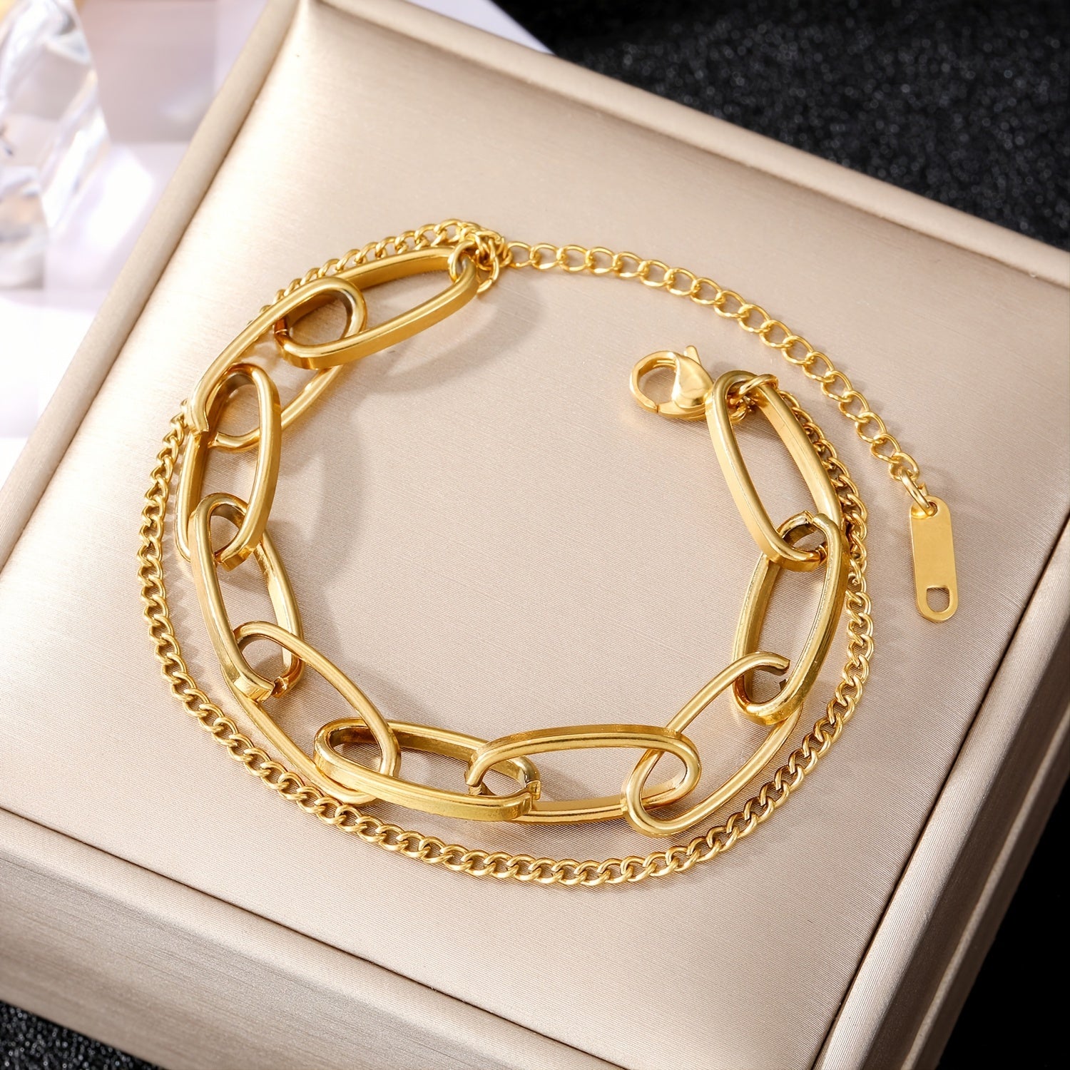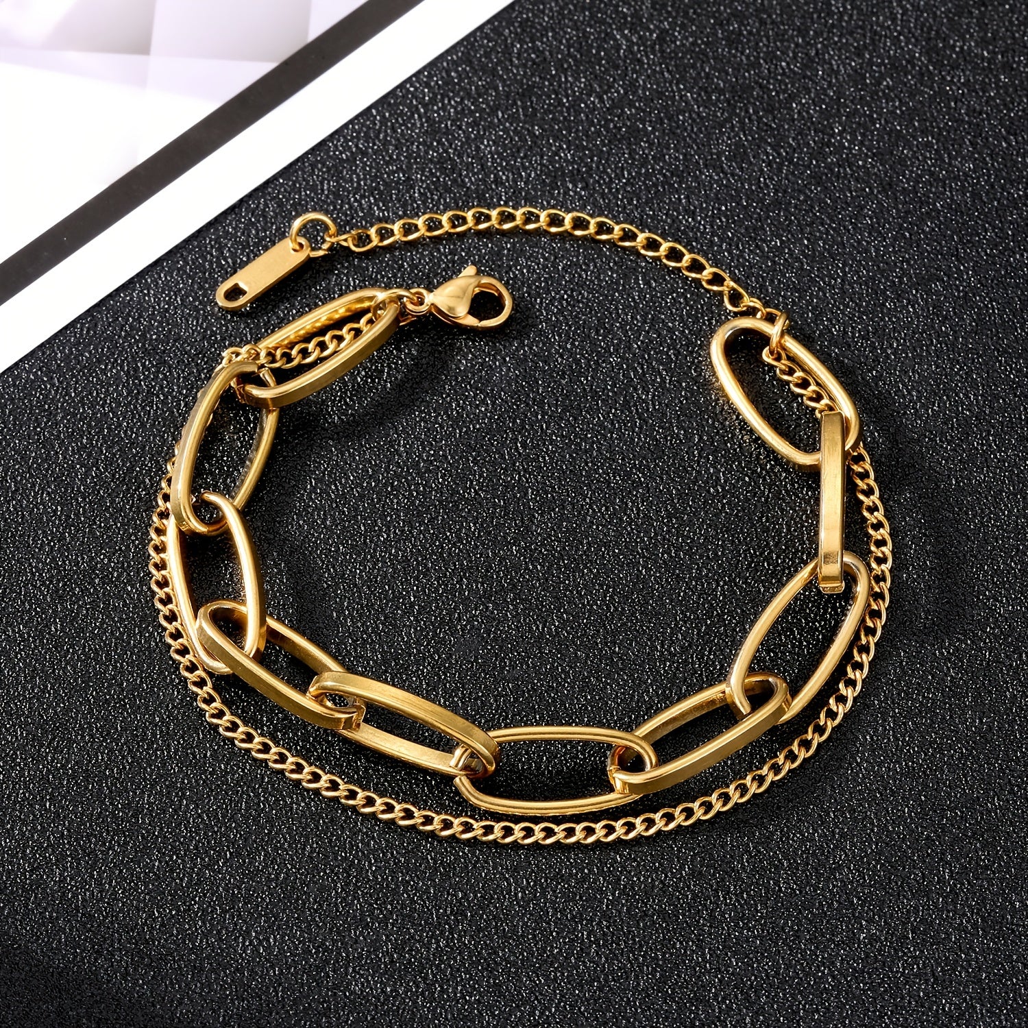 Double Layer Chain Bracelet Stainless Steel Hand Jewelry