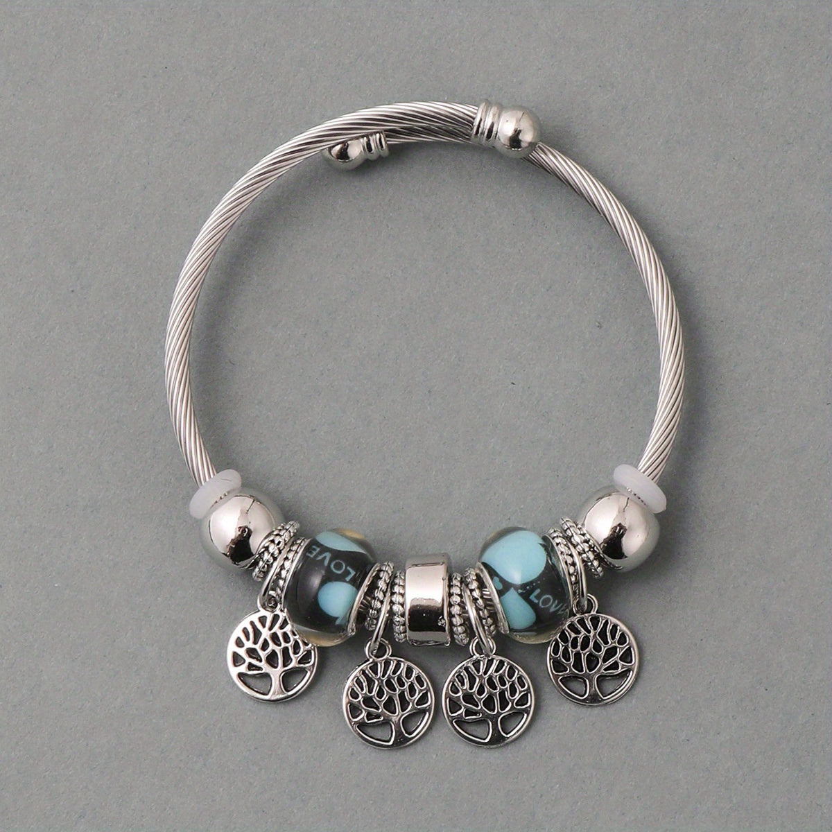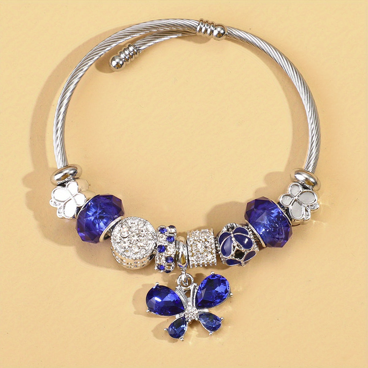 Elephant Style Bangle Bracelet Animals Zinc Alloy Gems Silver Plated