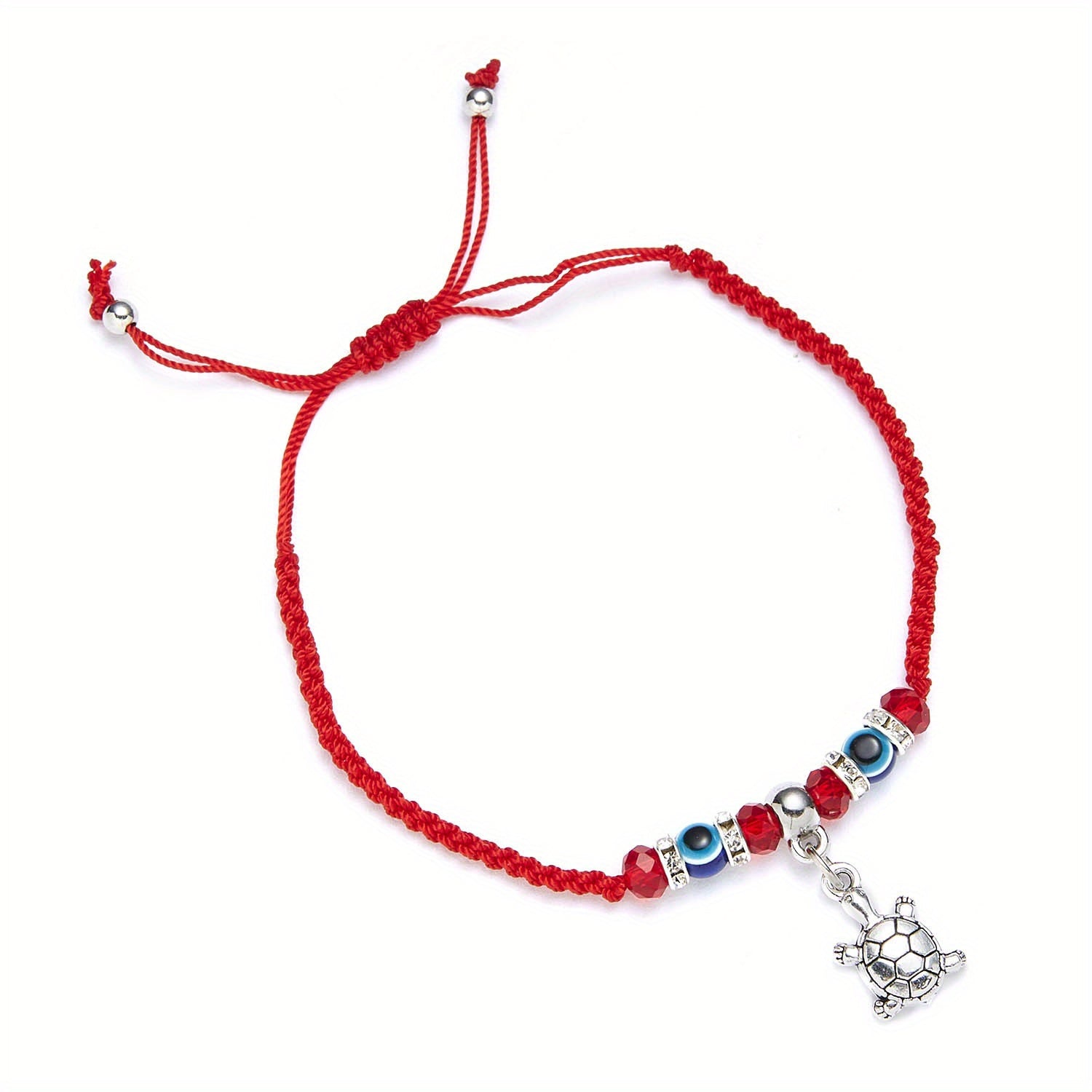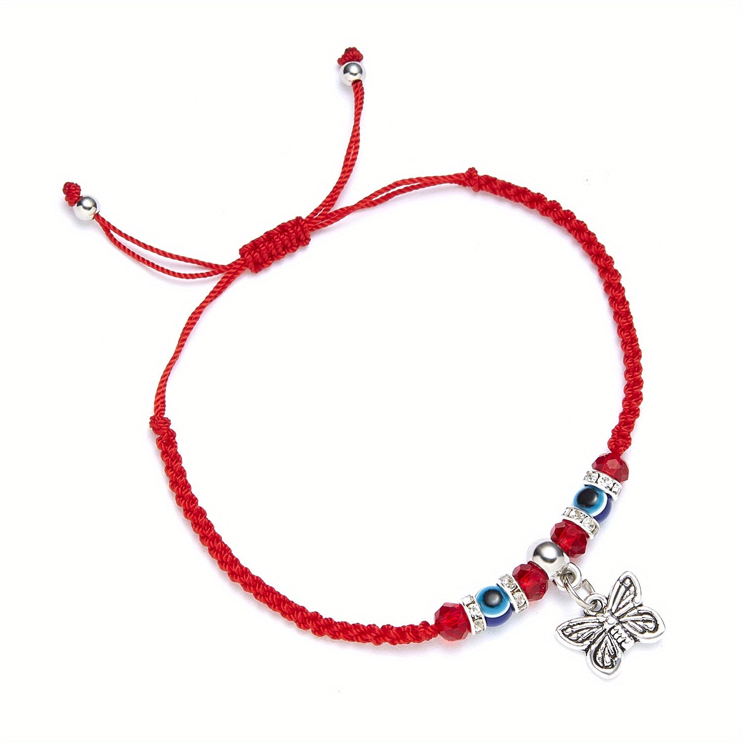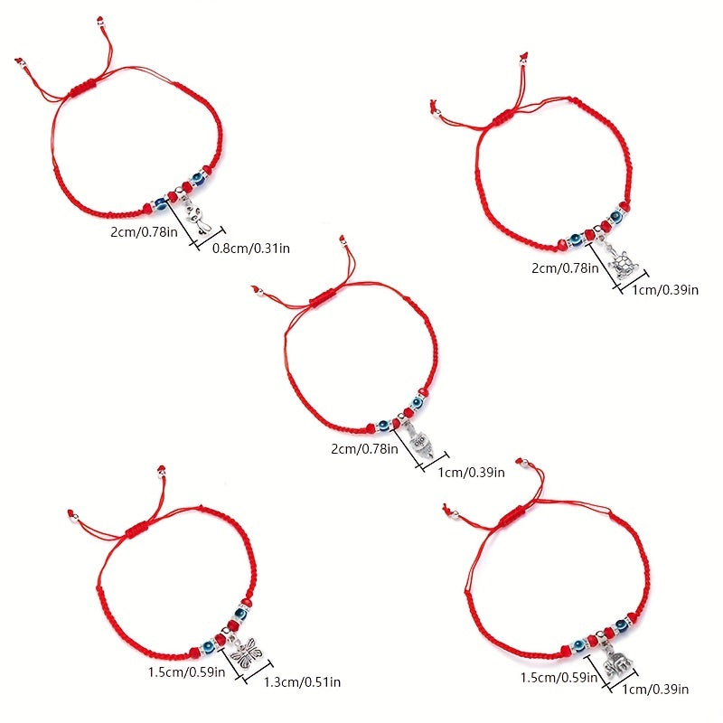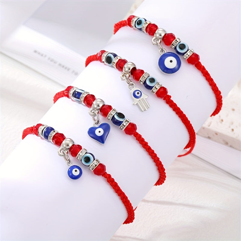 This stylish bracelet features an evil eye design on a red braided rope, perfect for summer beach outings or as a friendship accessory.