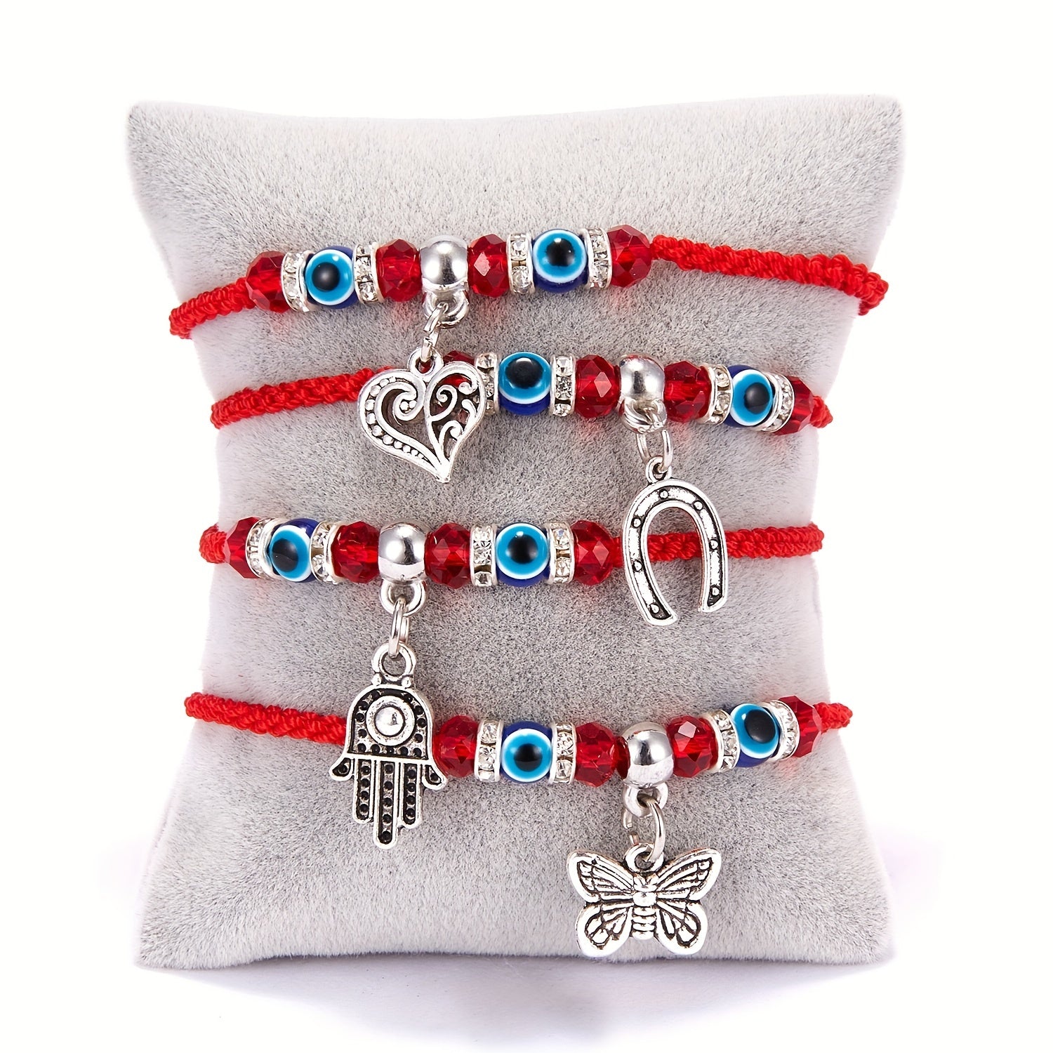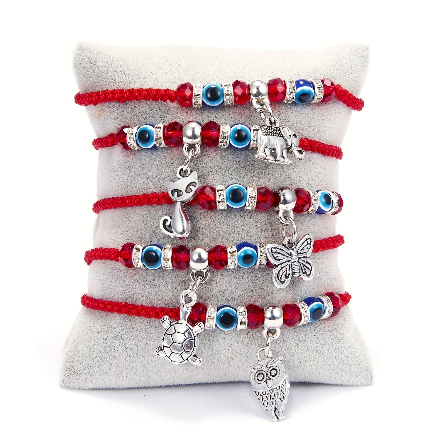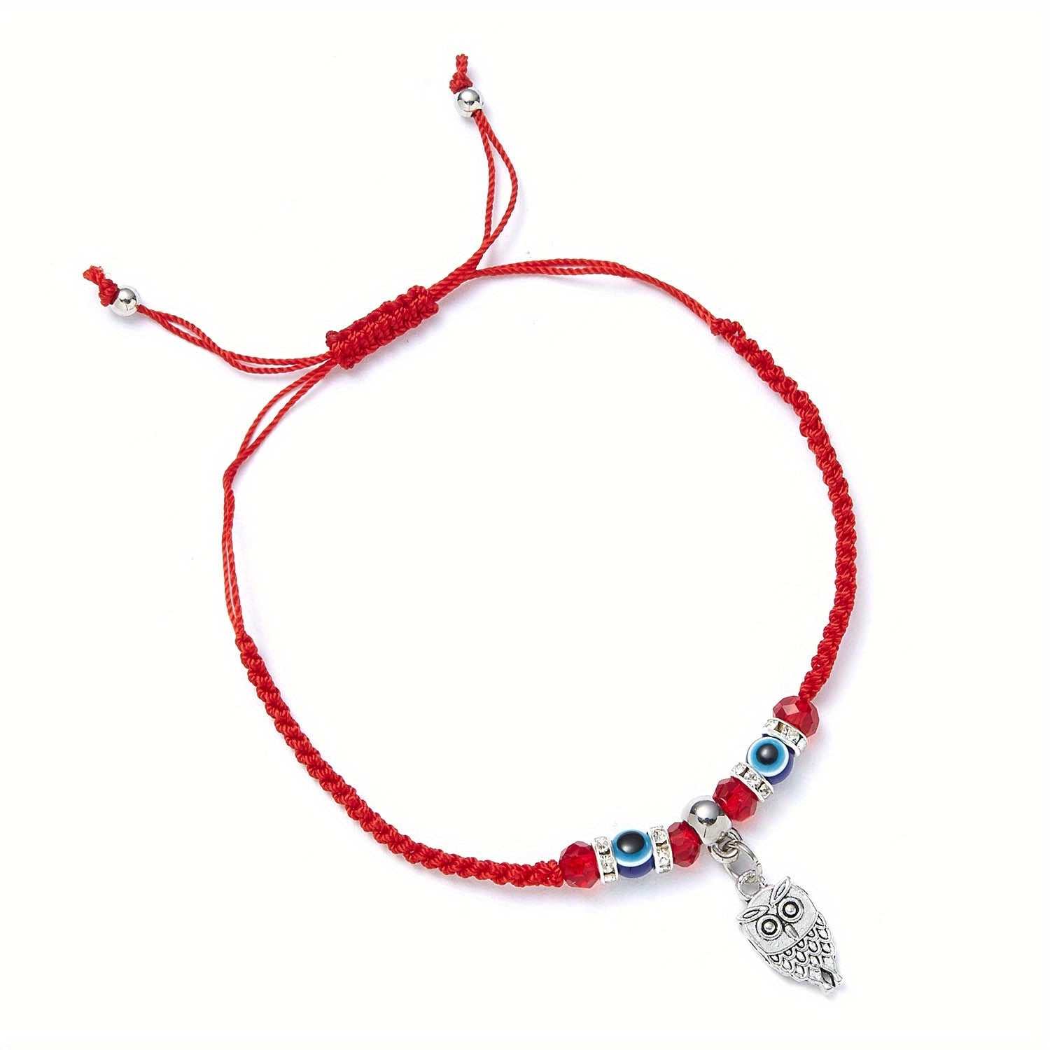 This stylish bracelet features an evil eye design on a red braided rope, perfect for summer beach outings or as a friendship accessory.