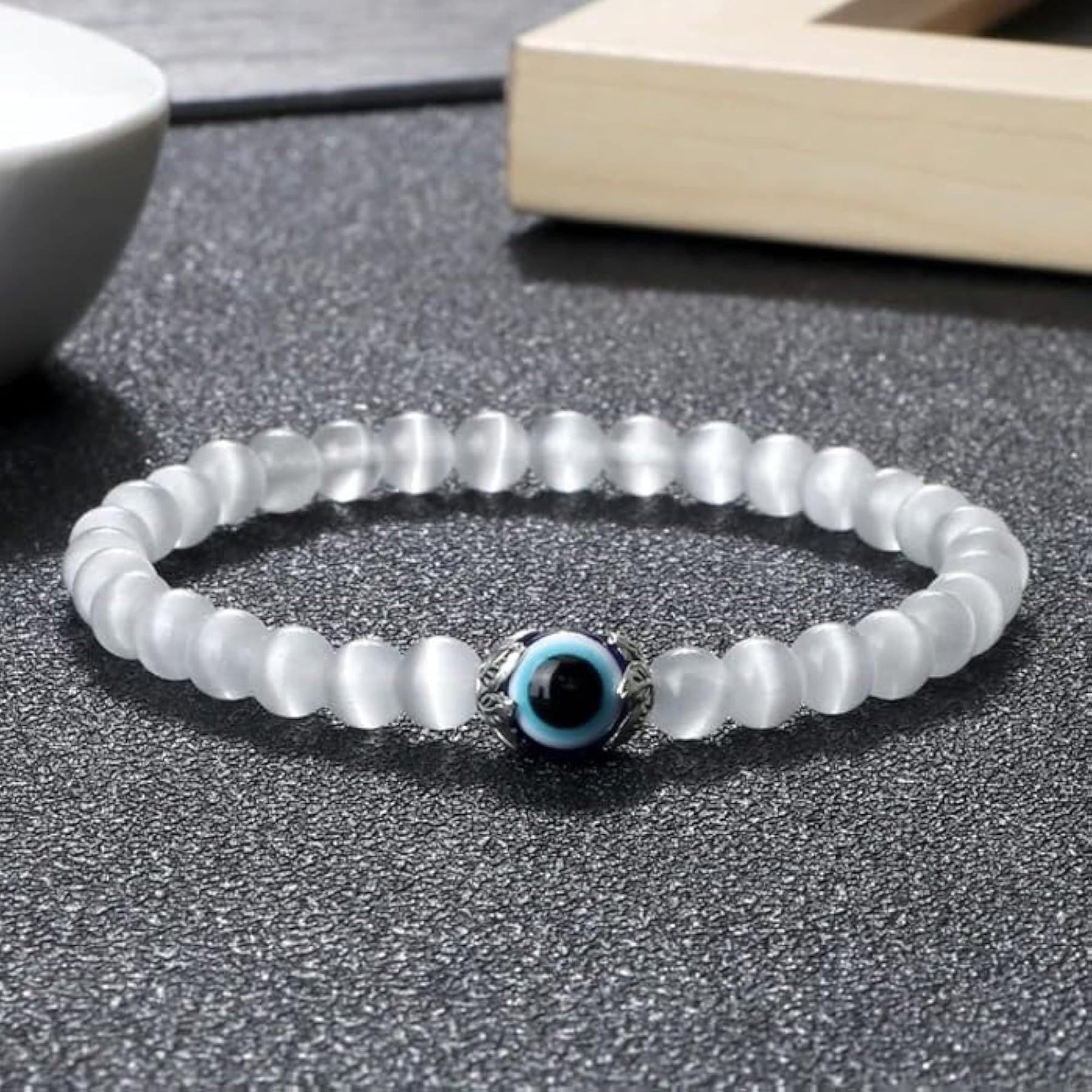 Ward off negative energy with this evil eye stone bracelet. Handcrafted with protective properties, it is perfect for everyday wear.