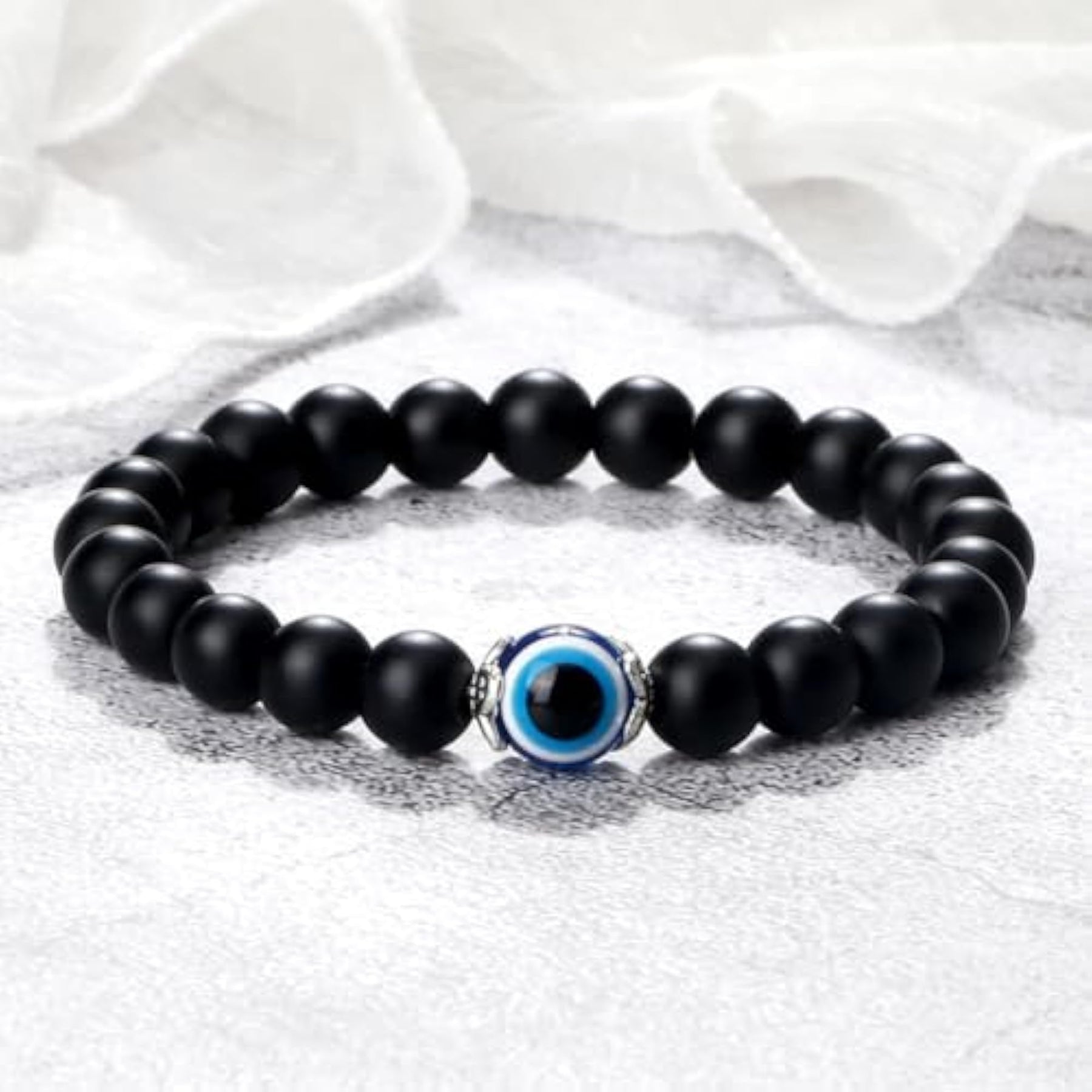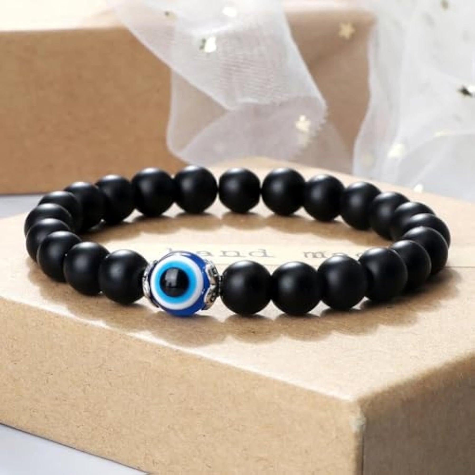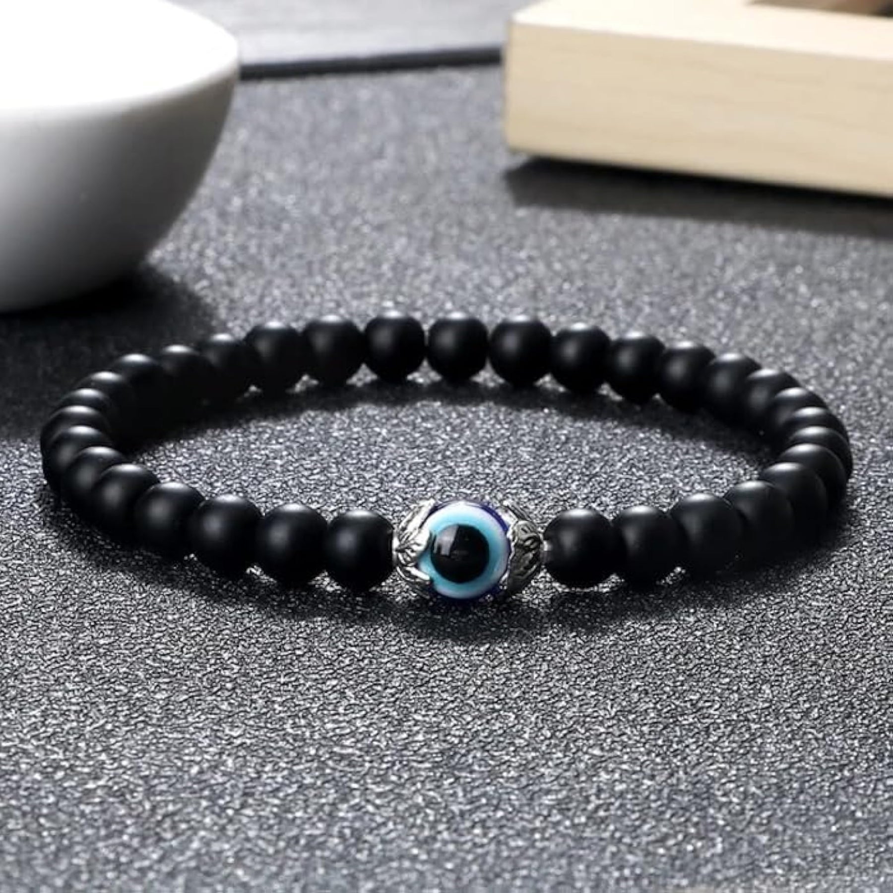 Ward off negative energy with this beautiful Evil Eye stone bracelet. Handcrafted with care, this bracelet is believed to provide protection and bring good luck.
