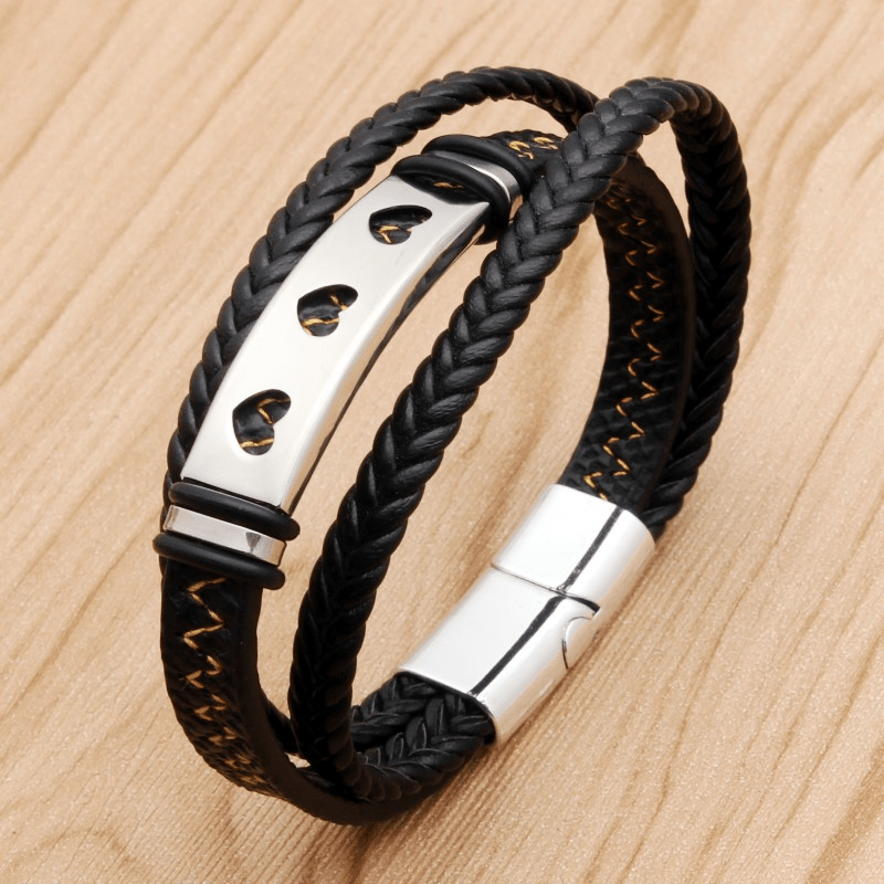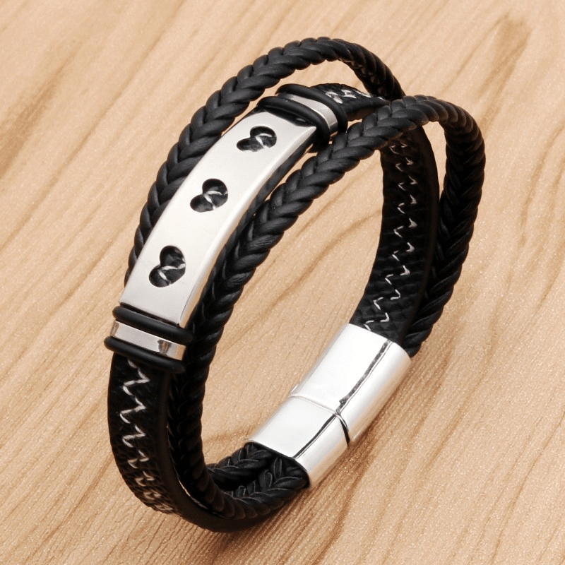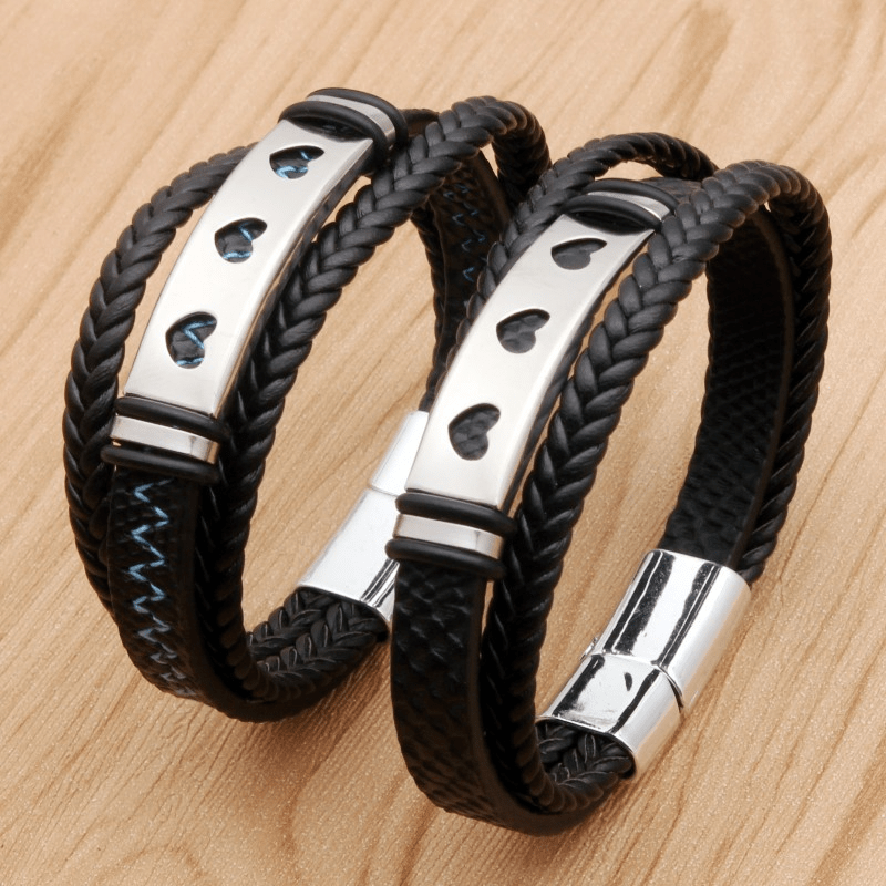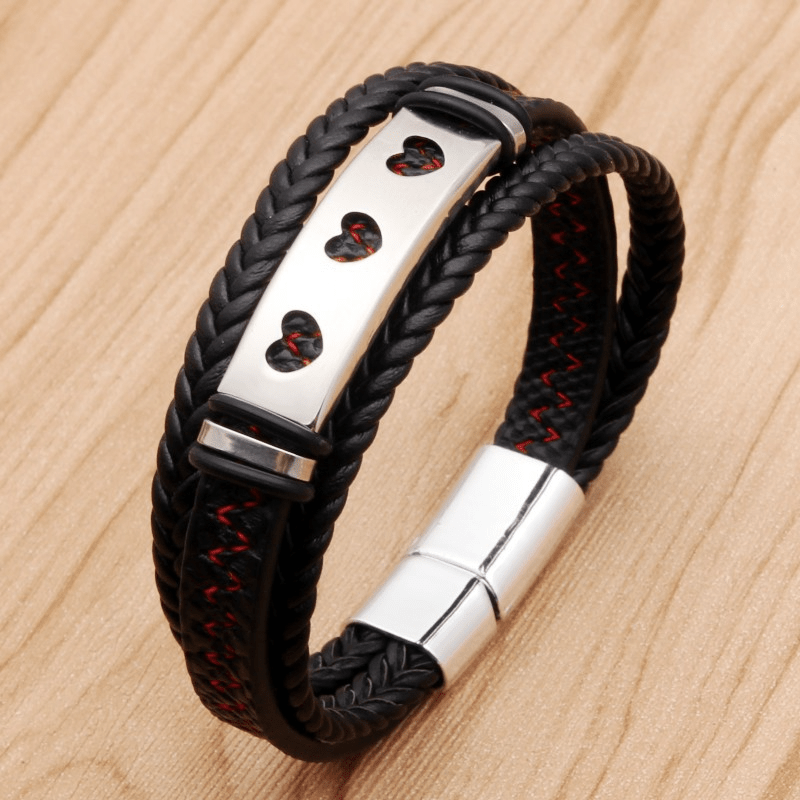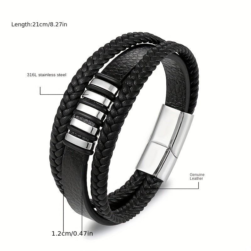 This stylish bracelet features a faux leather band with a stainless steel alloy magnetic buckle. Perfect for everyday wear or special occasions.
