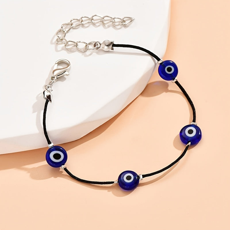 This hand rope bracelet features unique glass eye beads that add a touch of mystery and style. Perfect for both women and men.