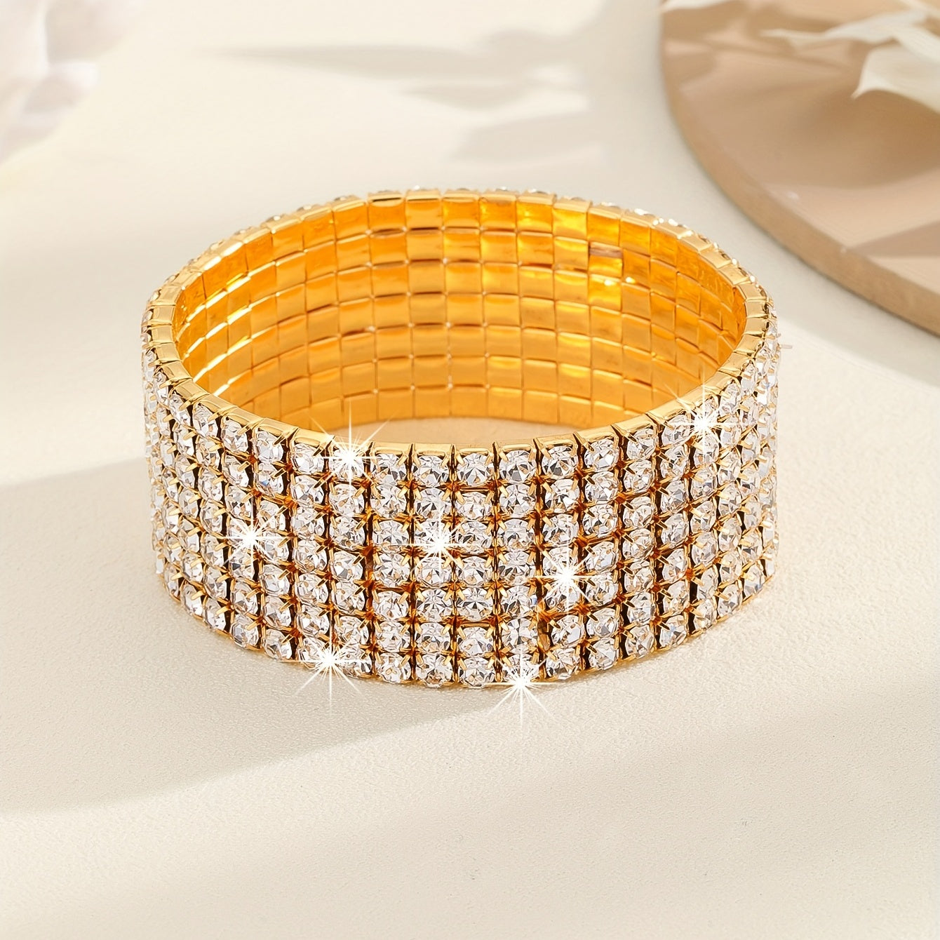 Add a touch of glam to your ensemble with this stunning Glitter Claw Chain Stretch Bangle. Perfect for women and girls, this hand jewelry is available in golden and silver tones, making it a versatile accessory for any outfit or occasion.
