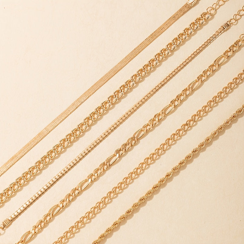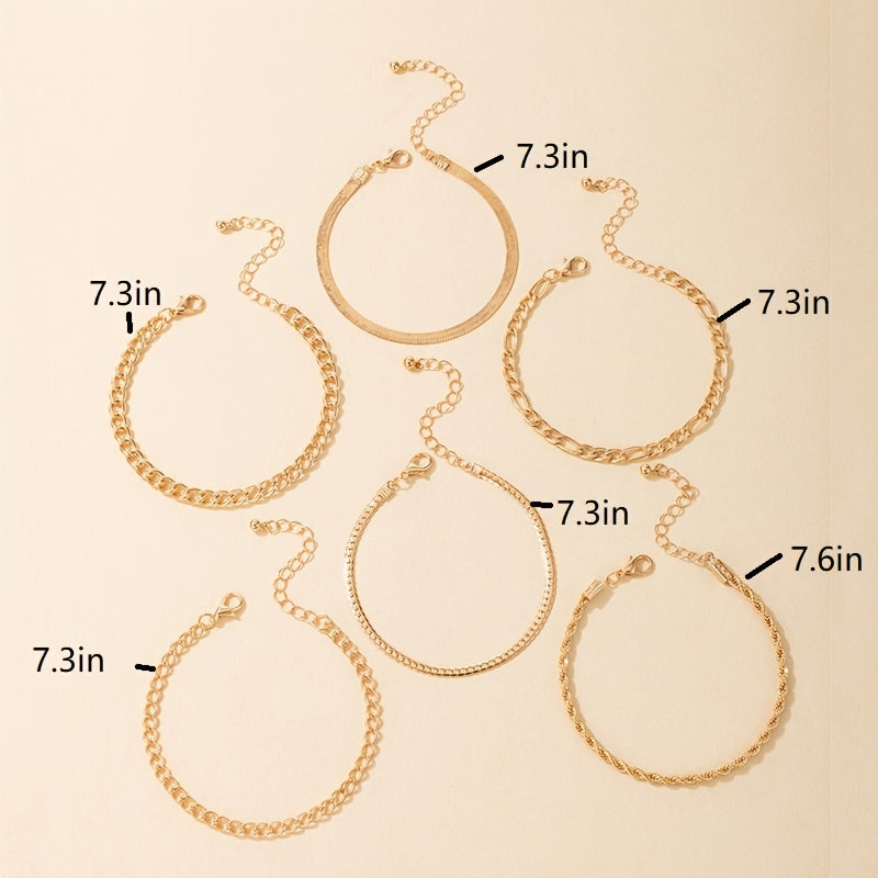 This set includes 6 multiple layered adjustable alloy chain bracelets in a punk style design. Perfect for women and girls to add a trendy touch to their outfit.