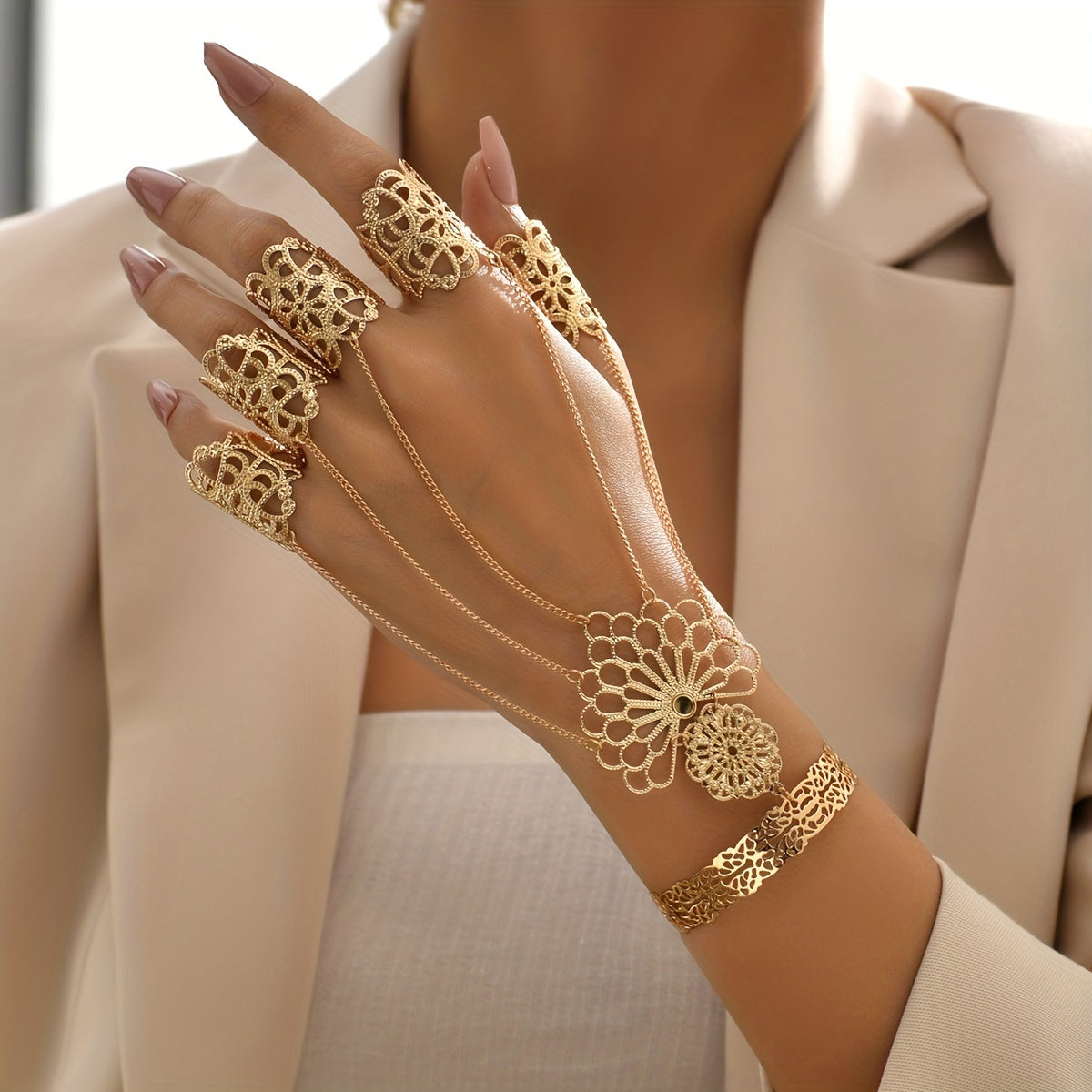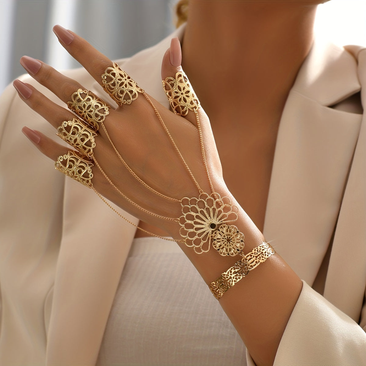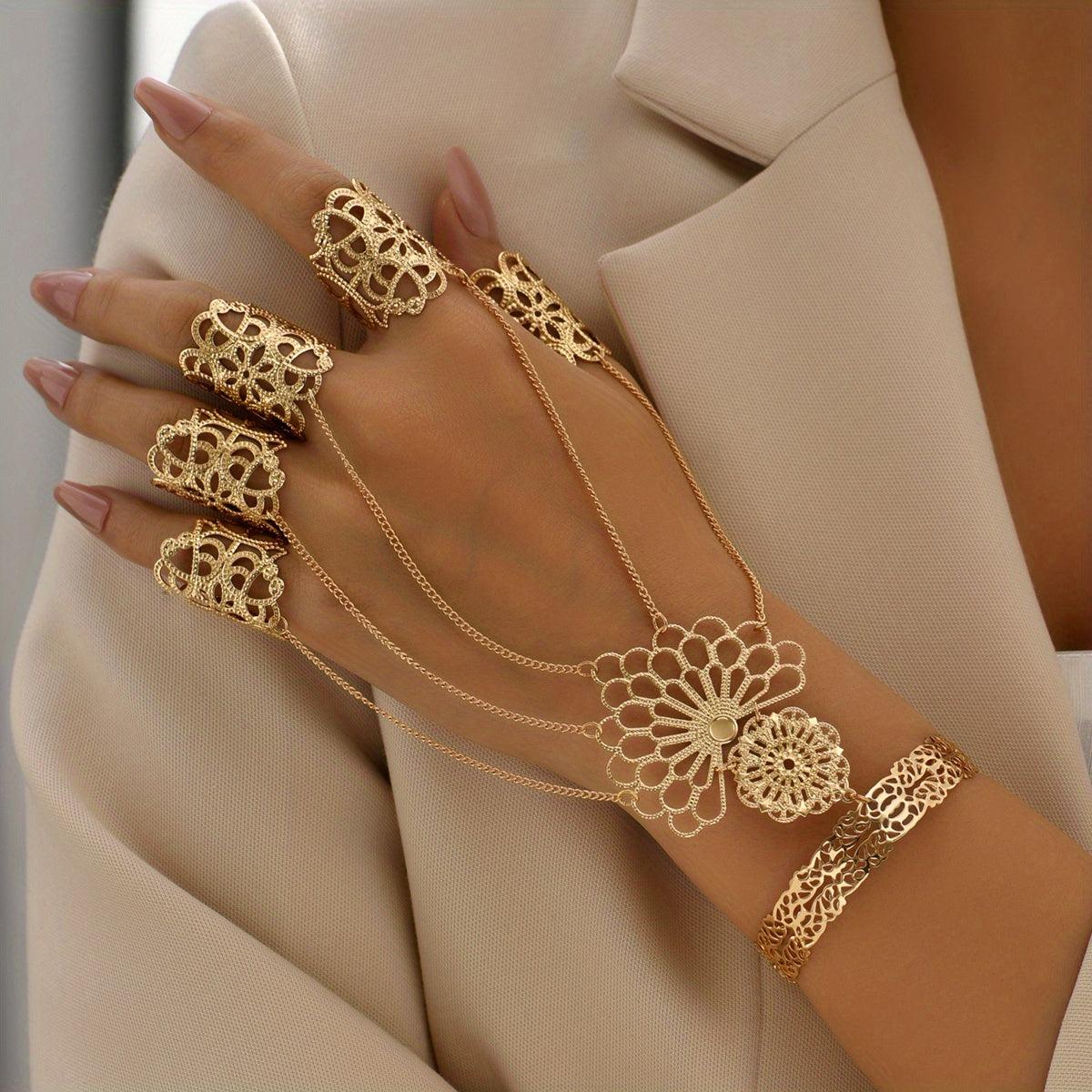 Make a bold statement with this Gothic Punk Style Exaggerated Finger Ring Bracelet. Perfect for hip hop style looks, this hand jewelry will elevate your outfit to the next level.