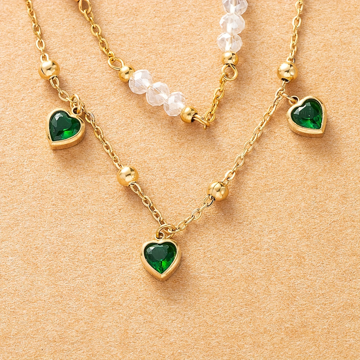 Green Crystal Pendant Bracelet Double Layer Stainless Steel Chain Jewelry