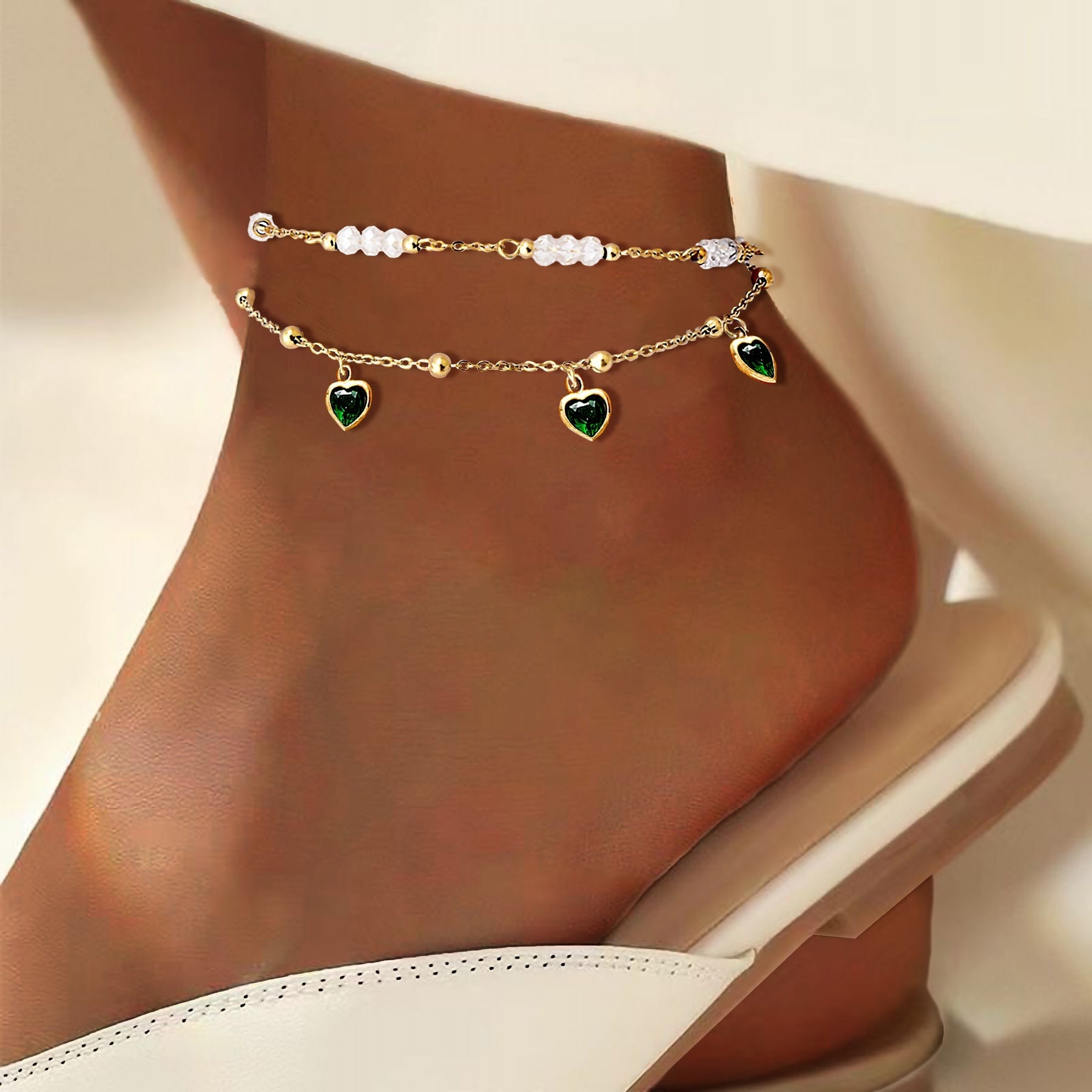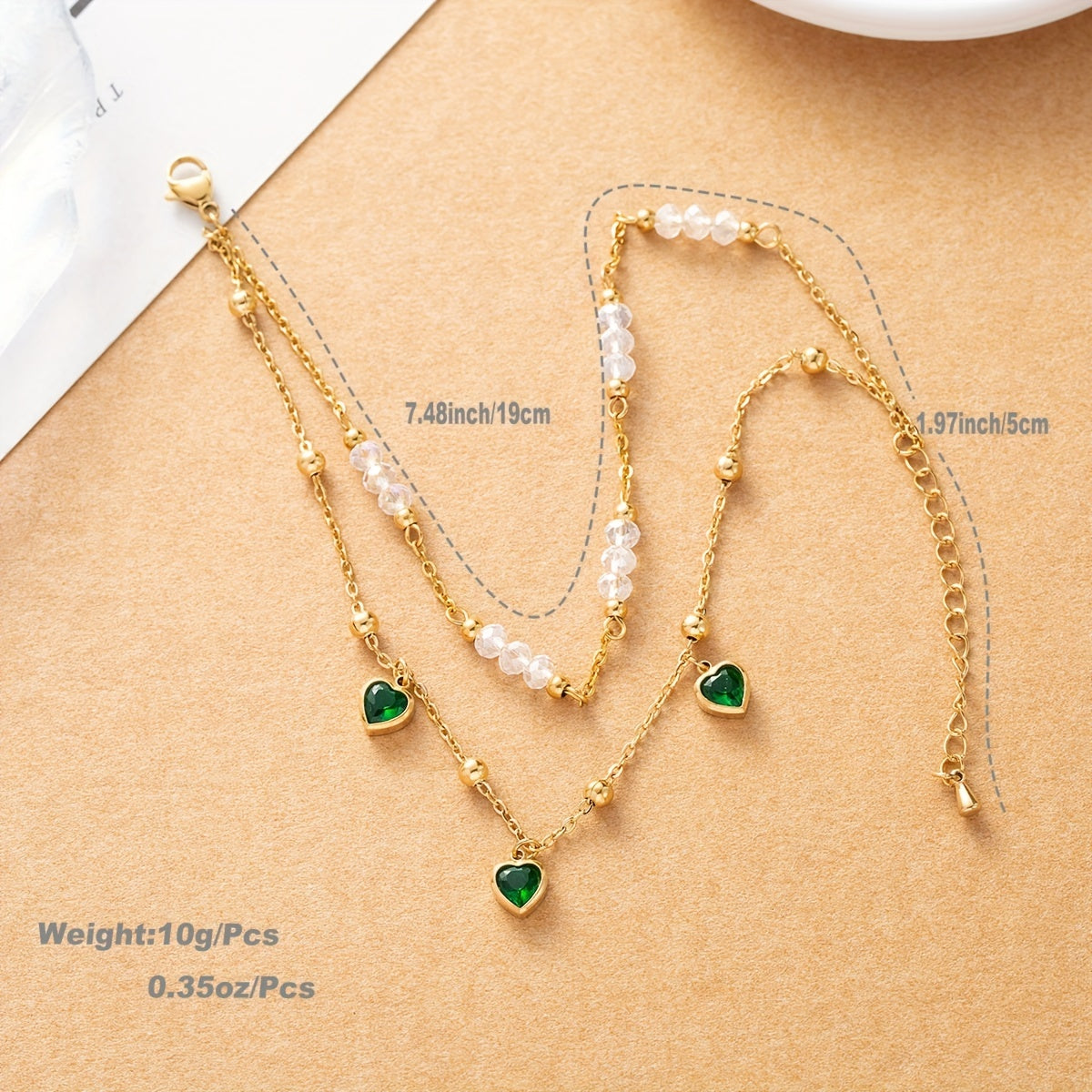 Elegant and stylish, this double layer bracelet features a green crystal pendant on a dainty stainless steel link chain. Perfect for adding a touch of glamour to any outfit.