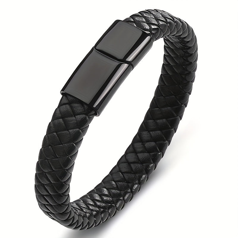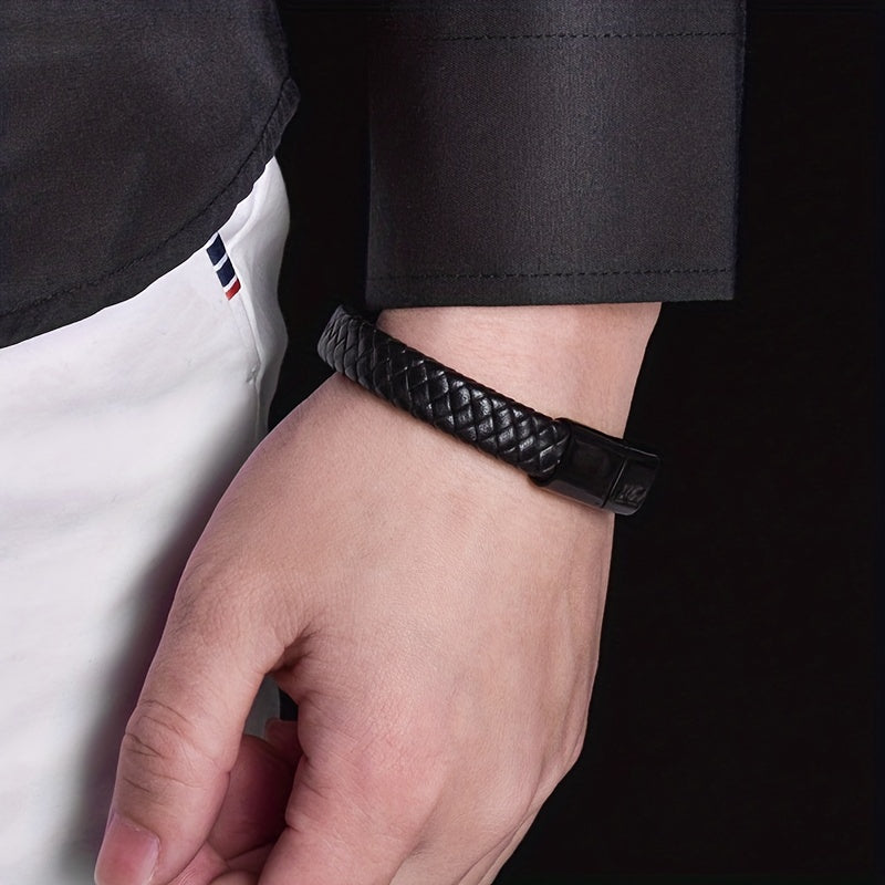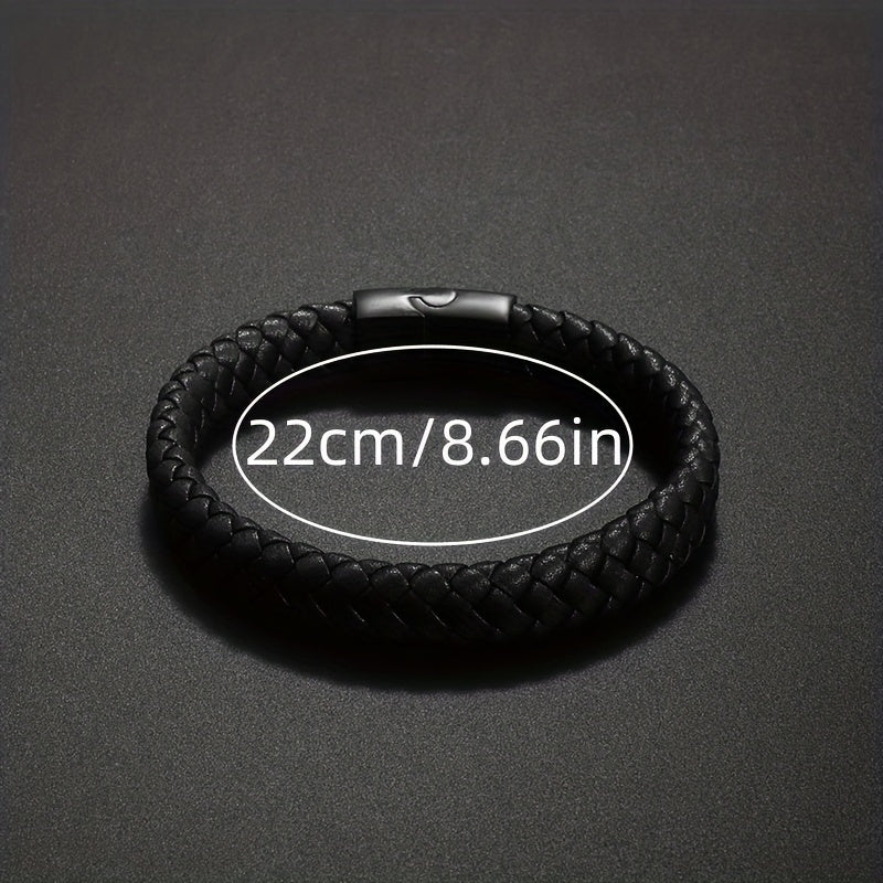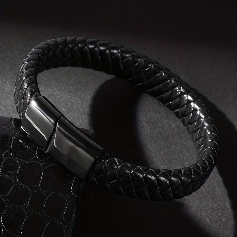 This hand woven leather bracelet with a magnetic buckle is perfect for daily wear. It adds a touch of casual style to any outfit.