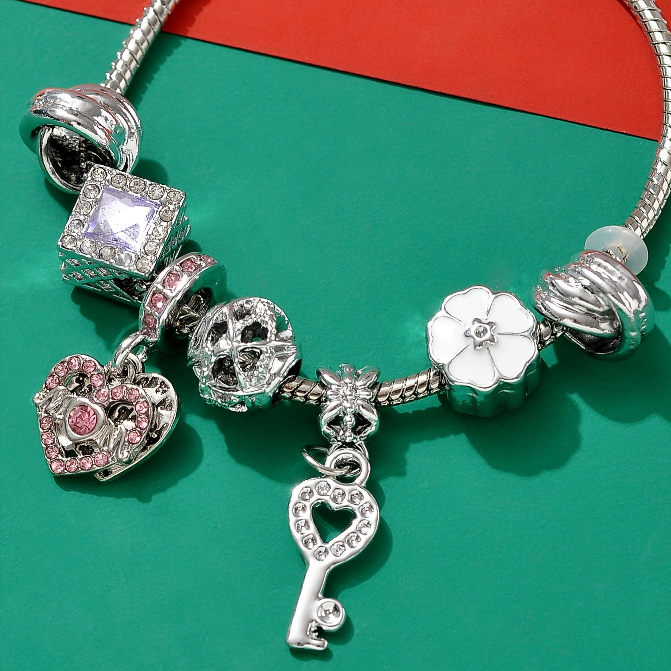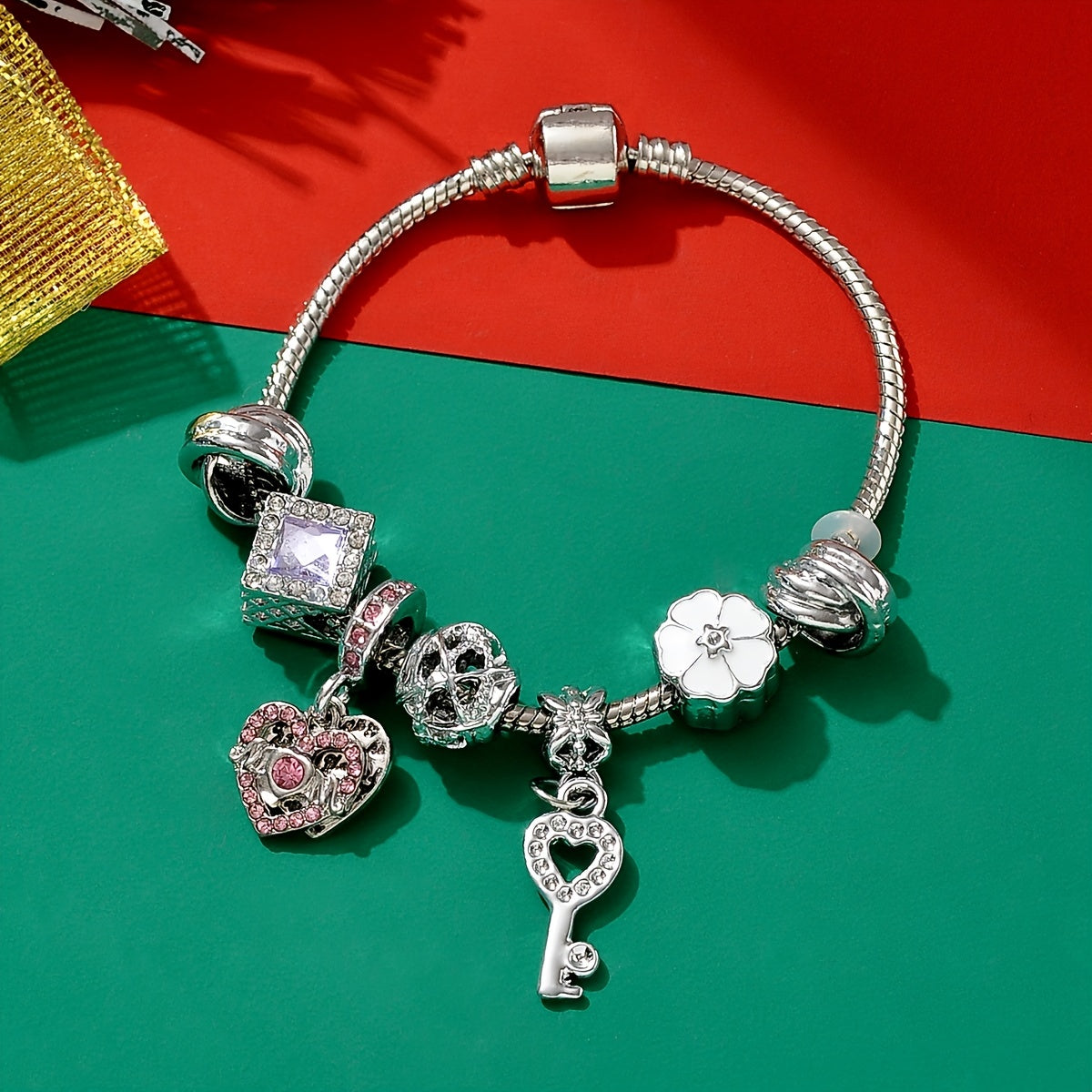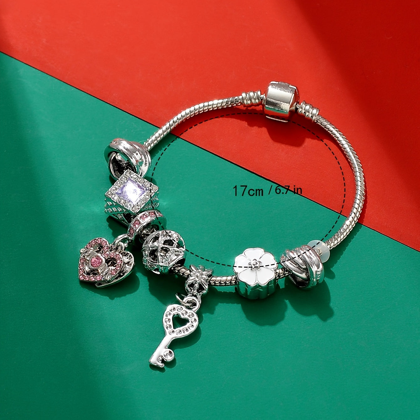 This exquisite bracelet features a heart key pendant with dazzling rhinestones, perfect for women, wives, girls, or friends. Ideal for birthdays or special occasions.