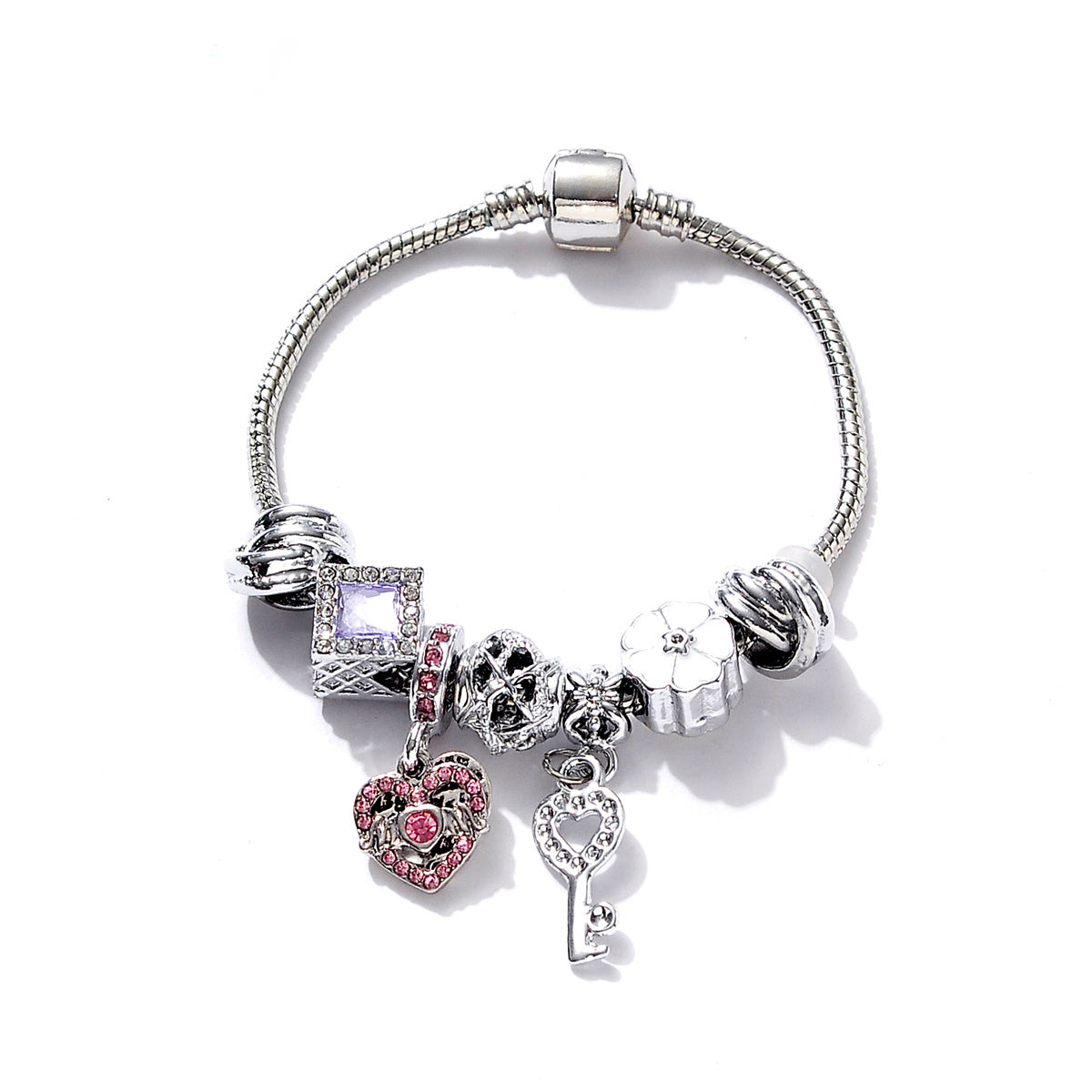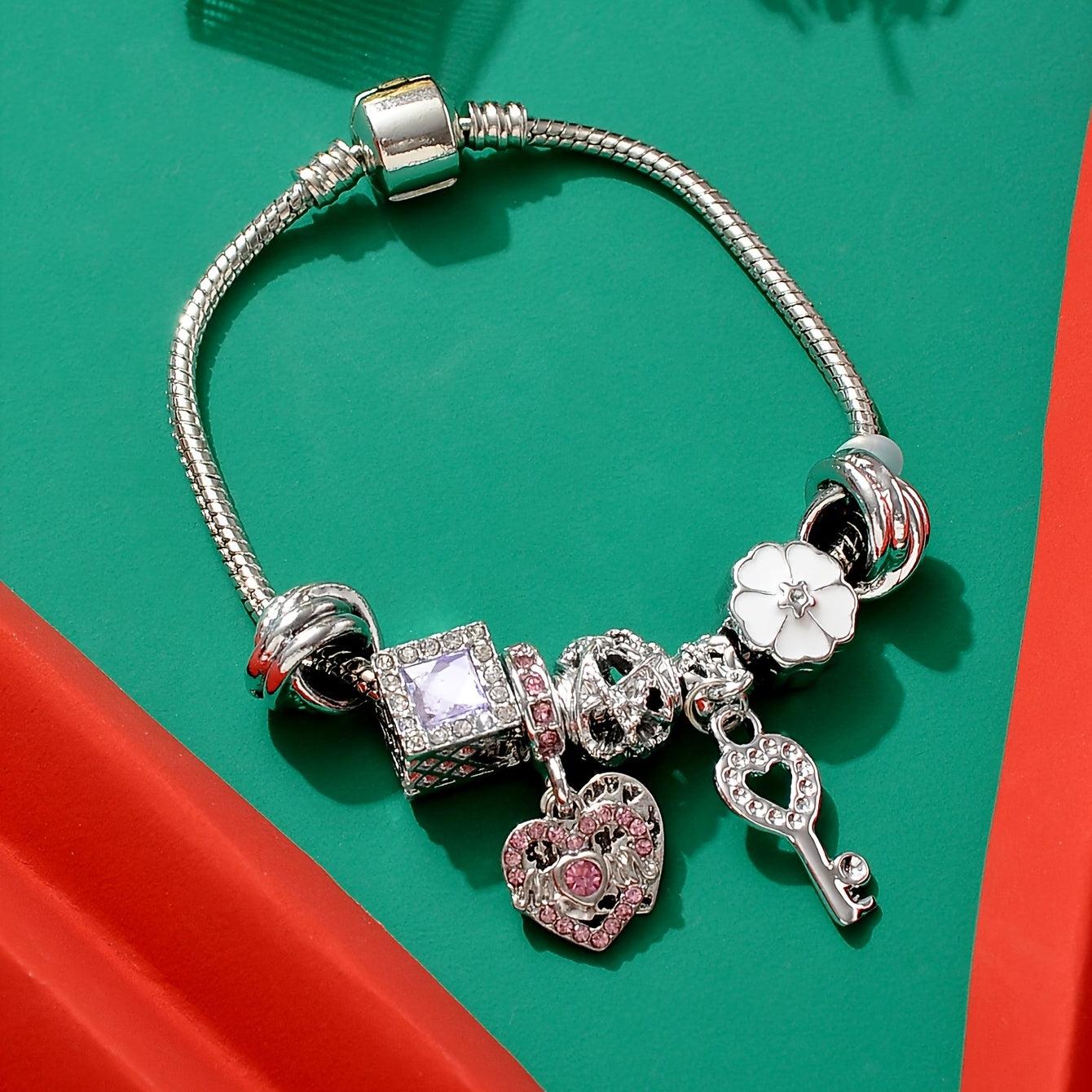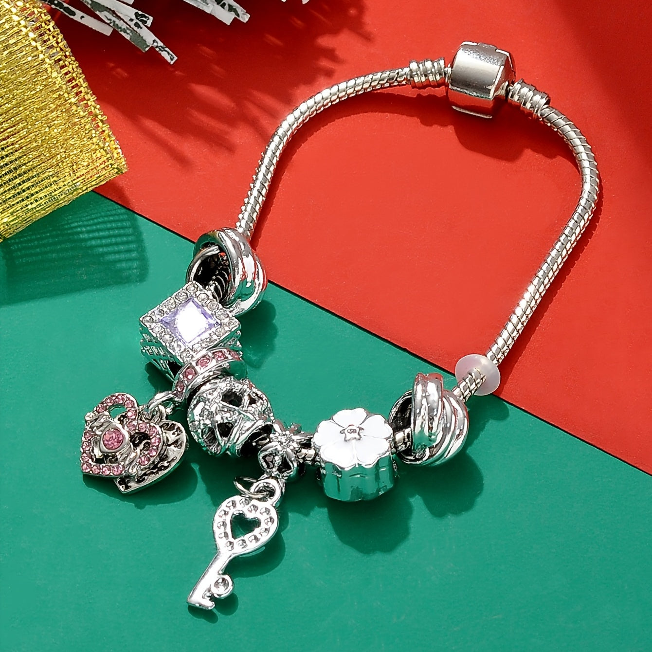 This exquisite bracelet features a heart key pendant with dazzling rhinestones, perfect for women, wives, girls, or friends. Ideal for birthdays or special occasions.