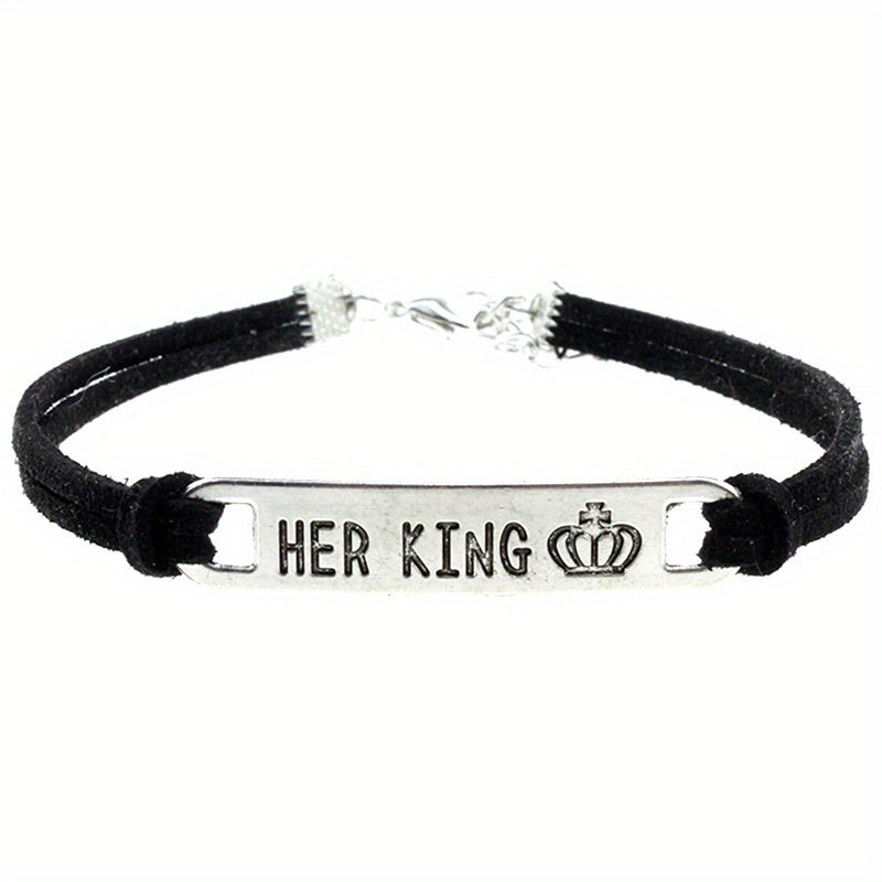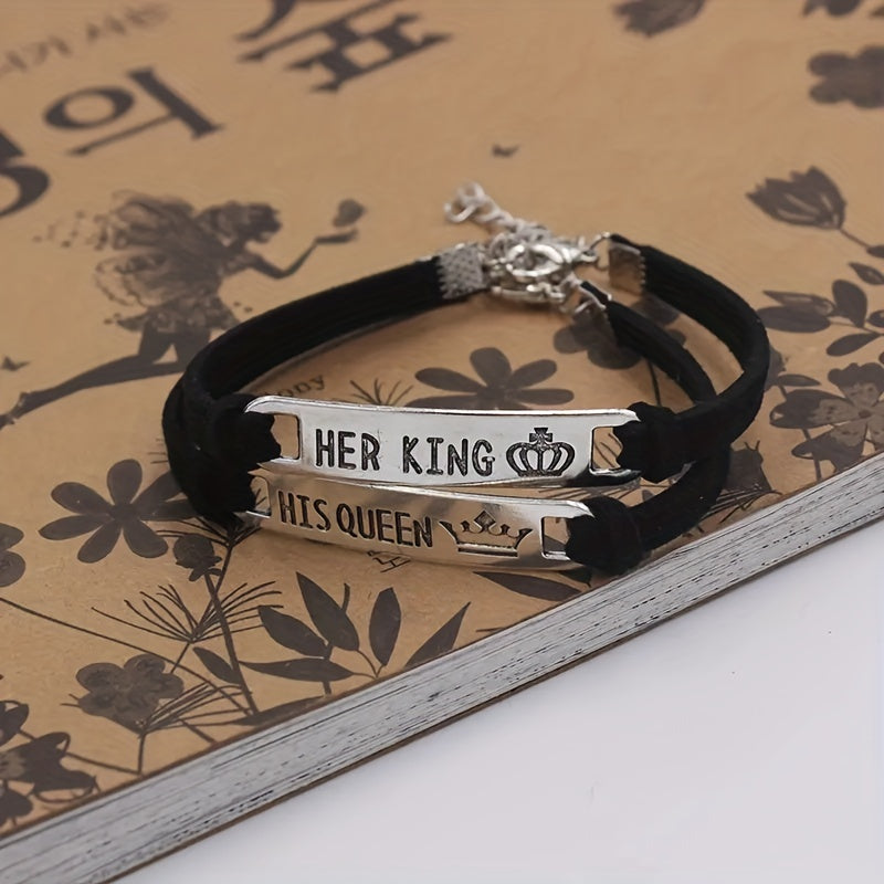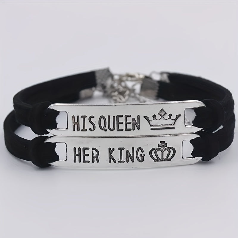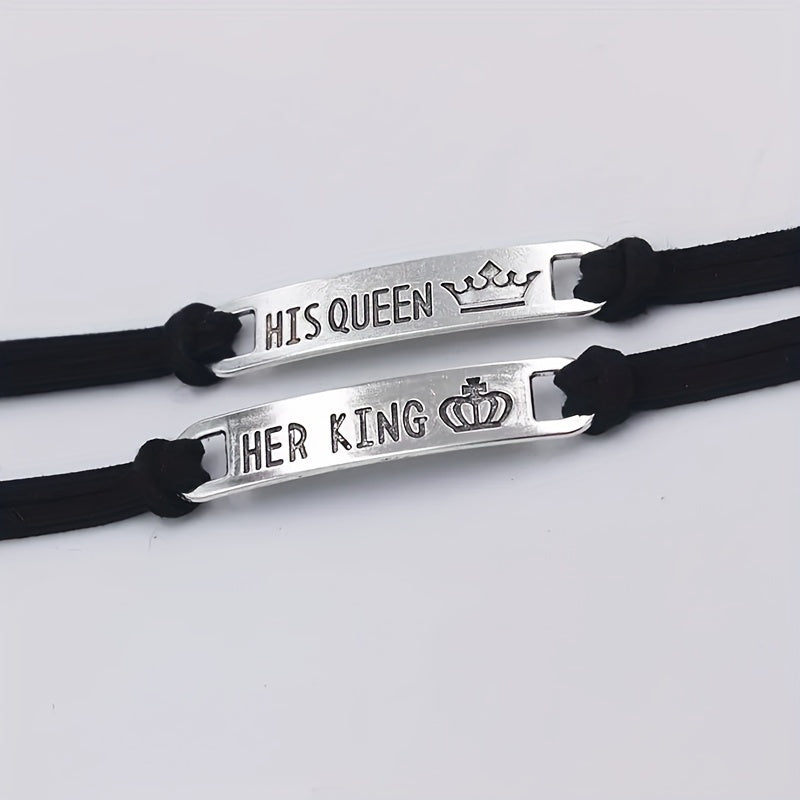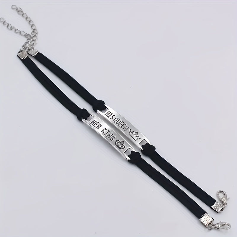 Show your love with these matching metal bracelets designed for couples. The set includes one bracelet for him and one for her.