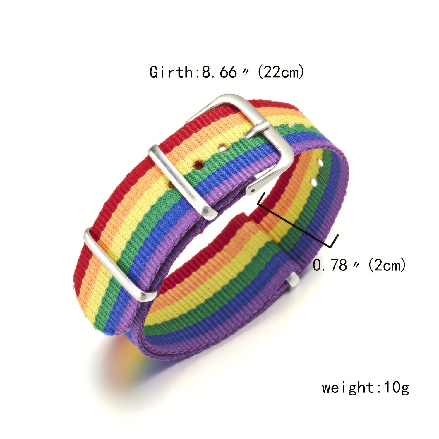 This bracelet features an LGBT rainbow strap design, perfect for men and couples. It's a unique and stylish accessory that symbolizes friendship and love. Great as a gift for yourself or a loved one.