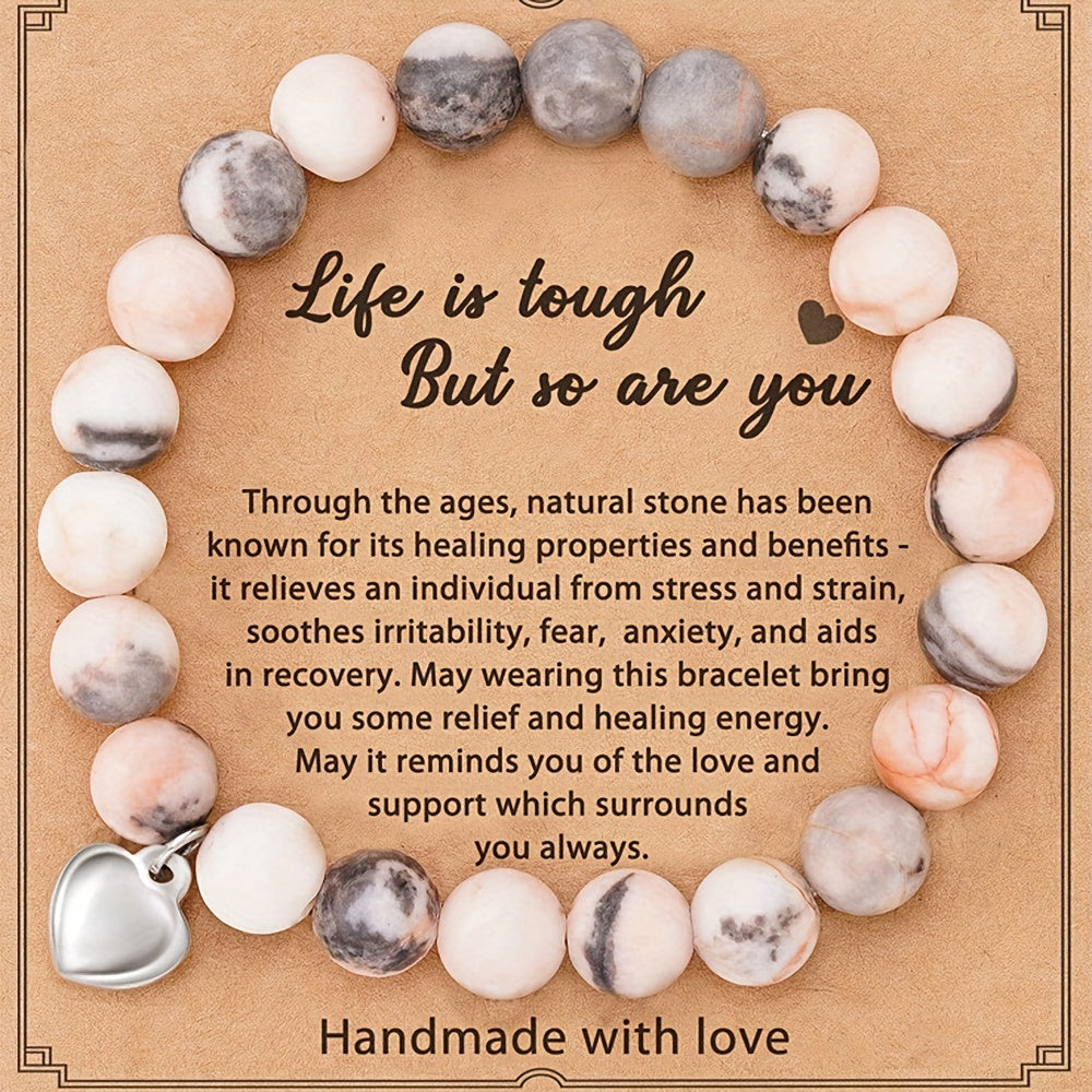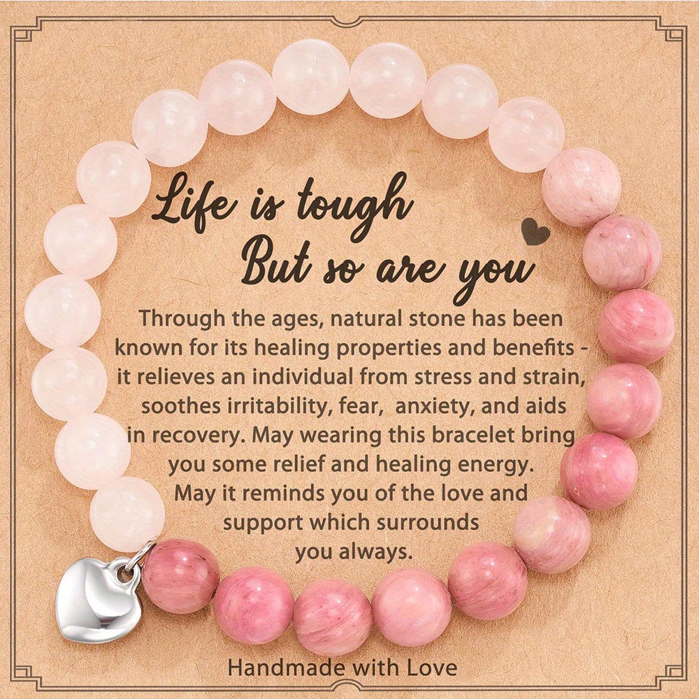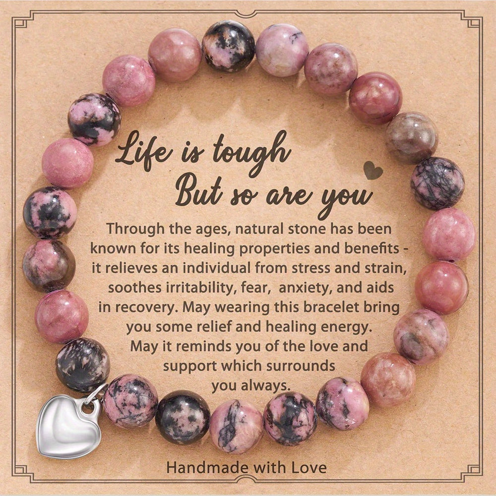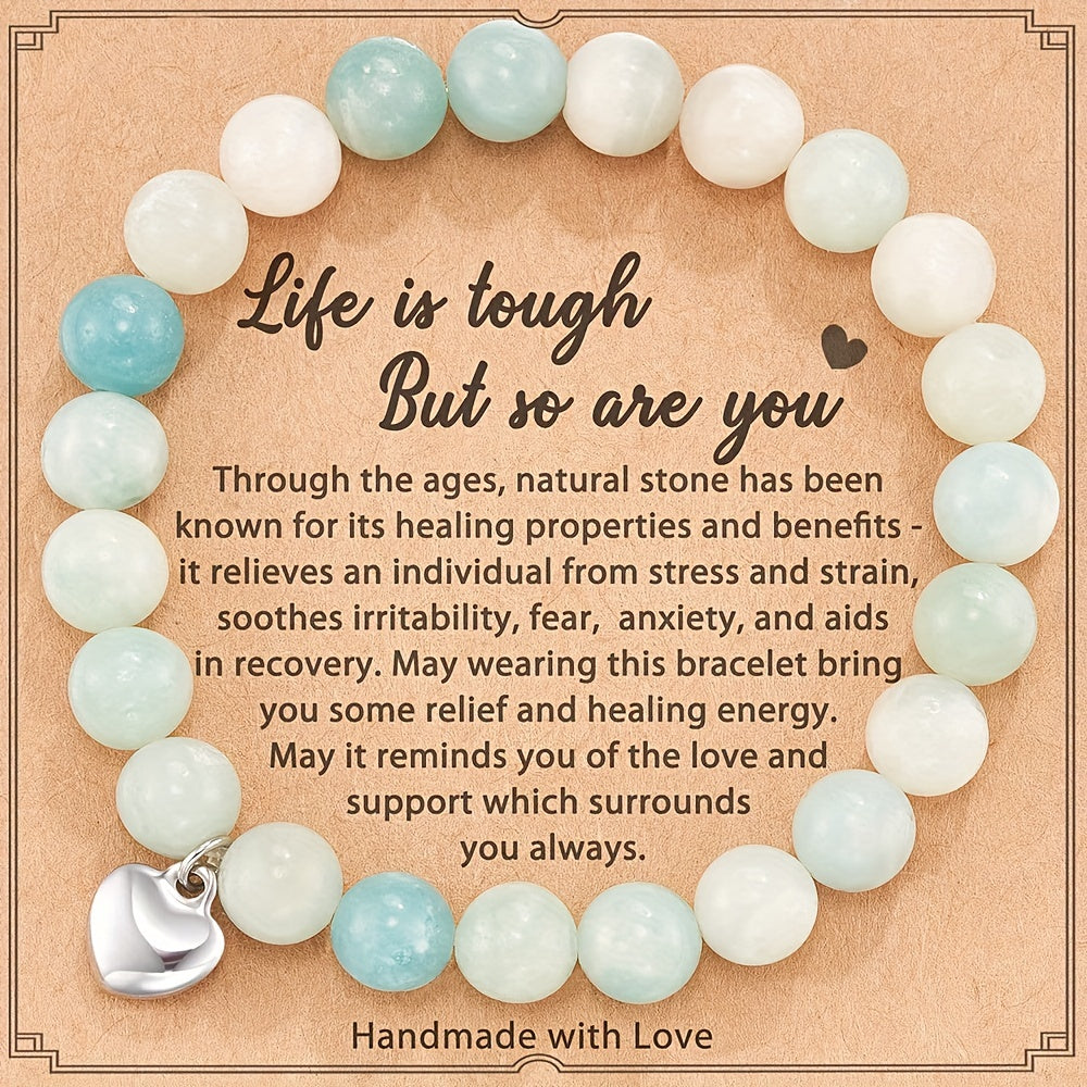 Embrace positive energy with this beaded bracelet featuring a love heart pendant. Perfect for calming anxiety and promoting healing. Includes card for gifting.