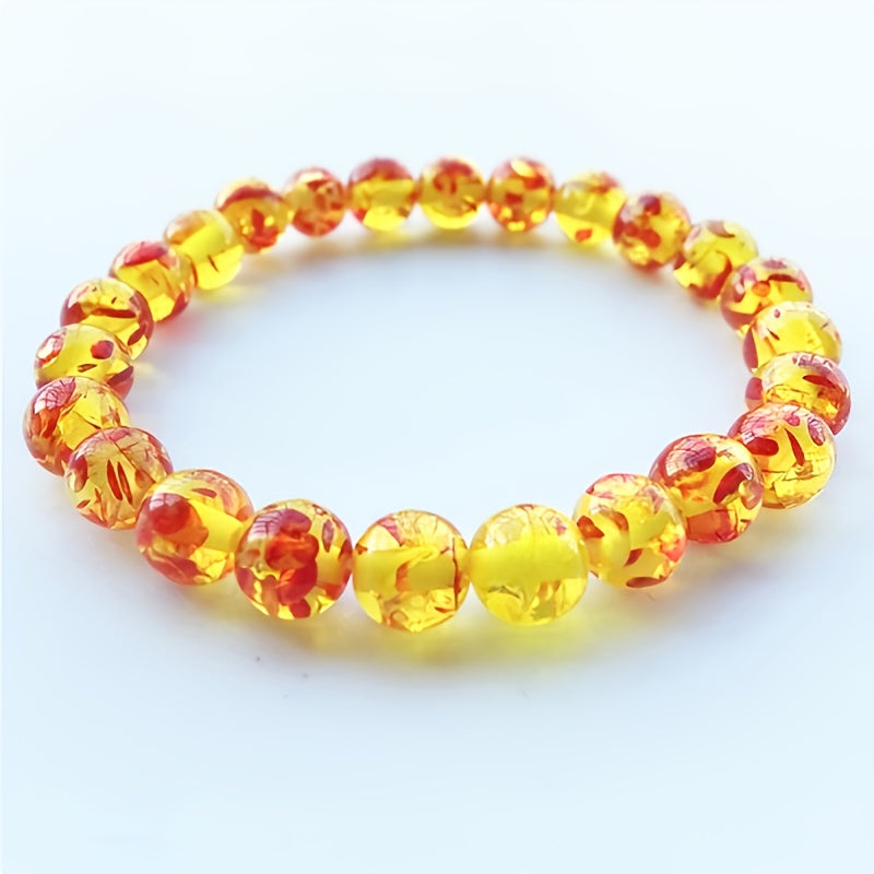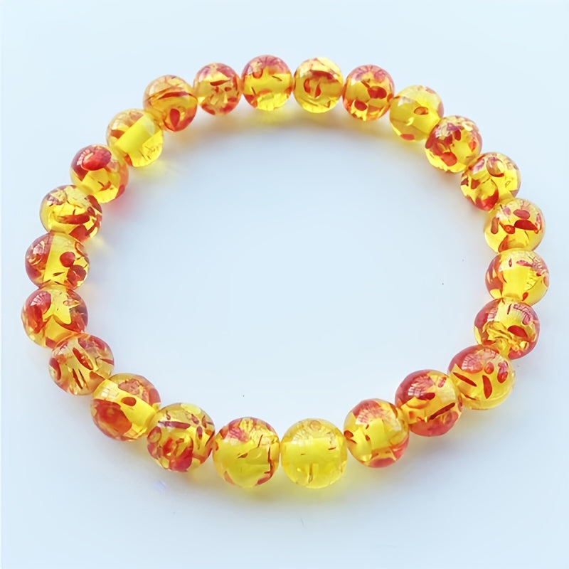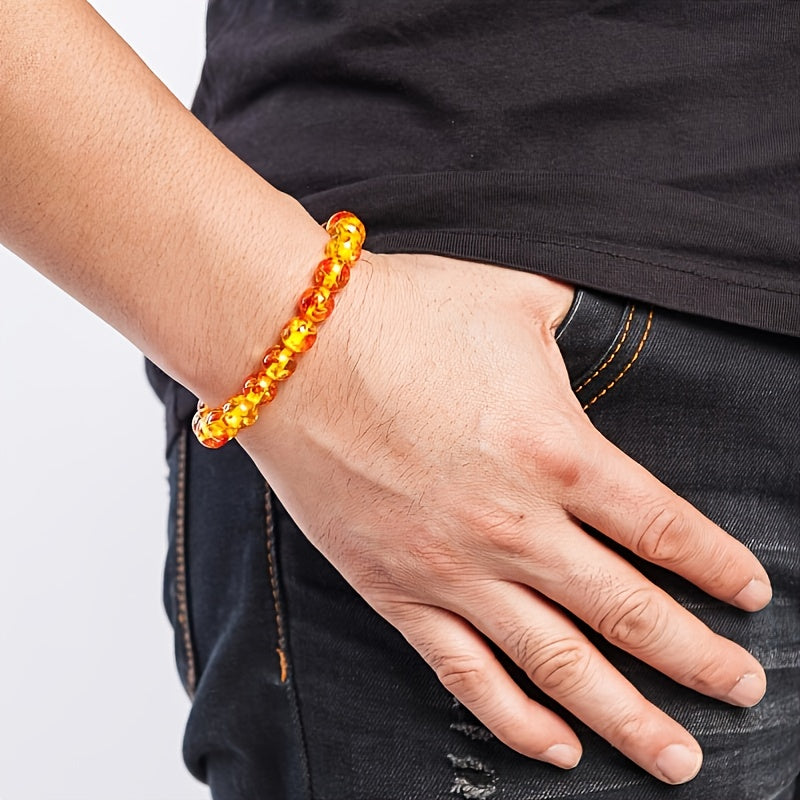 This classic bracelet features amber crystal beads that bring luck and style to your look.