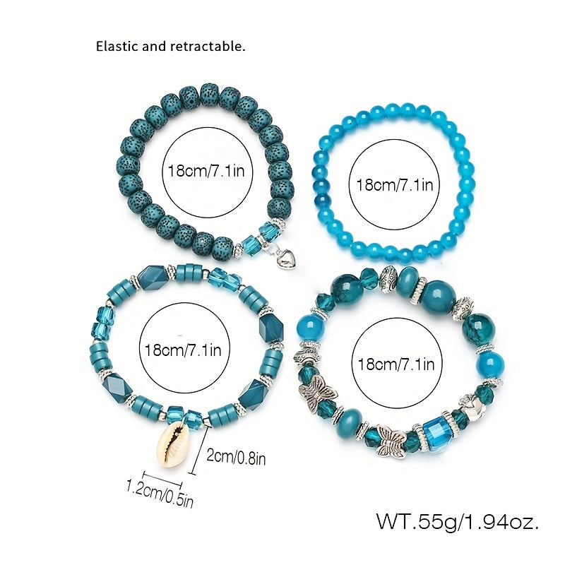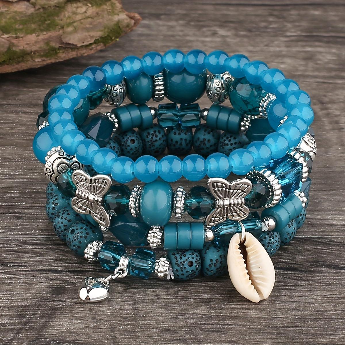 Men's Beaded Bracelet with Shell Peach Heart Pendant and Butterfly Decoration