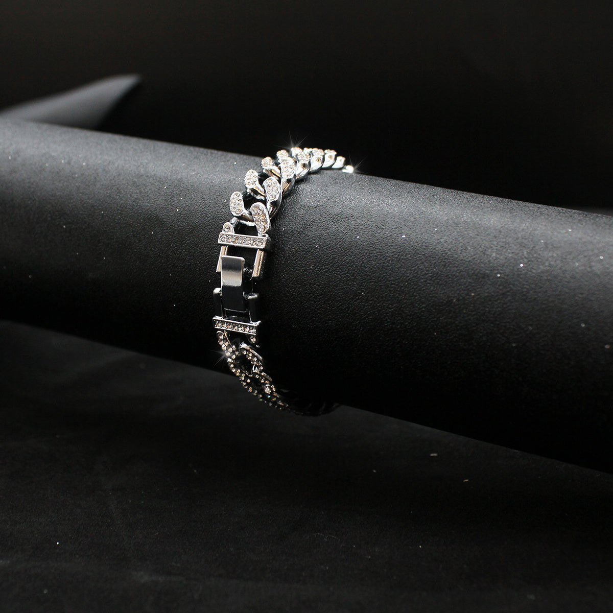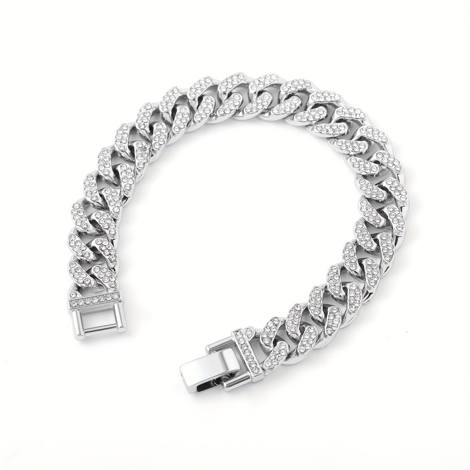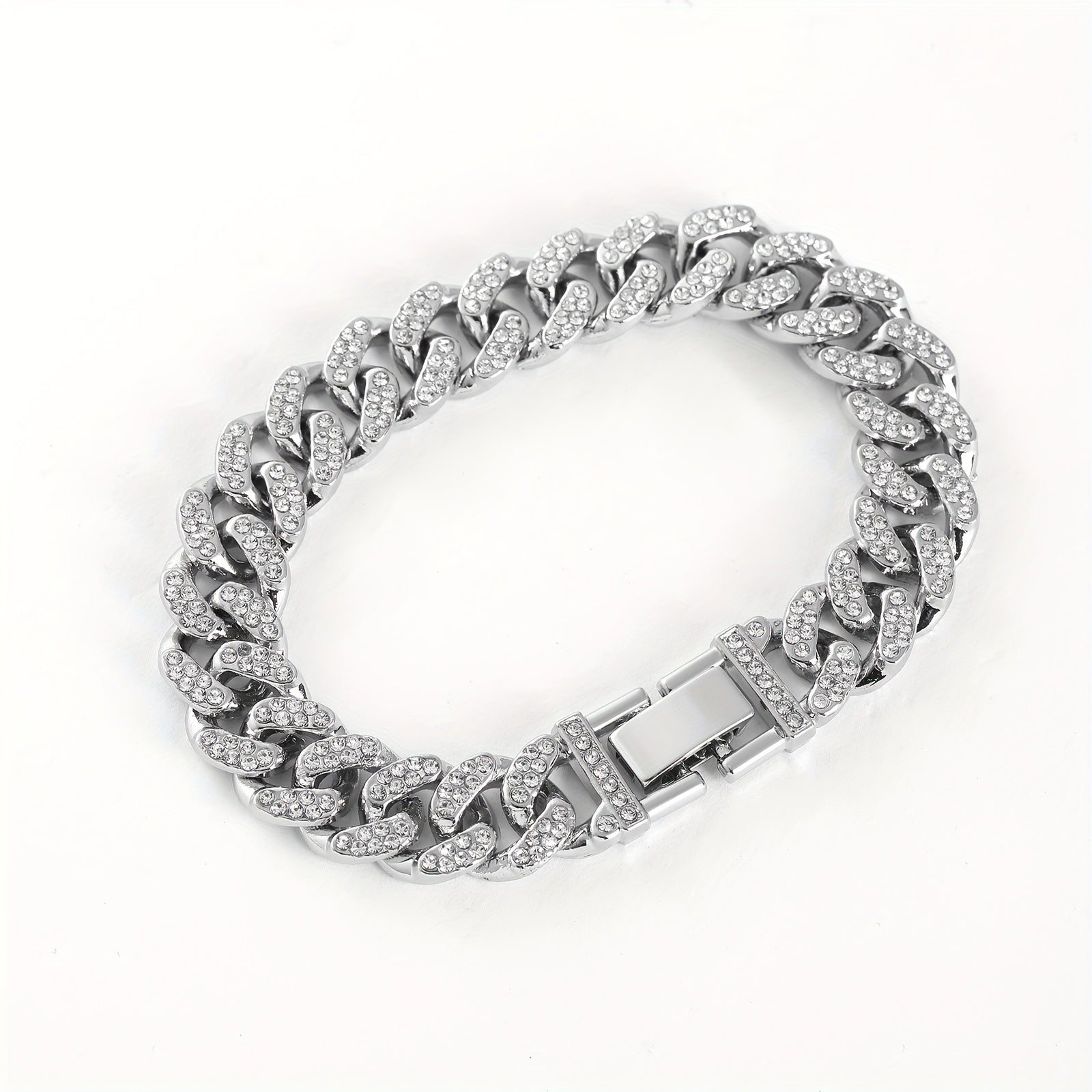 This stylish bracelet features a silver alloy design with rhinestone accents, perfect for adding a hip hop vibe to any outfit.