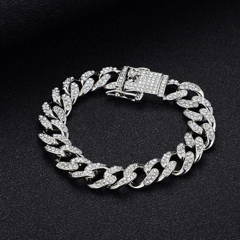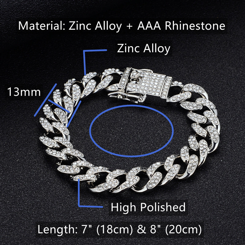 Add a touch of sparkle to your outfit with this stylish men's bracelet featuring round rhinestones. Made of high-quality zinc alloy, this bracelet is perfect for adding a touch of sophistication to any look.