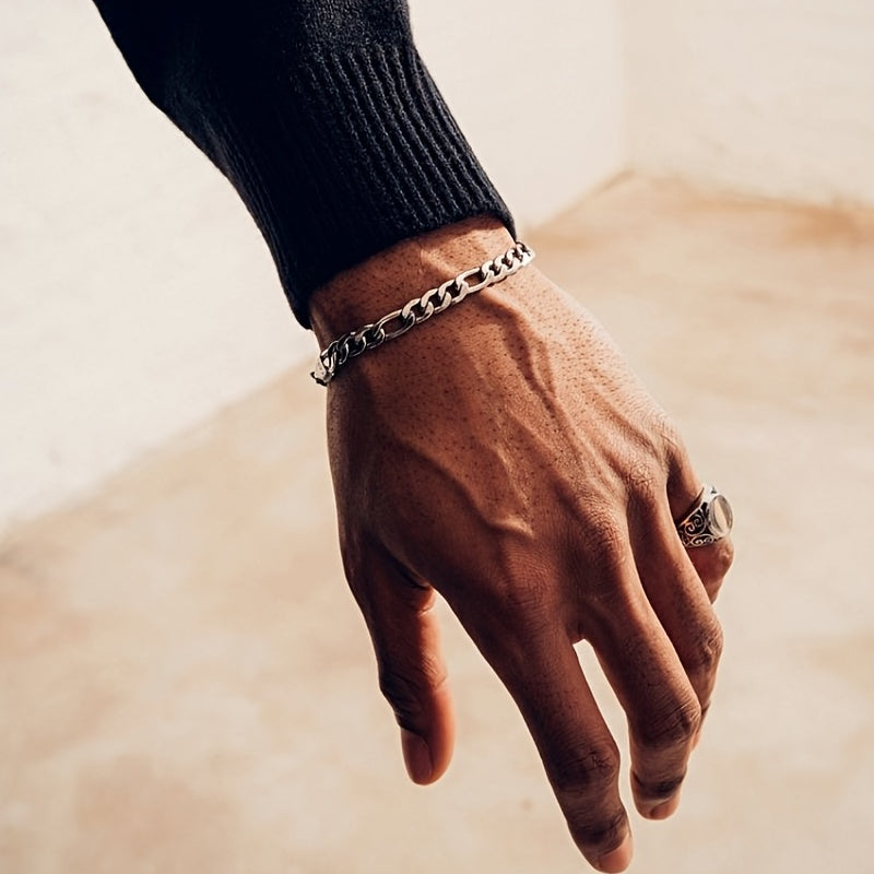 This stainless steel silver bracelet is a stylish accessory for men. It makes a great gift for any occasion.