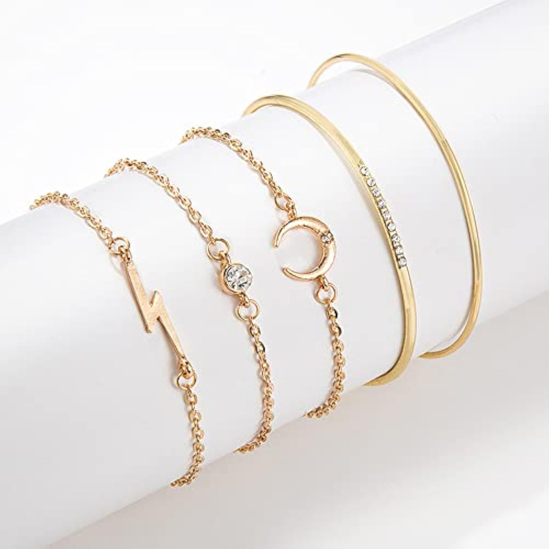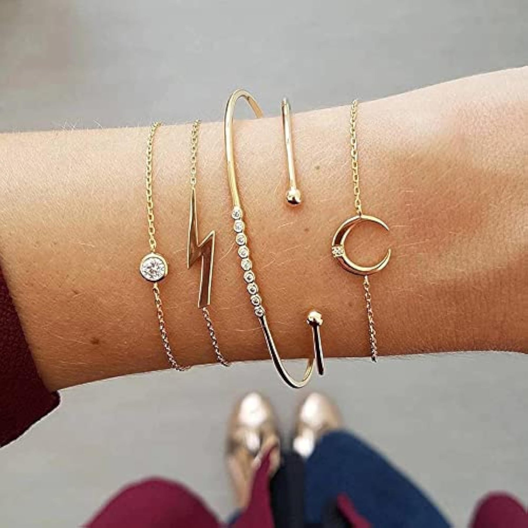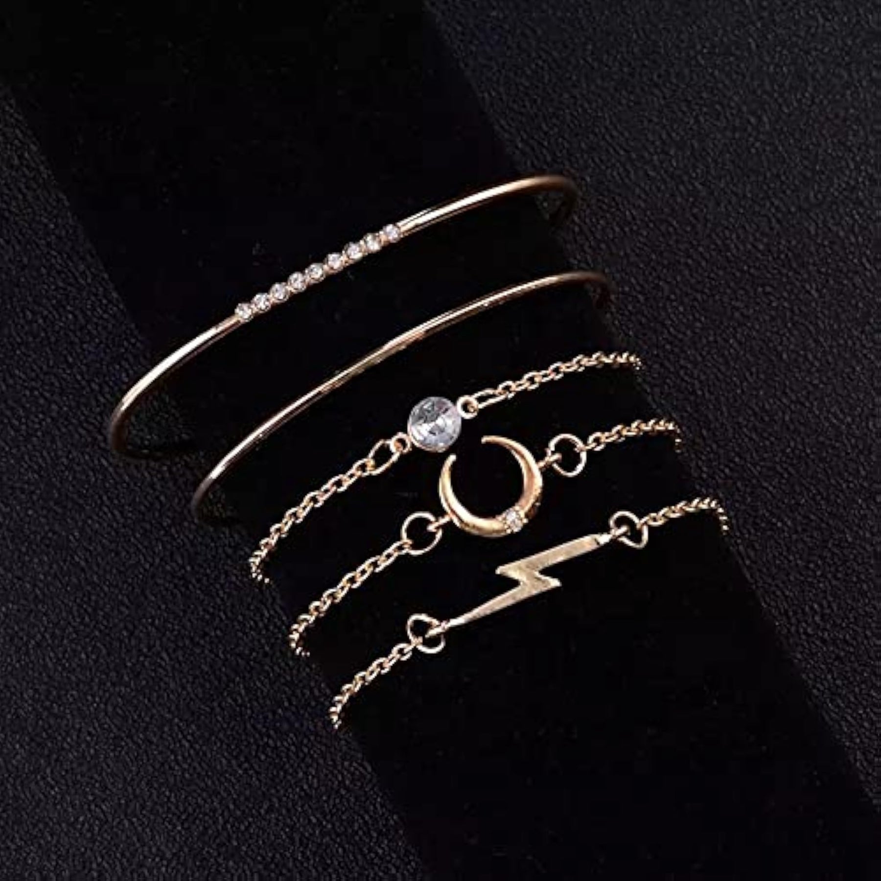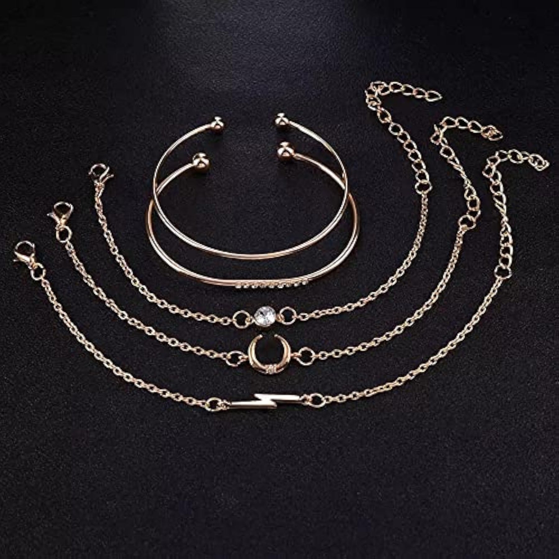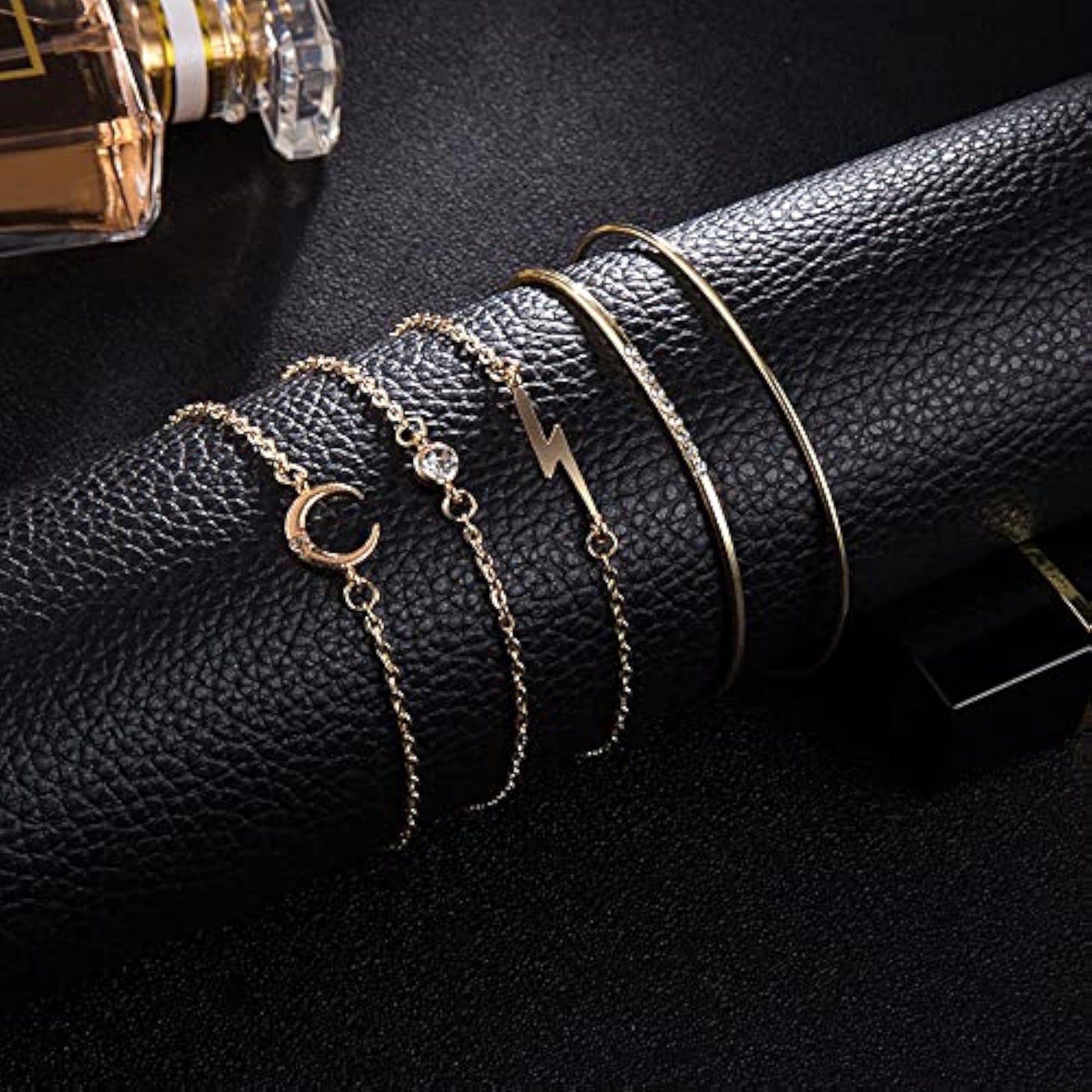 • Set of 5 stylish multilayer crystal bangle plated bracelets