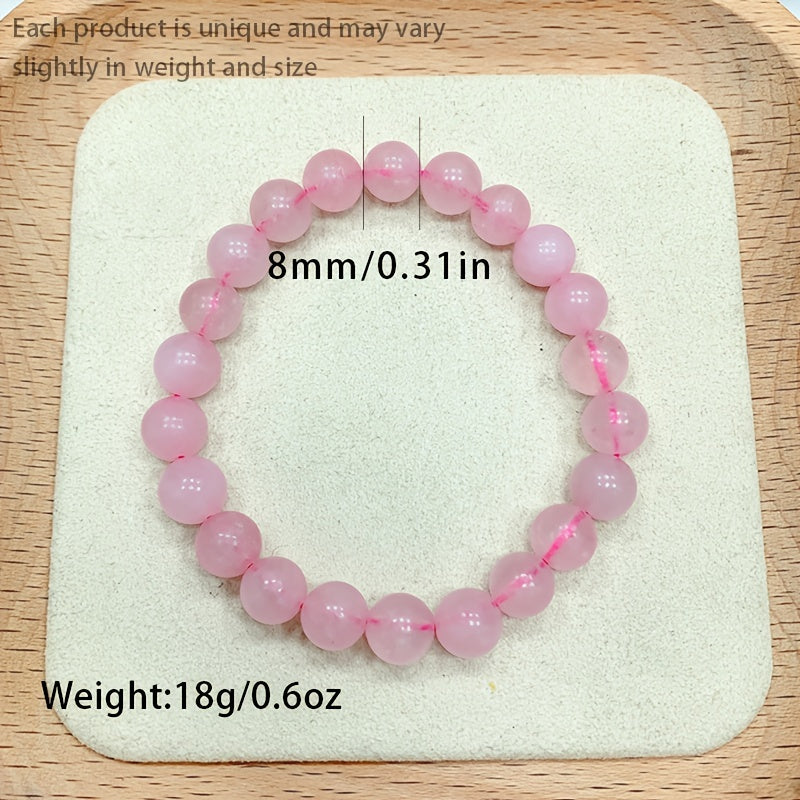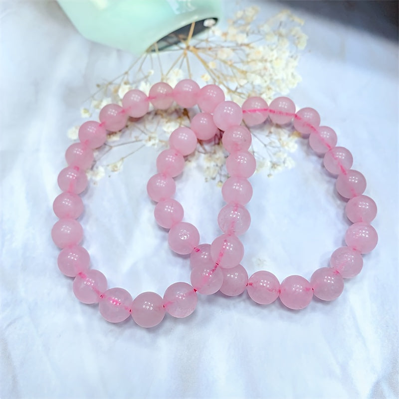 Natural Rose Quartz Crystal Bracelet 8mm Pink Round Beads for Healing