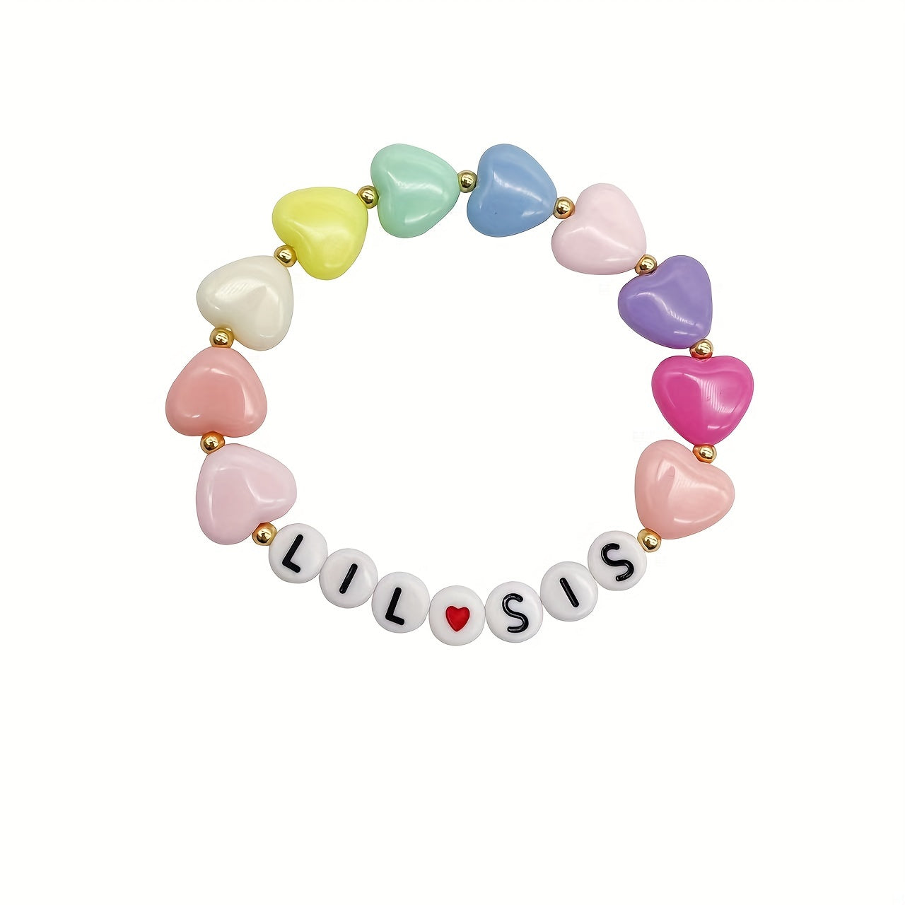 Celebrate the bond between sisters with this charming pastel rainbow heart bracelet, a perfect sister announcement or gift. Let your little sister know she's loved!