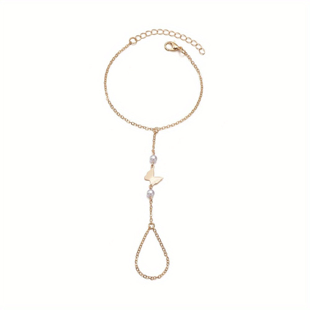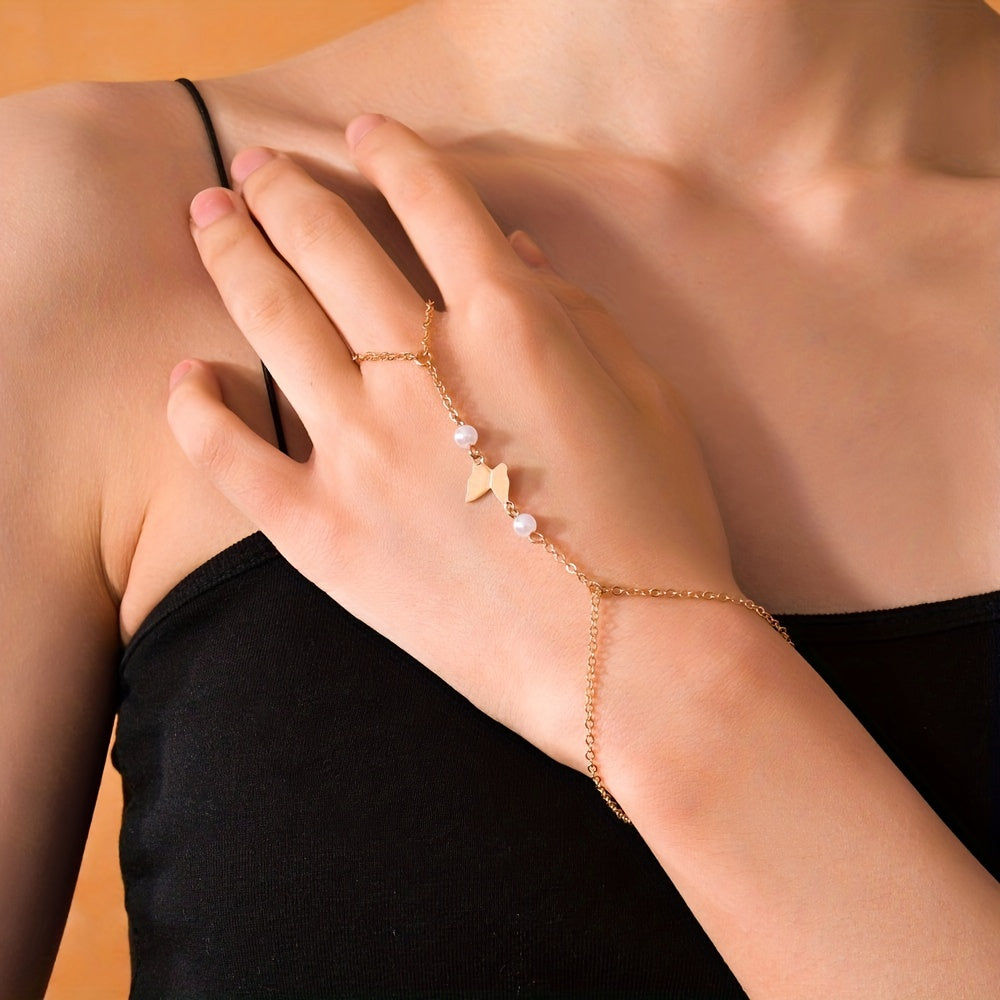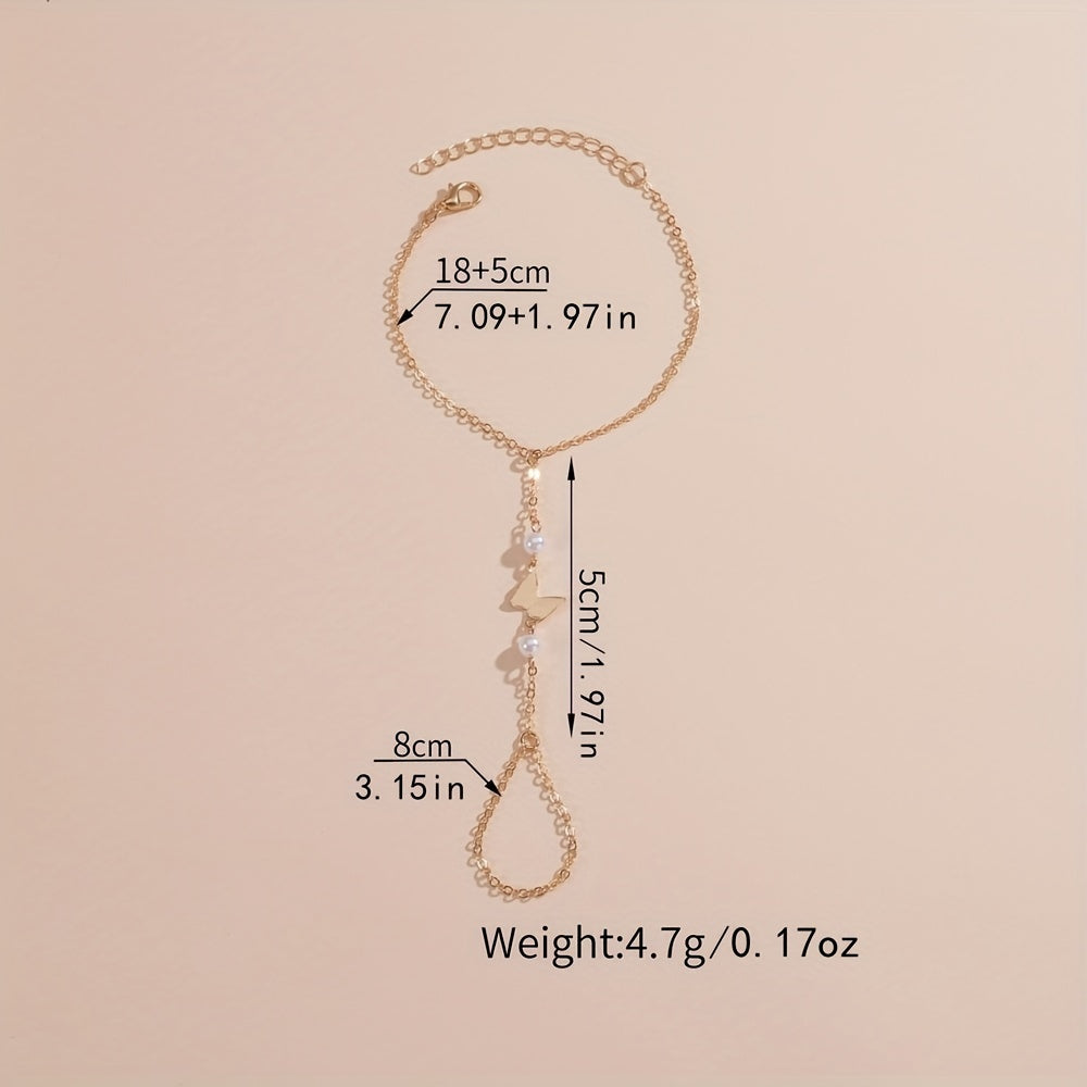 Elegant and stylish bracelet featuring a pearl butterfly chain design, crafted from high-quality alloy. Perfect gift for women and girls.