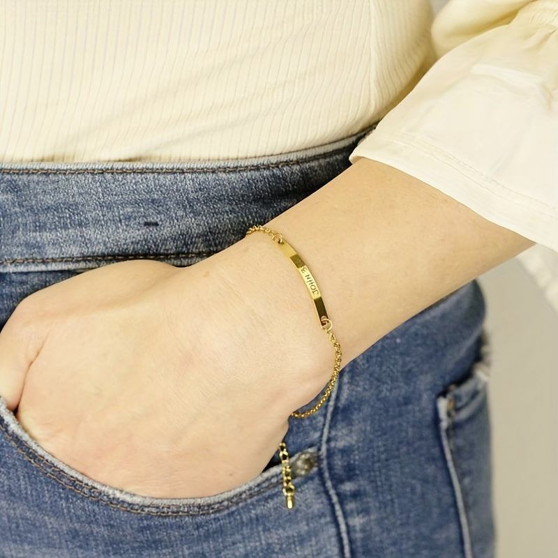 This custom bar bracelet is a perfect gift for women. The bangle can be engraved with a name or initial, making it a unique and delicate gift. Available in golden or silvery finish.