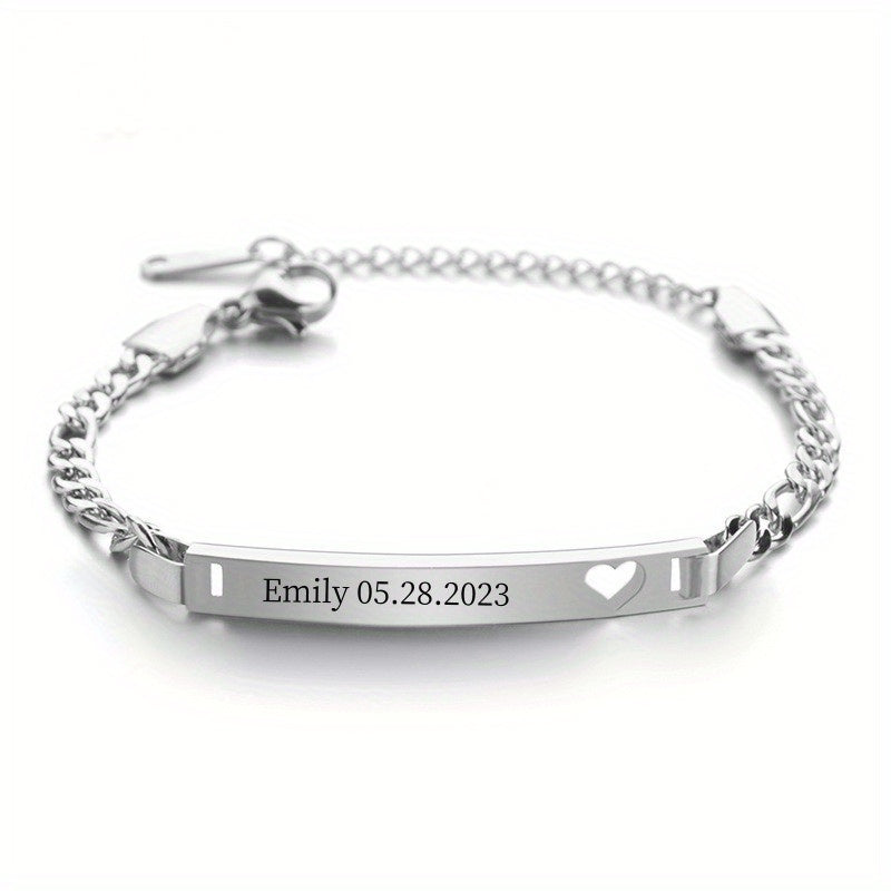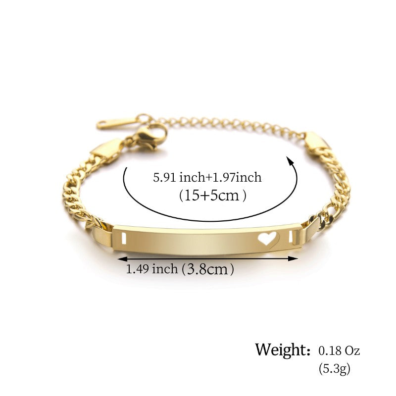 This smooth curved love bracelet is a unique and stylish accessory. Made of stainless steel, it features personalized laser lettering for a special touch. Perfect as a gift for a loved one or as a self-indulgence.