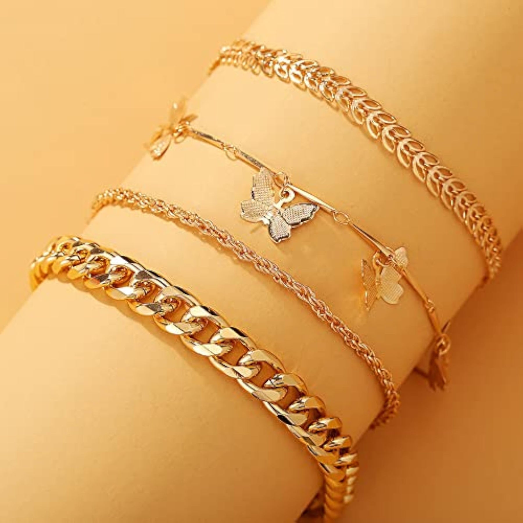 Adorn your ankles with these stylish plated butterfly anklets. Set includes 4 anklets for a versatile look.