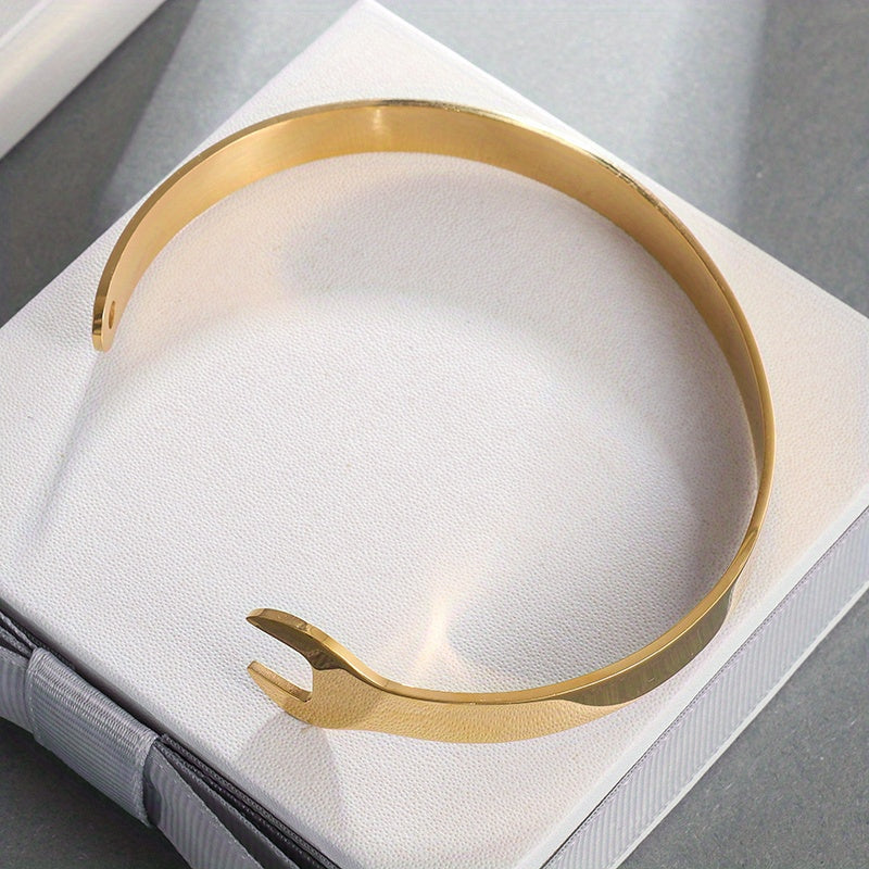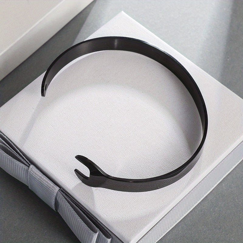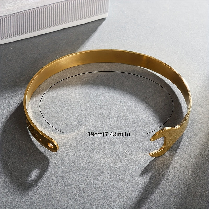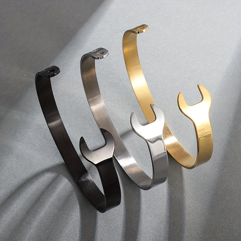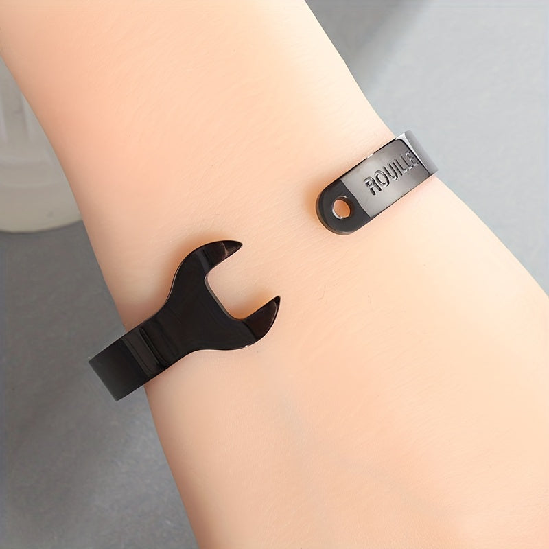 Unisex punk cuff bracelet with a motorcycle wrench design, made of stainless steel. Perfect for bike riding enthusiasts and those who appreciate hip hop and rock styles.
