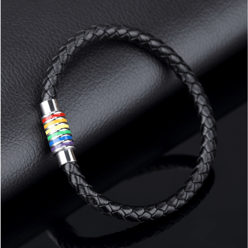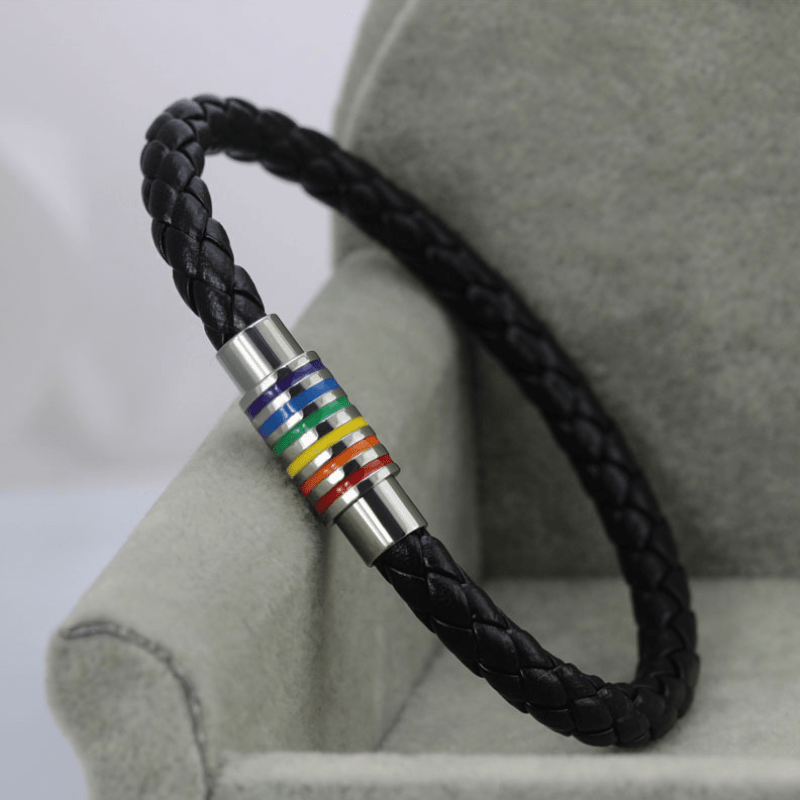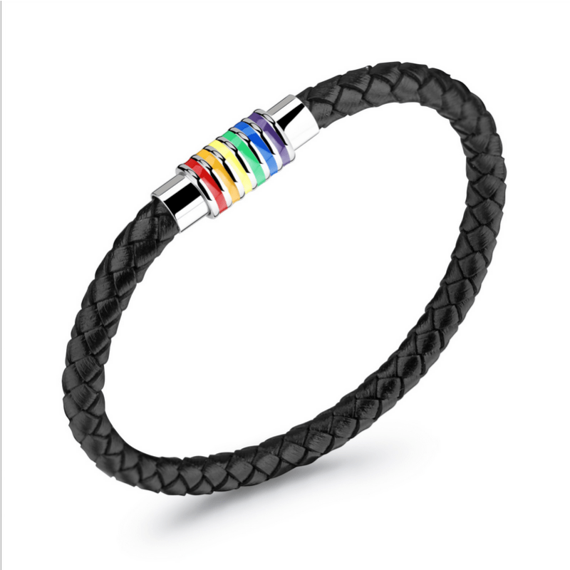 Show off your pride with this casual and charming rainbow flag bracelet.