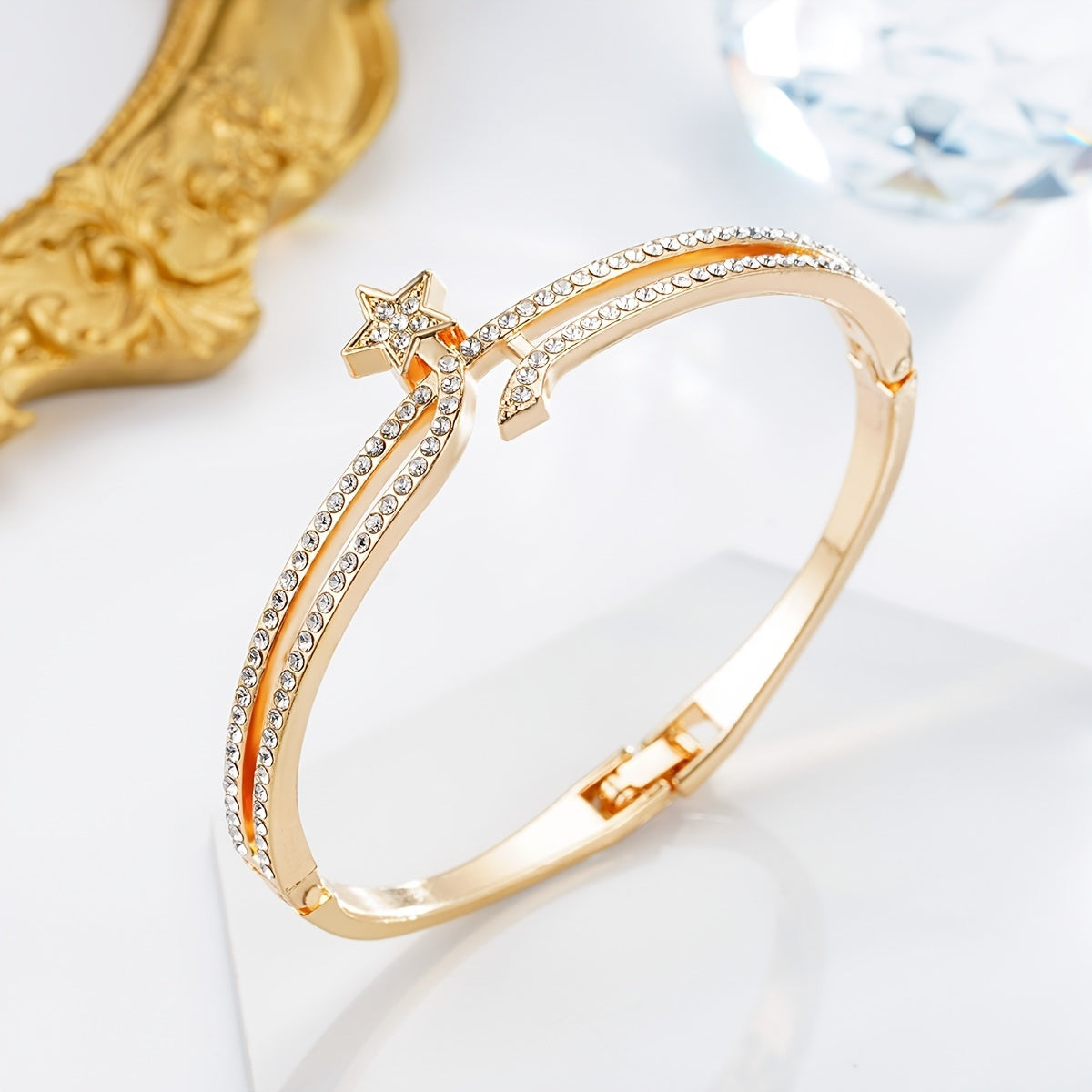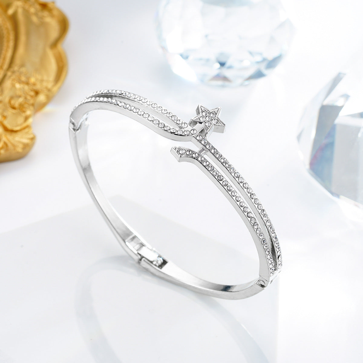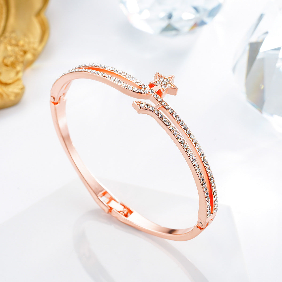Elegant bangle bracelet with rhinestone inlay design, perfect for weddings and birthdays.