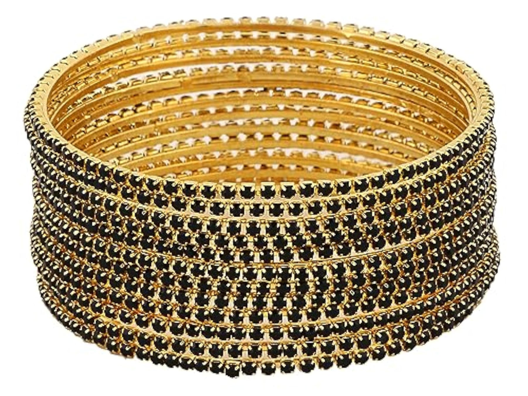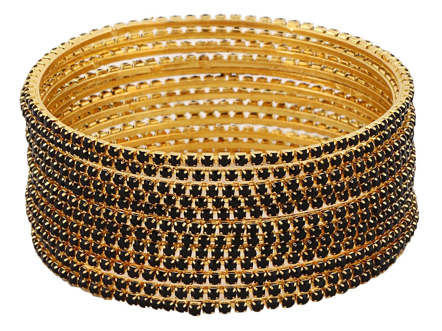 Elegant set of 12 bangles with a traditional design and black finish. Perfect for any occasion.
