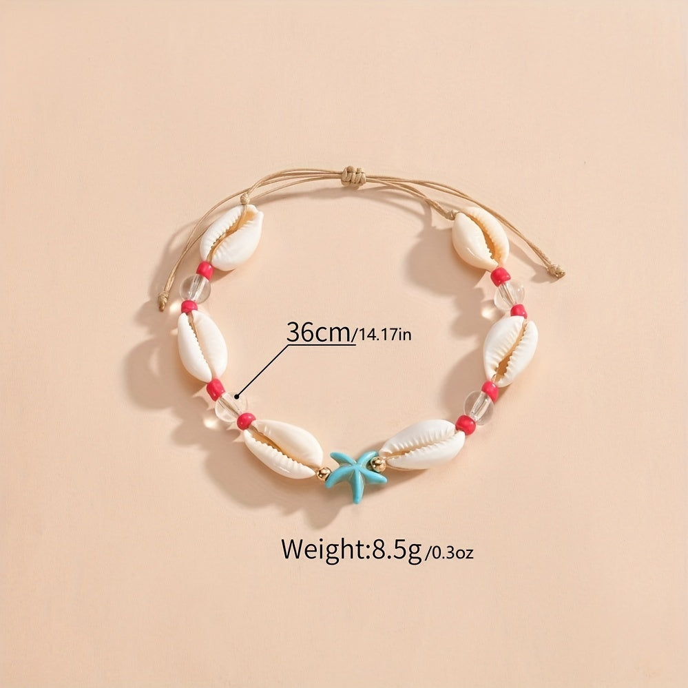 Elevate your beach look with this stylish beaded anklet featuring a shell coconut tree pendant. The adjustable ankle bracelet adds a touch of elegance to your outfit.